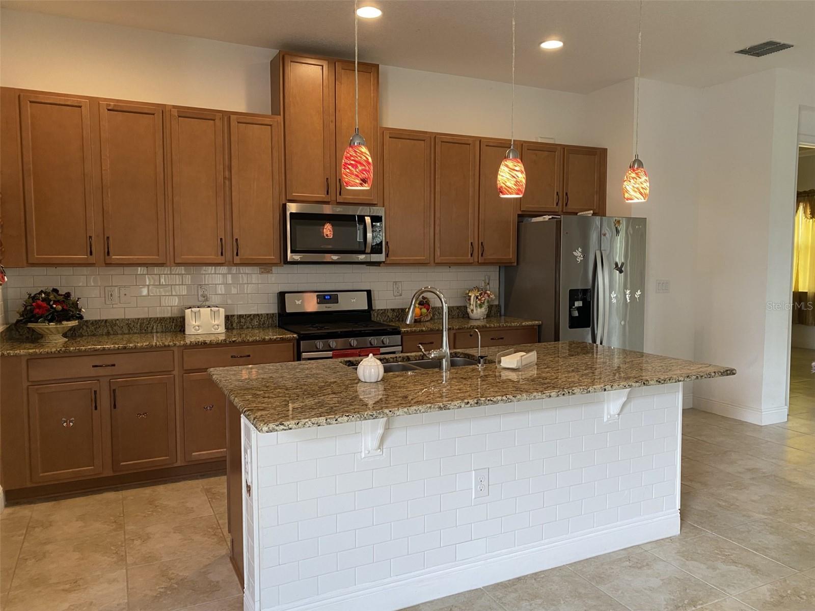 You will have plenty of room to roam on this beautiful villa located in the community of Twin Lakes. This is a 55+ resort-style community that allows for 20% of co-residents to be 18 years or older. This beautiful one story, open floor plan home offers 2 bedrooms, 2 baths, neutral colors, high ceilings, and ceramic tile throughout. A spacious great room area connects to the dining room and kitchen – ideal for entertaining friends and family. The kitchen features stainless steel appliances (gas stove), lots of cabinets, island, breakfast bar, granite countertops plus a closet pantry. The oversize master bedroom offers tray ceilings, spacious en-suite bath with a very spacious shower that has a built-in seating bench, dual sinks, granite countertop, semi- private commode, and a huge walk-in closet. The oversized laundry room has lots of cabinets for storage plus a sink. A big slider glass door allows lots of natural light into the living room area and leads to the screened in lanai and outdoor area with hook up for a gas grill. You can relax in the beautiful, tranquil, and spacious backyard. You will have plenty of space to park a vehicle and a golf cart in the 1.5 car garage. ROOF was installed in 2018, and the driveway has beautiful pavers. Twin Lakes has all the amenities for the perfect Florida Lifestyle: Security Gates, 3 Pools, 2 Dog Parks, Tennis Courts, Pickleball Courts, Putting Green, Fitness Center, Club House, and more. You will have easy access to major roads, restaurants, shopping, banks, and health centers. Move in ready!