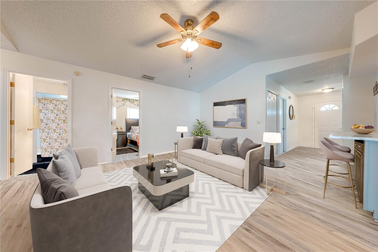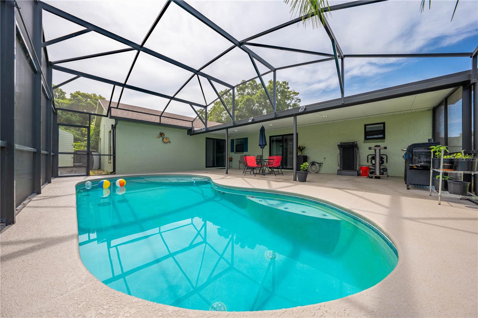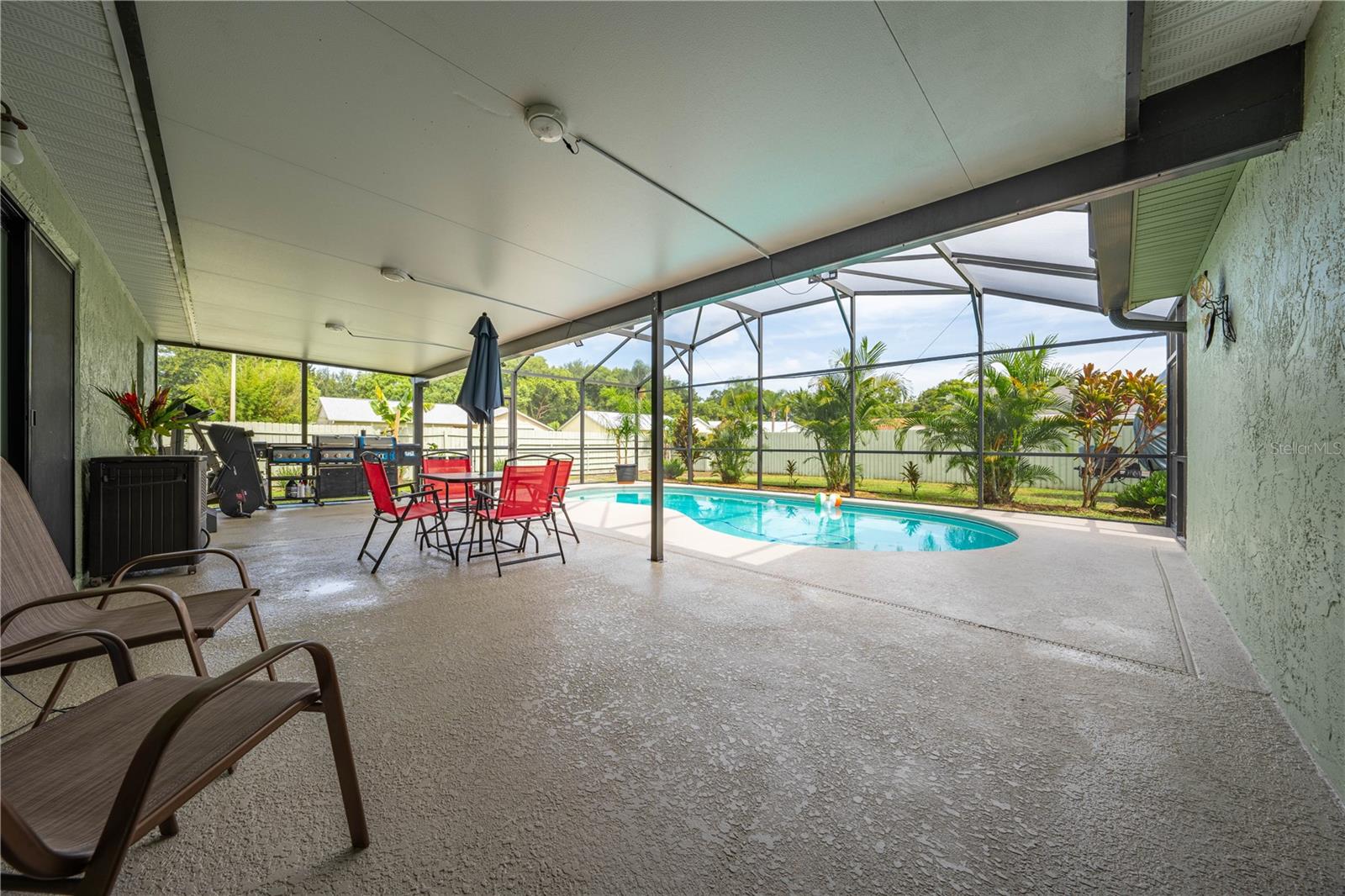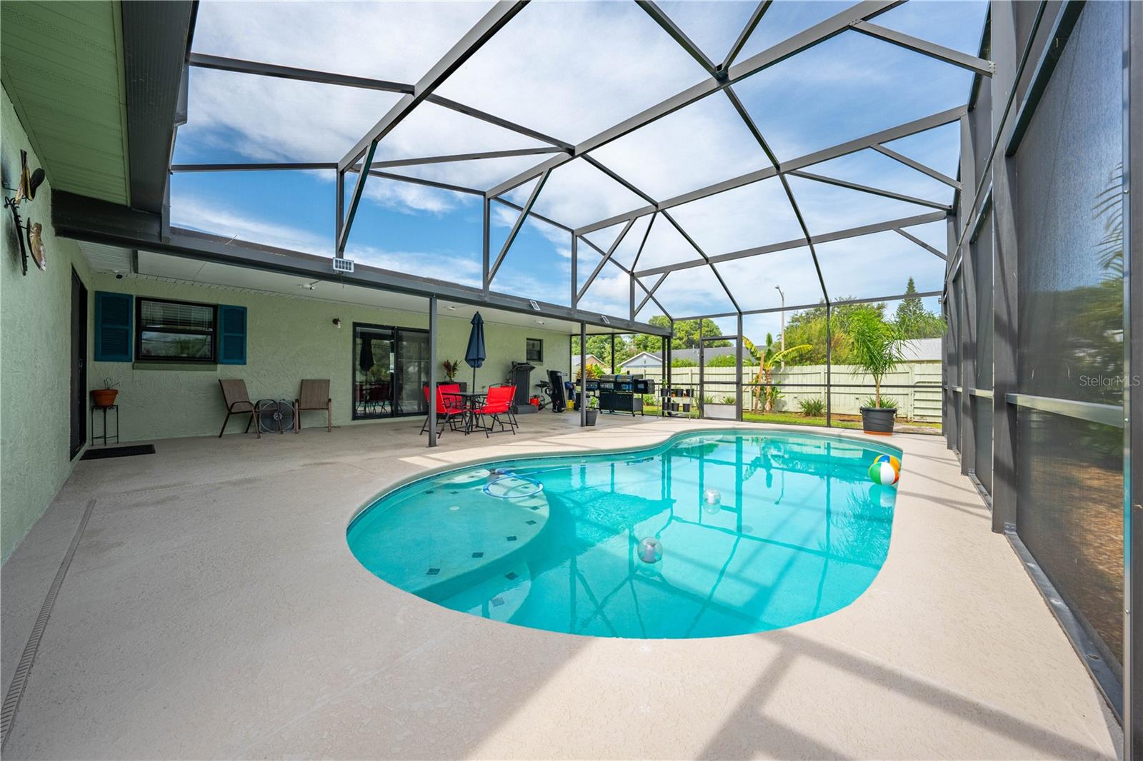 One or more photo(s) has been virtually staged. SHORT SALE — BRING YOUR BEST OFFER! Welcome to this beautifully updated 4-bedroom, 2-bathroom home located in a quiet, family-friendly Saint Cloud neighborhood with NO HOA! This home offers the perfect blend of modern comfort and practical living, featuring a brand-new roof (2023) and stylish new flooring throughout. The stunning kitchen is fully upgraded with new cabinets and elegant stone countertops, perfect for cooking and entertaining. Step outside to your own private oasis with a saltwater heated pool (2016), screened enclosure, and a spacious 34’ covered lanai — ideal for year-round outdoor living.The home also offers a 27' x 20' concrete parking pad, energy-efficient windows (2020), new AC system (2019), updated plumbing (2019), and new insulation (2020) for long-term savings and comfort. A sleek new guest bathroom (2022), plus a 10' x 14' shed with water and electric, add even more versatility. The fully fenced backyard with a wide 15-ft entrance gate provides privacy and convenience, while the 40-gallon water heater (2010) and well-maintained gutters complete the package.This home offers space, style, and smart updates — everything you need for relaxed Florida living. Schedule your private showing today and make this Saint Cloud gem yours!