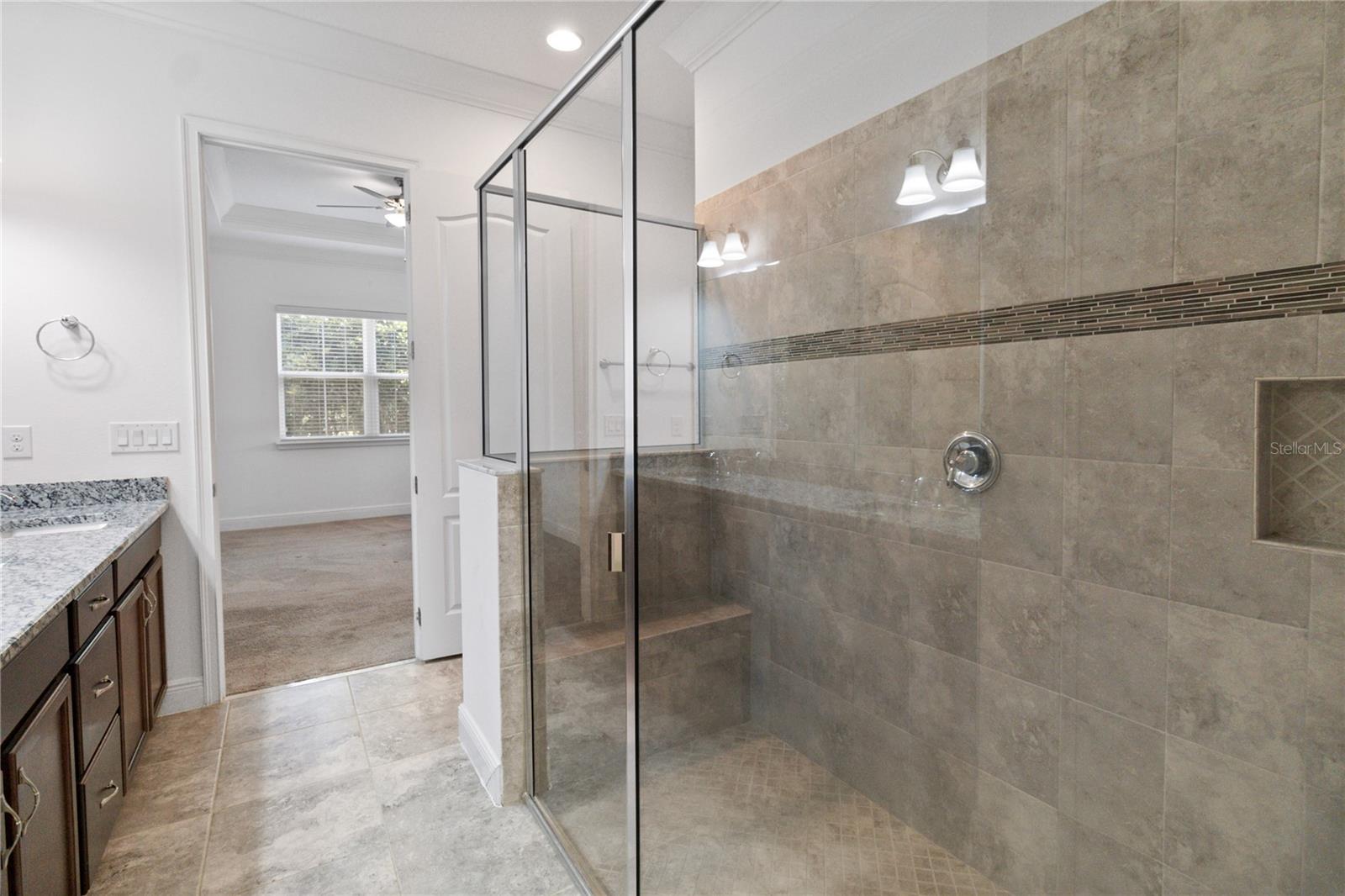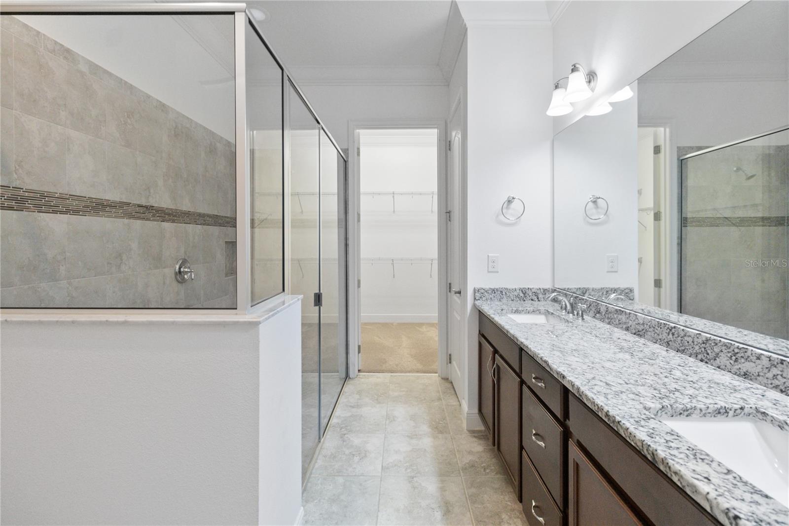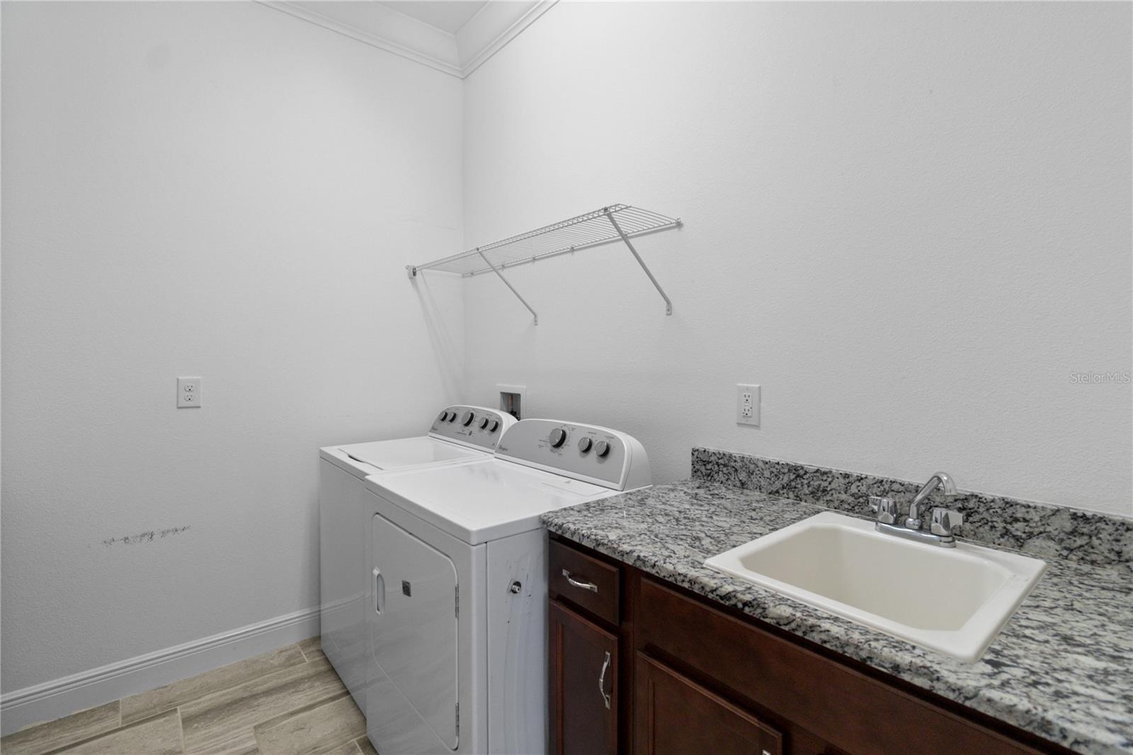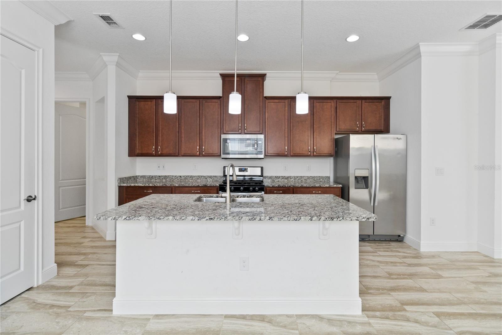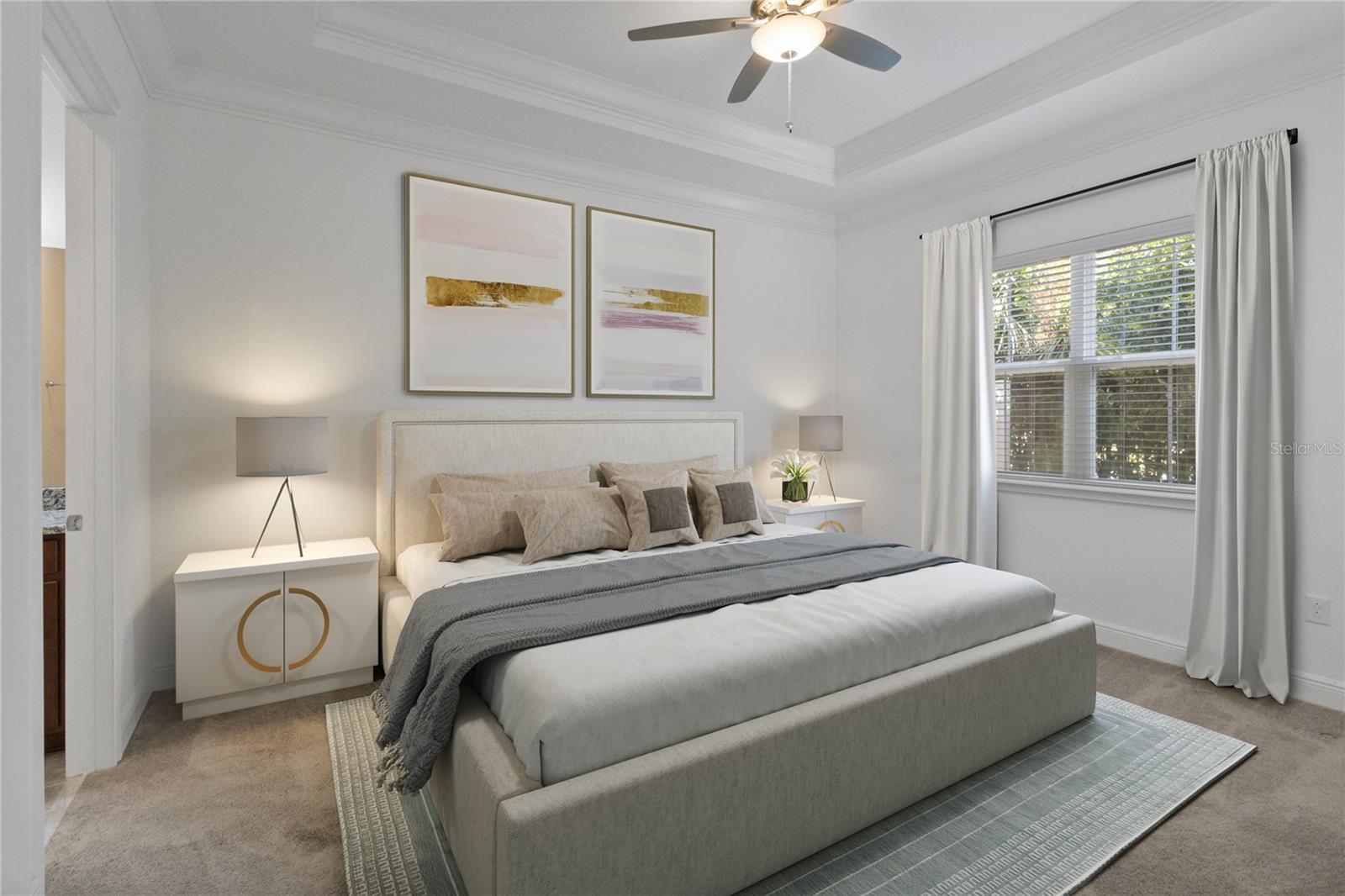 Welcome home to this GORGEOUS and Freshly Painted Daytona floor plan located in the well sought after Gated 55+ Active Del Webb Twin Lakes community. Walk into the breathtaking property featuring stunning wood plank flooring with crown molding throughout and professionally painted. Stunning 42" Cabinets with custom molding, stainless steel refrigerator, Pantry, custom granite countertops throughout, pendant lights, and chandelier. Living room features Sliding glass doors leading to the Lanai with a custom ceiling fan to enjoy your morning coffee. Master bedroom with blinds, trey ceiling, crown molding and ceiling fan. Master bedroom bathroom features crown molding, custom frameless glass doors, diamond shaped tile flooring in the shower, large shower head, and custom tiling. Double vanity granite countertops, brush Nickel hardware and lots of cabinets and a linen closet, carpeted walk-in closet. Laundry room tailored with lower cabinets for great storage, tile flooring, and beautiful granite countertops. Quiet Study/Den features crown molding, blinds, and ceiling fan, very spacious could be a 3rd bedroom. Guest bedroom features a ceiling fan with light and faux wood blinds. Amenities include a Resort style pool, Lap Pool and 3rd pool on the carriage house side, 20,000 square foot Gorgeous Clubhouse, State of the art Fitness Center, Flex room, Tennis Courts, Putting Green, Walking Trails, Pickle Ball Court, Fishing, and Pontoon Boats and Jon boat to use on Live Oak Lake! The community has many active and socializing activities. View today!