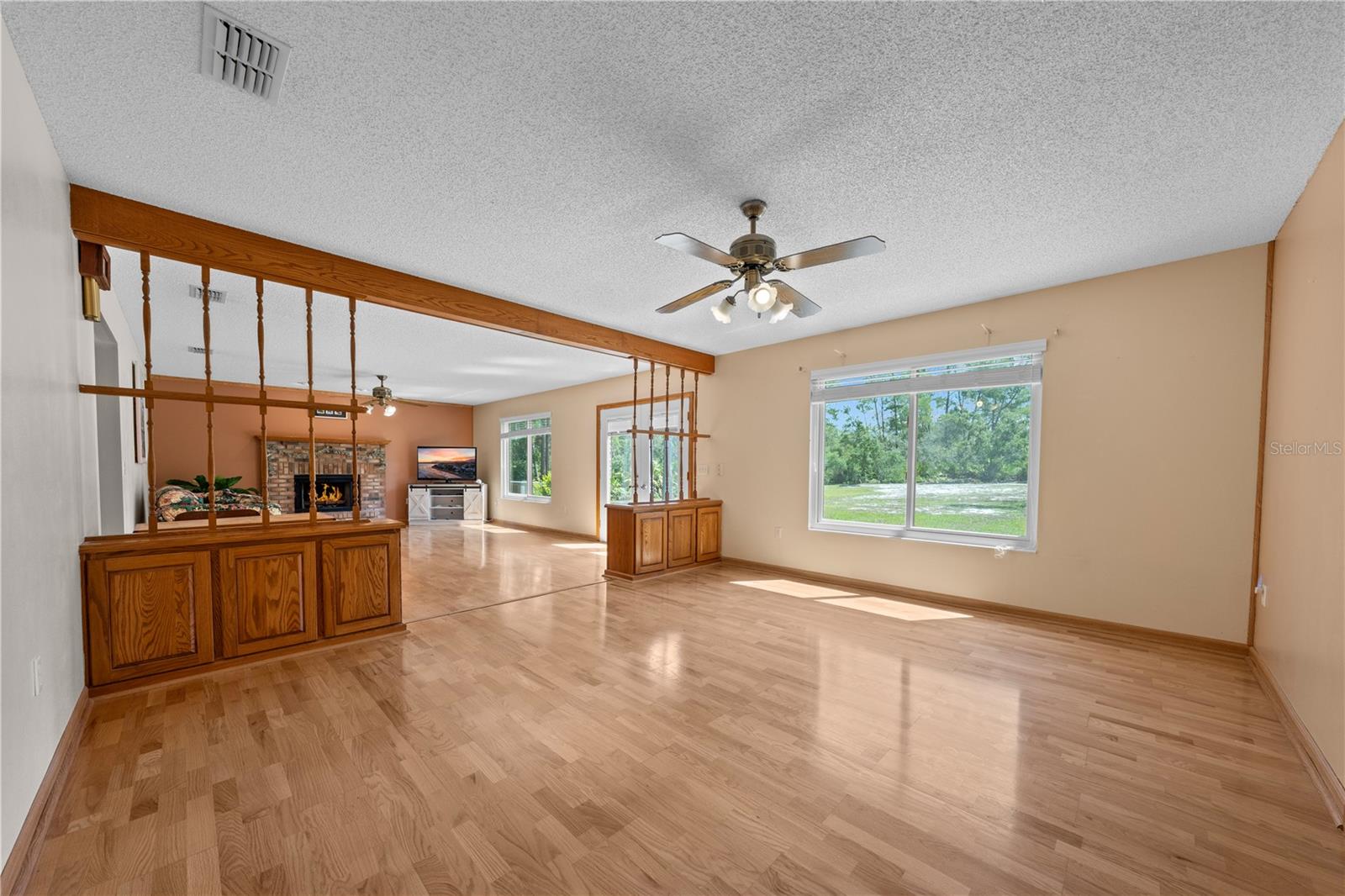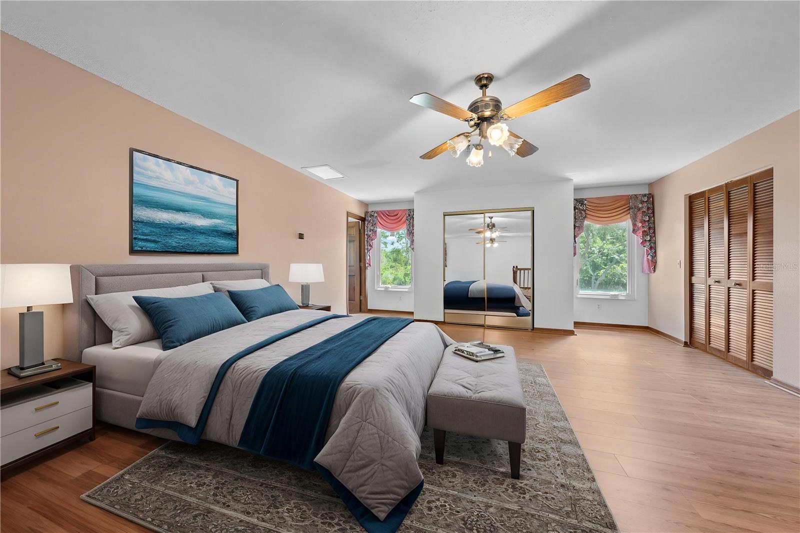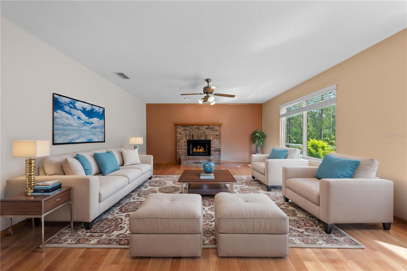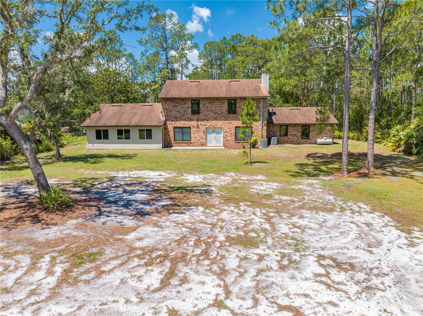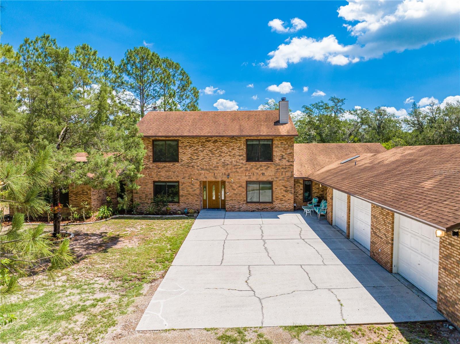 One or more photo(s) has been virtually staged. ALL OFFERS DUE BY 7/29/2025.. HUGE PRICE REDUCTION, NOW $32,000 BELOW APPRAISAL. CUSTOM BRICK HOME ON 2 ACRES IN BAY LAKE RANCH. 4/3 Plus Bonus Room, 3 Car Garage, NO HOA, Updates: NEW ROOF (2017), 2 A/C UNITS (2020), ANDERSEN WINDOWS (2016), ENGINEERED HARDWOOD FLOORING in the primary bedroom (2022), a new millings DRIVEWAY (2024), a GAS WATER HEATER (2022), a whole-house WATER SOFTENER (October 2024), 2ND BATHROOM (2022), REFRIGERATOR (2023), and WASHER (2025) AND DRYER (2021). Widened driveway (2025), Lighting in Garage (2025). Nestled on 2 acres and surrounded by the sounds of nature, this custom brick home is 4-bedroom, 3-bath plus BONUS ROOM and offers nearly 4,000 SQUARE FEET of heated living space, plus an attached 3-CAR GARAGE. Enjoy carefree living with NO HOA. Thoughtfully crafted by its owners with the expertise of builder Pete Bracy, every detail of this home reflects a meticulous design approach. The septic system was inspected in 2024. A winding driveway through mature trees leads you to the front of the home and the 26x40 3-CAR GARAGE. Entering the home, you're greeted by a large foyer or BONUS ROOM, which flows into living and dining area with wood flooring and a wood-burning fireplace. The home features updated Andersen double-pane windows throughout, allowing natural light to fill the space. To the right, you’ll find the kitchen with a dinette, equipped with two refrigerators, a gas cooktop, an oven, a microwave, a dishwasher, and a prep island. Adjacent to the kitchen is a 17x20 FAMILY ROOM with sliding doors plus easy access to the garage. The first floor has 3 bedrooms and 2 bathrooms, and a hall bath renovated in 2022. Large enclosed rear porch with a/c and exterior door, currently used as 5th bedroom, could be game room or man cave. Upstairs, the expansive primary suite offers over 1,100 square feet, featuring wood burning fireplace, engineered hardwood floors, two walk-in closets, a linen closet, and built-in bookshelves. Additional engineered wood flooring is available to customize the primary suite. The ensuite bathroom has a garden tub, shower stall, dual sinks, and a bidet. The extra-deep 3-car garage (26x40) is perfect for accommodating oversized trucks, work vehicle, or recreational toys. This 2-acre lot provides ample room to add a pool, workshop, or other outdoor amenities, with plenty of space for pets to explore. In the evenings, you can enjoy watching deer, tortoises, and wild turkeys that frequently visit the property. This home offers a tranquil escape from city life while maintaining convenient access to essential amenities. Love to entertain or have a big family? This home offers the ideal layout with multiple separate living areas — perfect for hosting large gatherings or giving everyone their own space. The current owner has comfortably hosted events with over 100 guests! And the best part? On a clear day, you can enjoy rocket launches from Kennedy Space Center right from your backyard — an unforgettable view that’s uniquely Florida! BAY LAKE RANCH residents enjoy events such as the Halloween Hayride, Holiday Tour of Lights, and community yard sales. Located in Harmony School Zone. Easy access to Lake Nona Medical City, VA Hospital, Melbourne, and OIA. Home in Flood Zone X, NO flood insurance required! If you’re seeking a spacious home outside of the city, this is a must-see property. Have peace of mind with Transferable Home Warranty Included! Make your dream a reality!