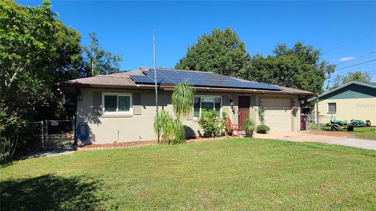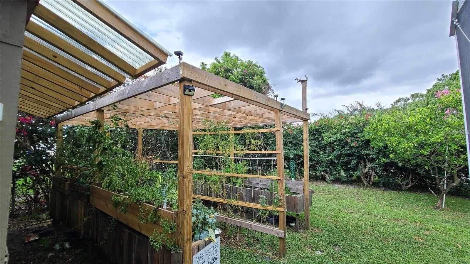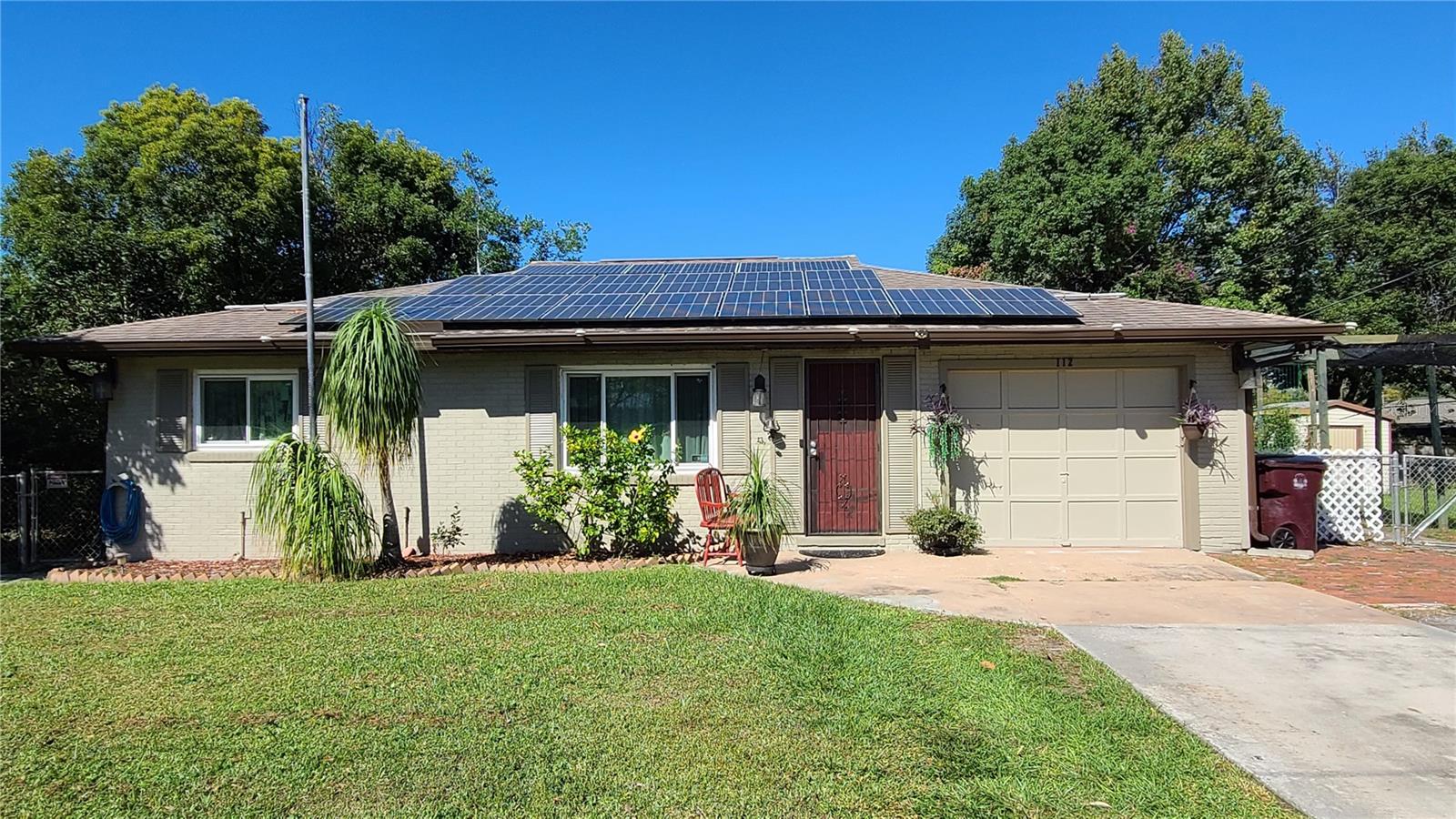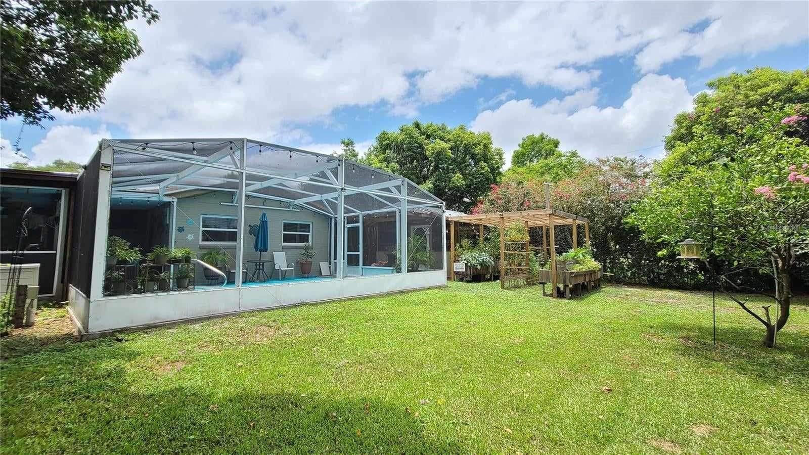 Are you looking for a private oasis in the heart of St. Cloud? You will love this charming two bedroom two bath block home with NO HOA, a screened in pool, greenhouse, SOLAR PANELS which owner will pay off at closing , lush landscaping and raised bed garden. This home features a spacious living room and a lovely kitchen complete with stainless steel appliances including a high efficiency dishwasher, breakfast bar and plenty of counter space and cabinets with custom slide outs. Right off the kitchen is an amazing utility/pantry area with custom cabinetry offering tons of space for storage, crafts and more as well as the laundry area. The primary bedroom has its own private bathroom, the cozy guest bedroom features a motion activated light in the spacious closet. The light, bright office/den area offers views of the beautiful pool area and the lush, fenced, backyard and could be used as third bedroom. The pool patio is the perfect place to relax or entertain and enjoy the view. The pool heater and pump are new in 2020. The gardener in the family will love the greenhouse with water, power, growing lights and a fan as well as the two growing pergolas with raised beds. There is a shallow well and sprinkler system to keep everything green and growing and a shed with electric for extra storage outside. You will love the many energy saving features in this home: 36 solar panels installed in 2019, which will be paid in full at closing, new hurricane rated windows in 2019, new 18 seer HVAC and duct work in 2019 and a heat pump water heater in 2021. Seller says the average electric bill is $100 or less! With its great proximity to the Lakefront, downtown shopping and restaurants as well as great schools, attractions and beaches, don't miss your chance to see this gem before it is gone!