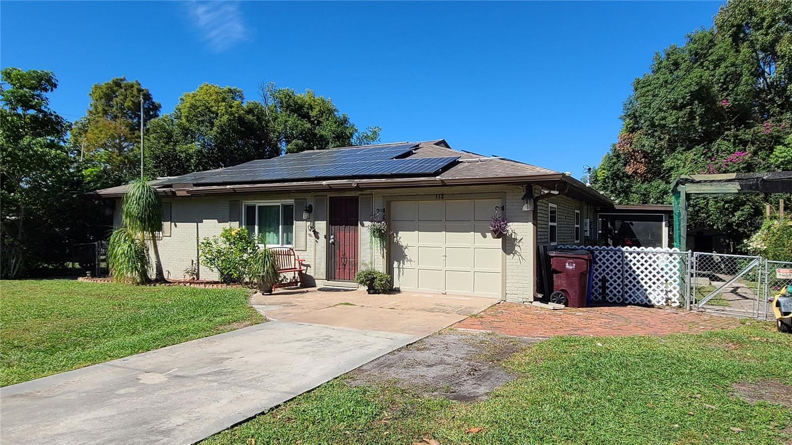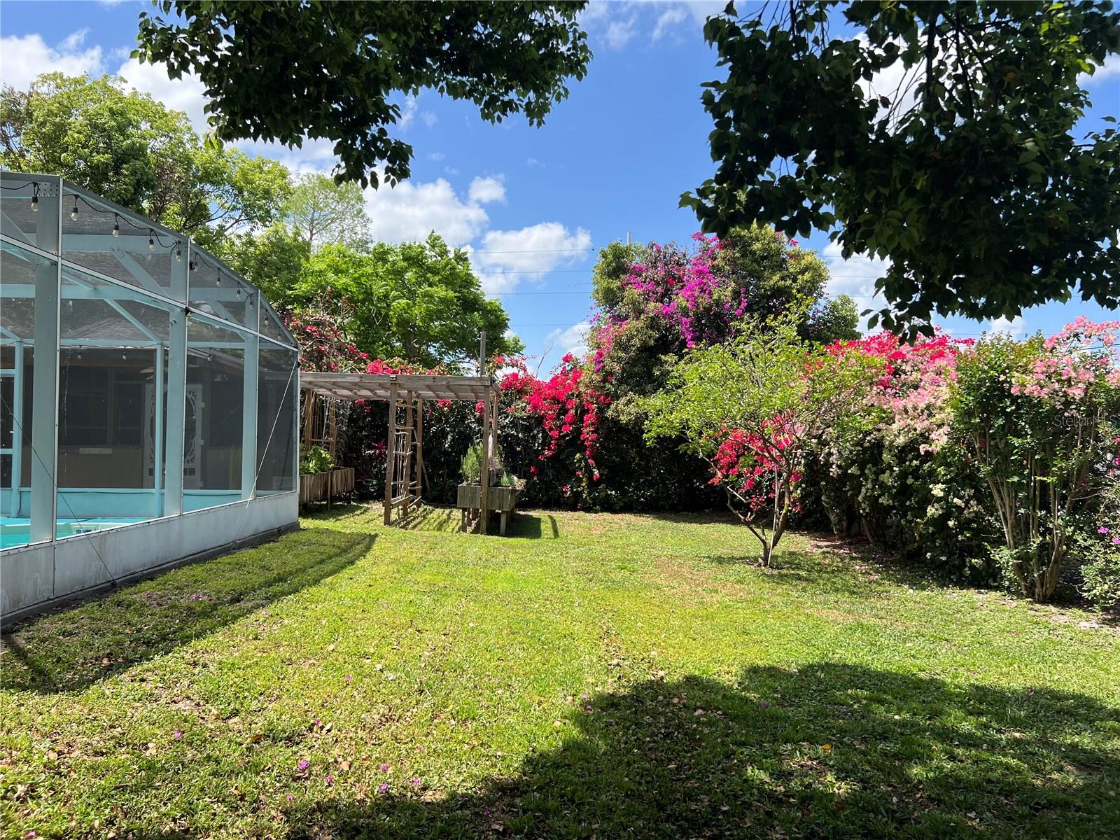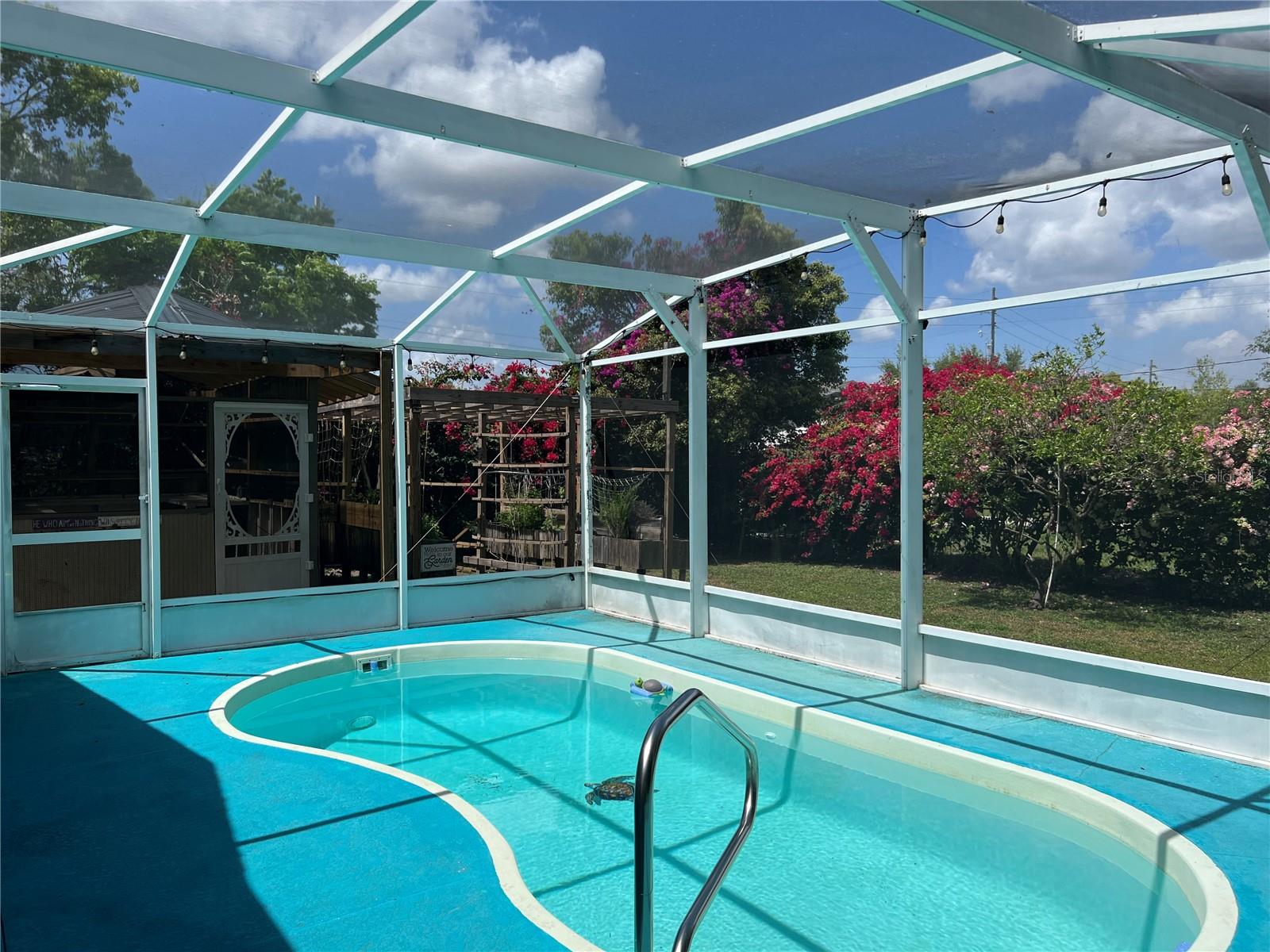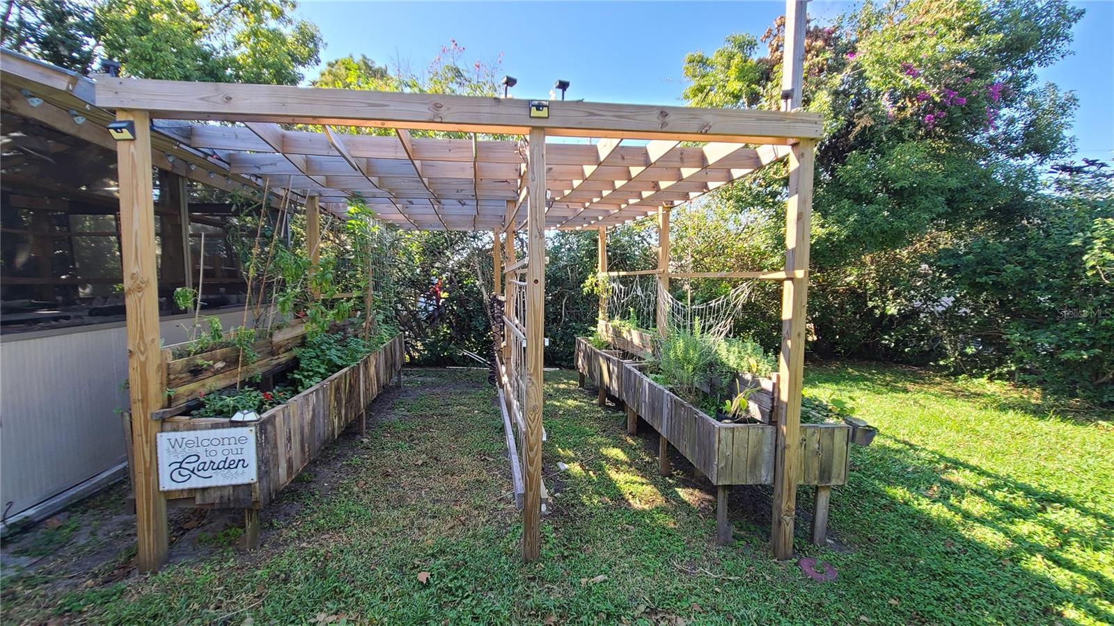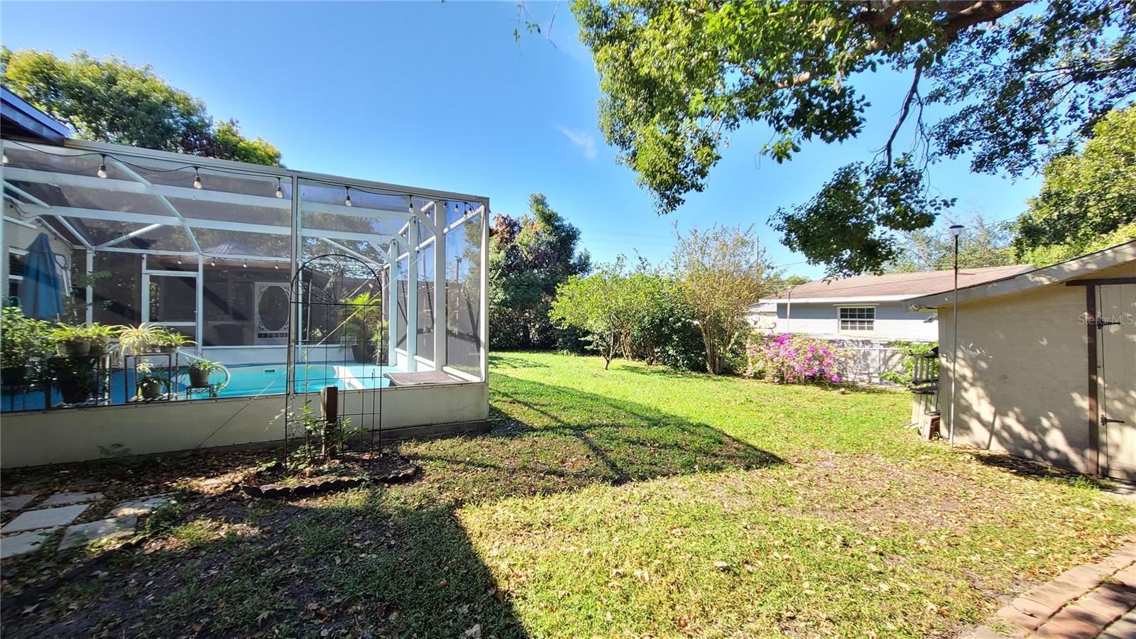 Are you looking for a private oasis in the heart of St. Cloud? You will love this charming two bedroom two bath block home with NO HOA, a screened in pool, greenhouse, SOLAR PANELS which owner will pay off at closing , lush landscaping and raised bed garden. This home features a spacious living room and a lovely kitchen complete with stainless steel appliances including a high efficiency dishwasher, breakfast bar and plenty of counter space and cabinets with custom slide outs. Right off the kitchen is an amazing utility/pantry area with custom cabinetry offering tons of space for storage, crafts and more as well as the laundry area. The primary bedroom has its own private bathroom, the cozy guest bedroom features a motion activated light in the spacious closet. The light, bright office/den area offers views of the beautiful pool area and the lush, fenced, backyard and could be used as third bedroom. The pool patio is the perfect place to relax or entertain and enjoy the view. The pool heater and pump are new in 2020. The gardener in the family will love the greenhouse with water, power, growing lights and a fan as well as the two growing pergolas with raised beds. There is a shallow well and sprinkler system to keep everything green and growing and a shed with electric for extra storage outside. You will love the many energy saving features in this home: 36 solar panels installed in 2019, which will be paid in full at closing, new hurricane rated windows in 2019, new 18 seer HVAC and duct work in 2019 and a heat pump water heater in 2021. Seller says the average electric bill is $100 or less! With its great proximity to the Lakefront, downtown shopping and restaurants as well as great schools, attractions and beaches, don't miss your chance to see this gem before it is gone!