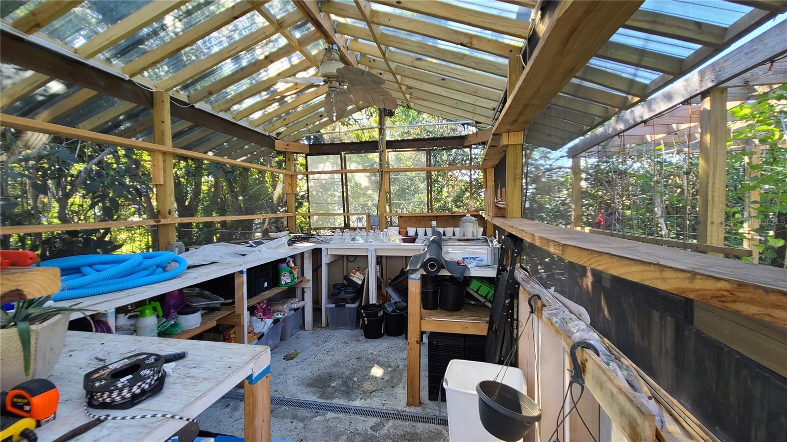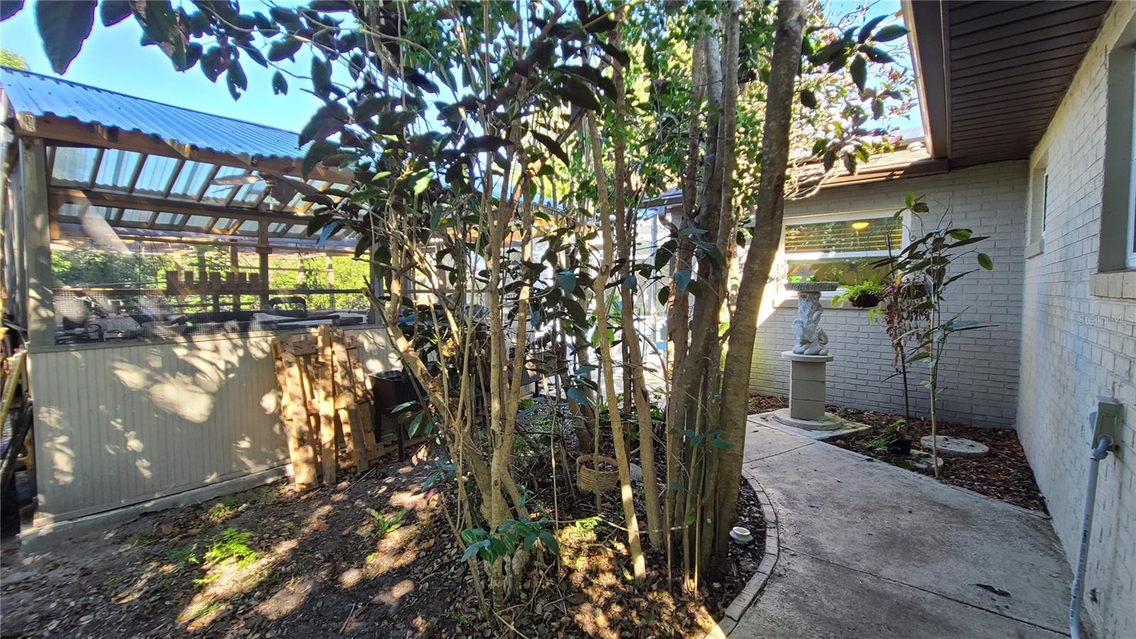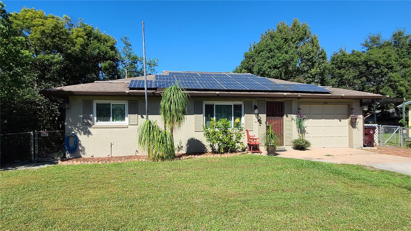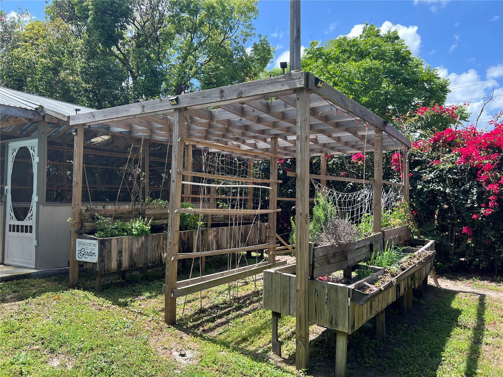 Are you looking for a private oasis in the heart of St. Cloud? You will love this charming two bedroom two bath block home with NO HOA, a screened in pool, greenhouse, SOLAR PANELS which owner will pay off at closing , lush landscaping and raised bed garden. This home features a spacious living room and a lovely kitchen complete with stainless steel appliances including a high efficiency dishwasher, breakfast bar and plenty of counter space and cabinets with custom slide outs. Right off the kitchen is an amazing utility/pantry area with custom cabinetry offering tons of space for storage, crafts and more as well as the laundry area. The primary bedroom has its own private bathroom, the cozy guest bedroom features a motion activated light in the spacious closet. The light, bright office/den area offers views of the beautiful pool area and the lush, fenced, backyard and could be used as third bedroom. The pool patio is the perfect place to relax or entertain and enjoy the view. The pool heater and pump are new in 2020. The gardener in the family will love the greenhouse with water, power, growing lights and a fan as well as the two growing pergolas with raised beds. There is a shallow well and sprinkler system to keep everything green and growing and a shed with electric for extra storage outside. You will love the many energy saving features in this home: 36 solar panels installed in 2019, which will be paid in full at closing, new hurricane rated windows in 2019, new 18 seer HVAC and duct work in 2019 and a heat pump water heater in 2021. Seller says the average electric bill is $100 or less! With its great proximity to the Lakefront, downtown shopping and restaurants as well as great schools, attractions and beaches, don't miss your chance to see this gem before it is gone!