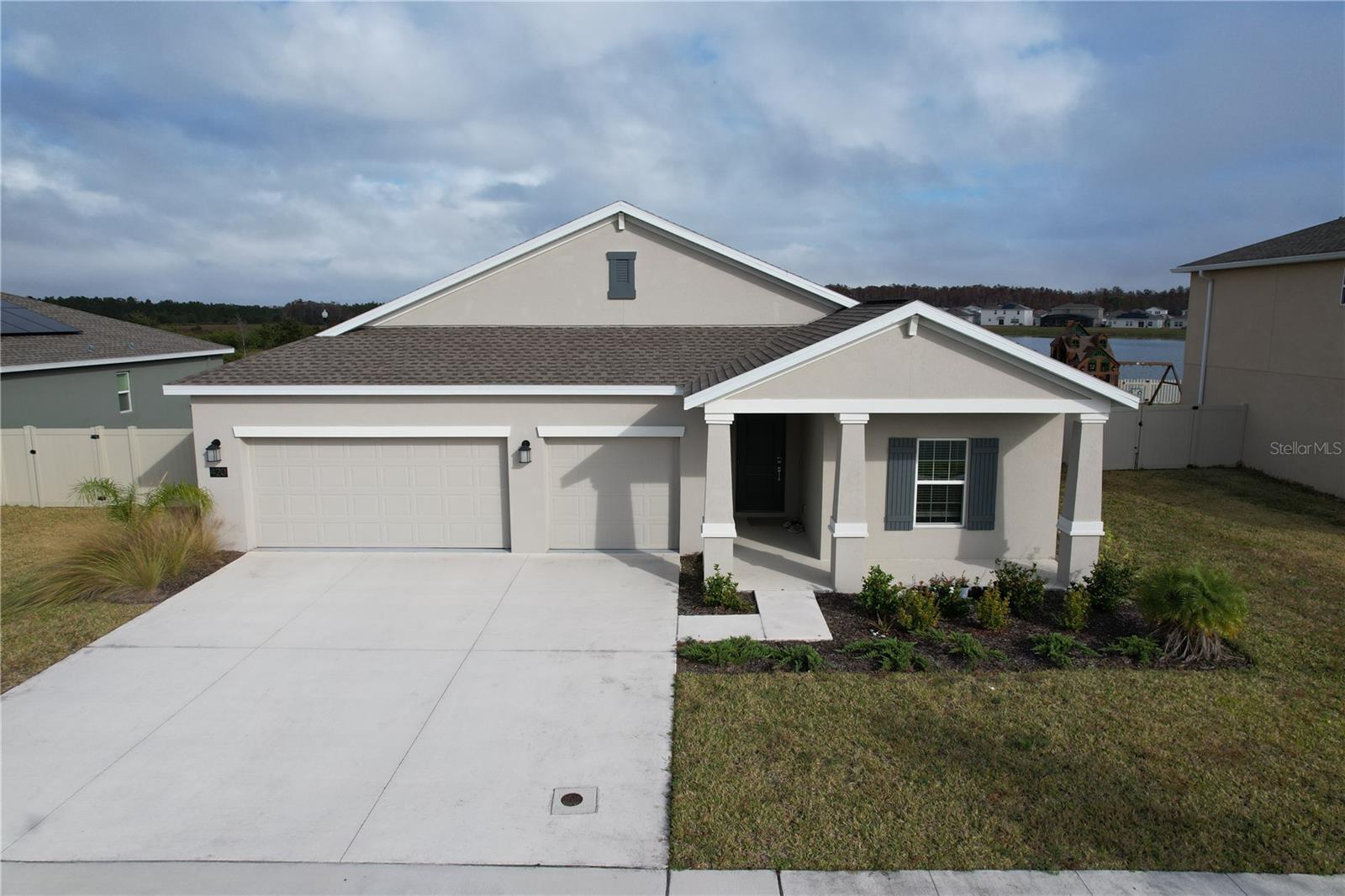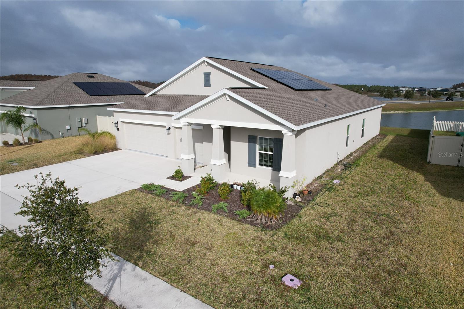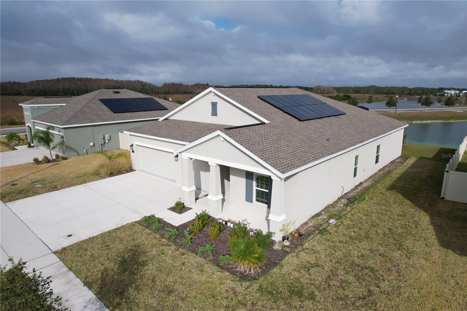 This showstopper is complete with 4 bedrooms and 3 bathrooms and 3 car garage. The heart of the home has a lovely center island and overlooks the dining and family room, which is great for entertaining. The owner suite features a large bedroom connected to a spa-inspired owner bathroom with his and her sinks, walk in shower, separate tub and a roomy walk-in closet. A flex room provides extra space for an office, library or even more storage. Enjoy connectivity with no dead spots, green building features save you money and help the environment, plus new energy conscious appliances. In addition, there is solar to offset utility bills. Amenities include resort-style swimming pool with cabana, playground, and dog park. St. Cloud’s newest community, Old Hickory, is nestled in nature and yet convenient. There is easy access to Florida Turnpike, plus abundant shopping and dining options. There are outstanding fishing areas, wildlife reserves, and hiking trails. Old Hickory provides something for everyone – stop by and see what you have been missing. THIS HOUSE SITS ON A WATER SIDE PREMIUM LOT. SELLER IS WILLING TO GIVE CREDIT OF $5,000.00 TOWARDS CLOSING COST.