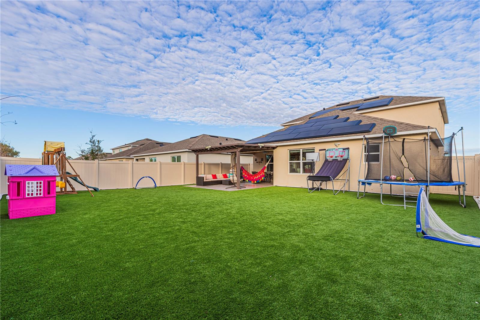 Welcome to 2778 Sunkissed Dr (NO CDD), TESLA SOLAR PANNELS, NEXT GEN HOME WITH APPARTMENT– A Stunning Home in the Coveted Suncrest Community, Neighboring the Vibrant Sunbridge Development! Prime Location! Situated in the desirable Suncrest community, this exceptional residence is just steps away from the thriving Sunbridge development—a premier destination in St. Cloud. Built by Tavistock, the visionary developers behind Lake Nona, Sunbridge offers an unparalleled lifestyle. With ongoing enhancements like the widening of Cyril Road into a dual carriageway and a Publix supermarket just 3 minutes away, this area continues to grow in value and convenience. Only 5 minutes from Lake Nona, you’ll enjoy effortless access to world-class supermarkets, restaurants, and attractions. Families will appreciate the proximity to the newly opened Sunbridge School, equipped with cutting-edge technology to provide an exceptional educational experience. This home seamlessly combines modern design with functionality, offering $100K+ in premium upgrades, 3 bedrooms and 2.5 bathrooms in the main house. A fully equipped Next Gen apartment (ADU) with its own living room, kitchenette, bedroom, laundry room, and bathroom. This space is perfect for extended family, guests, or as a rental opportunity to help offset your mortgage. Backyard Oasis The beautifully designed backyard is perfect for relaxation and entertaining, featuring: A stylish pergola for shaded comfort. An extended Lanai with tiled flooring. Artificial grass for a pristine, low-maintenance lawn. A new fence for added privacy. An advanced lighting system with motion-sensor lights for both security and ambiance. This home is equipped with Tesla solar panels that ensure energy efficiency and cost savings. In 2024, the panels produced 16,646 kWh, exceeding the 16,628 kWh supplied by OUC. As of the latest billing statement (December 2024), the property even has a $37.48 credit with OUC. While energy costs may vary depending on usage, tenants can enjoy an eco-friendly lifestyle with minimal or no energy expenses included in the rental price—a potential savings of $200-$250 a month. Expanded storage under the stairs. An updated guest bathroom with sleek, modern finishes. A kitchen with a chic backsplash and upgraded handles. Blinds on all windows, high-quality ceiling fan, and enhanced ceiling lighting for a bright and inviting ambiance. A luxurious tempered glass shower door in the master bathroom. A durable epoxy floor in the garage for a polished, professional look.The seller is including two refrigerators, two washers, and two dryers, so you can move in with ease and convenience! With proximity to top-rated schools, shopping, dining, and entertainment, this home is perfect for families, professionals, or anyone seeking the ultimate blend of comfort, style, and convenience. The seller is motivated, and as a special, if you choose to work with our preferred lender, they could contribute up to $2,000 toward your closing costs, making this purchase even more attractive! Don’t Miss Out! This is your chance to own a truly spectacular home in one of St. Cloud’s most dynamic and growing areas. Contact us today to schedule your private tour and experience the lifestyle you’ve been dreaming of!