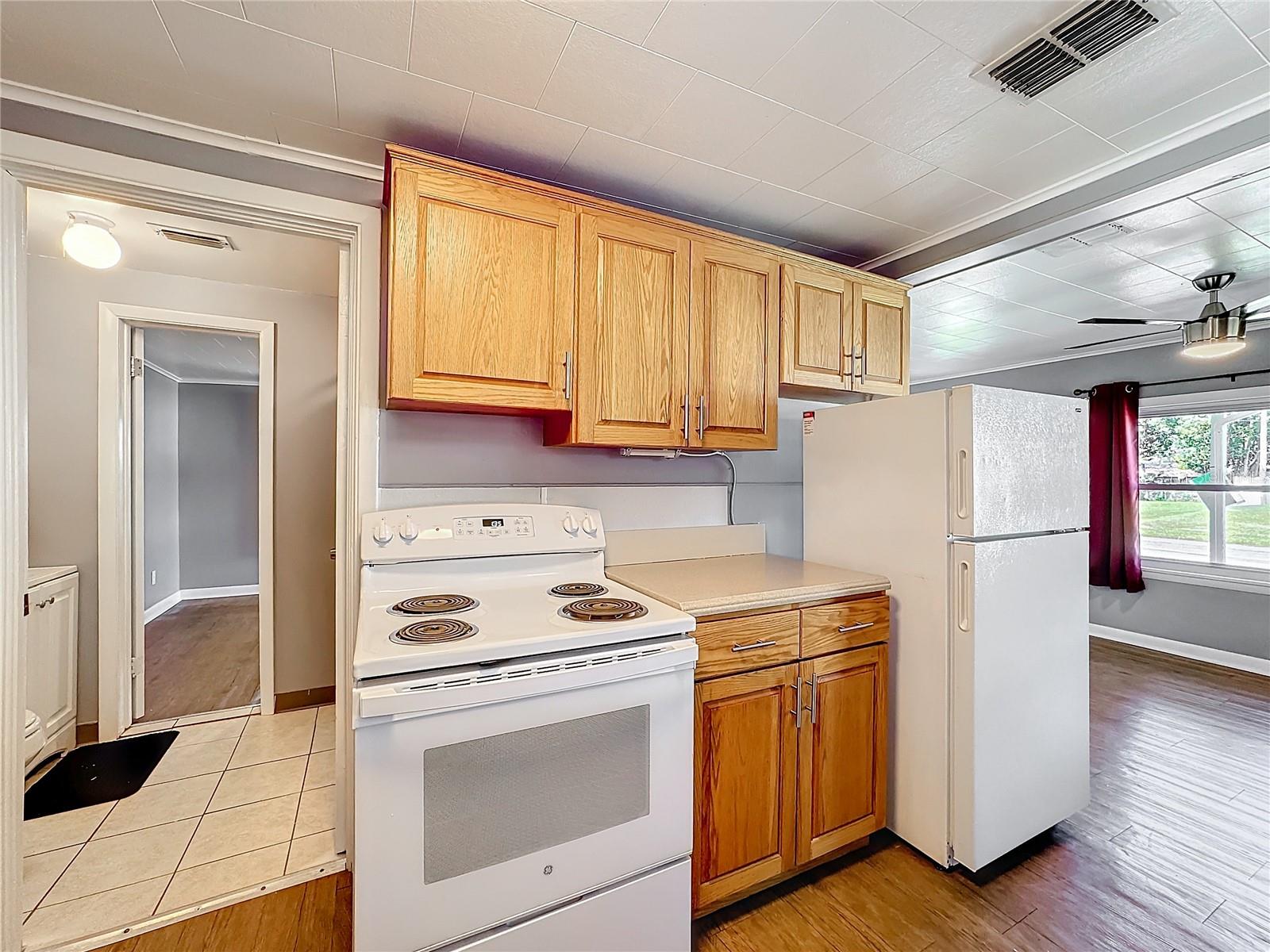 Price Reduced! Your new home is here! No HOA! This home is very well cared for and updated. This block home features 2 bedrooms and one bath with a large living room all is freshly painted. New roof Feb 2025 on the home and metal roof on the shed, new windows. Back yard is fully fenced with a wood fence. One car carport with driveway and more room to park in the yard or street. Utility room with washer and dryer is attached to the carport. This house is perfect for the first time home buyer, investor or for 2nd/vacation home. Schedule your showing today!