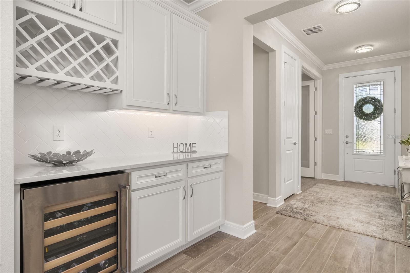 Welcome to 2719 River Creek Lane, a stunning residence near the coveted Lake Nona corridor, where elegance meets rustic charm in an exquisite country farmhouse style. This move-in ready home boasts 2,330 square feet of meticulously designed living space, offering THREE spacious bedrooms and TWO luxurious bathrooms. Step inside to discover interiors that are decorated like a model home, featuring high-end finishes and a harmonious blend of textures and colors that create a warm, inviting atmosphere. The open-concept living areas are perfect for entertaining or relaxing, with ample natural light enhancing the home's sophisticated ambiance.The entire home has CUSTOM WOODWORK including crown moulding, baseboards, ship lap and ceiling treatments. The "STARDOM" is one of the most requested plans in this desirable 55+PLUS COMMUNITY that features a clubhouse, pool and scheduled events. The gourmet kitchen is a culinary delight, equipped with top-of-the-line STAINLESS STEEL KITCHEN AID appliances that any chef would adore. Modern stainless steel appliances, including a double oven and a built-in refrigerator, harmonize with custom extra tall cabinetry with crown moulding and a spacious island, inviting gatherings and culinary creativity. Stunning Lyra quartz counters and elegant lighting are the stars of this designer kitchen. Next to the kitchen is a BUILT IN WINE BAR WITH BEVERAGE FRIDGE and custom wine rack. The PRIMARY BATH boasts a CUSTOM TILE SHOWER and an enormous walk in closet. Windows in the Primary BEDROOM overlook the PRIVATE BACK YARD. Situated on a generous 7,841 square foot lot, this property offers ample outdoor space, with pre-plumbing already in place for a pool, allowing for endless possibilities for outdoor enjoyment and personal customization. The gourmet OUTDOOR KITCHEN is an entertainers delight! Experience the perfect blend of elegance and comfort at 2719 River Creek Lane.