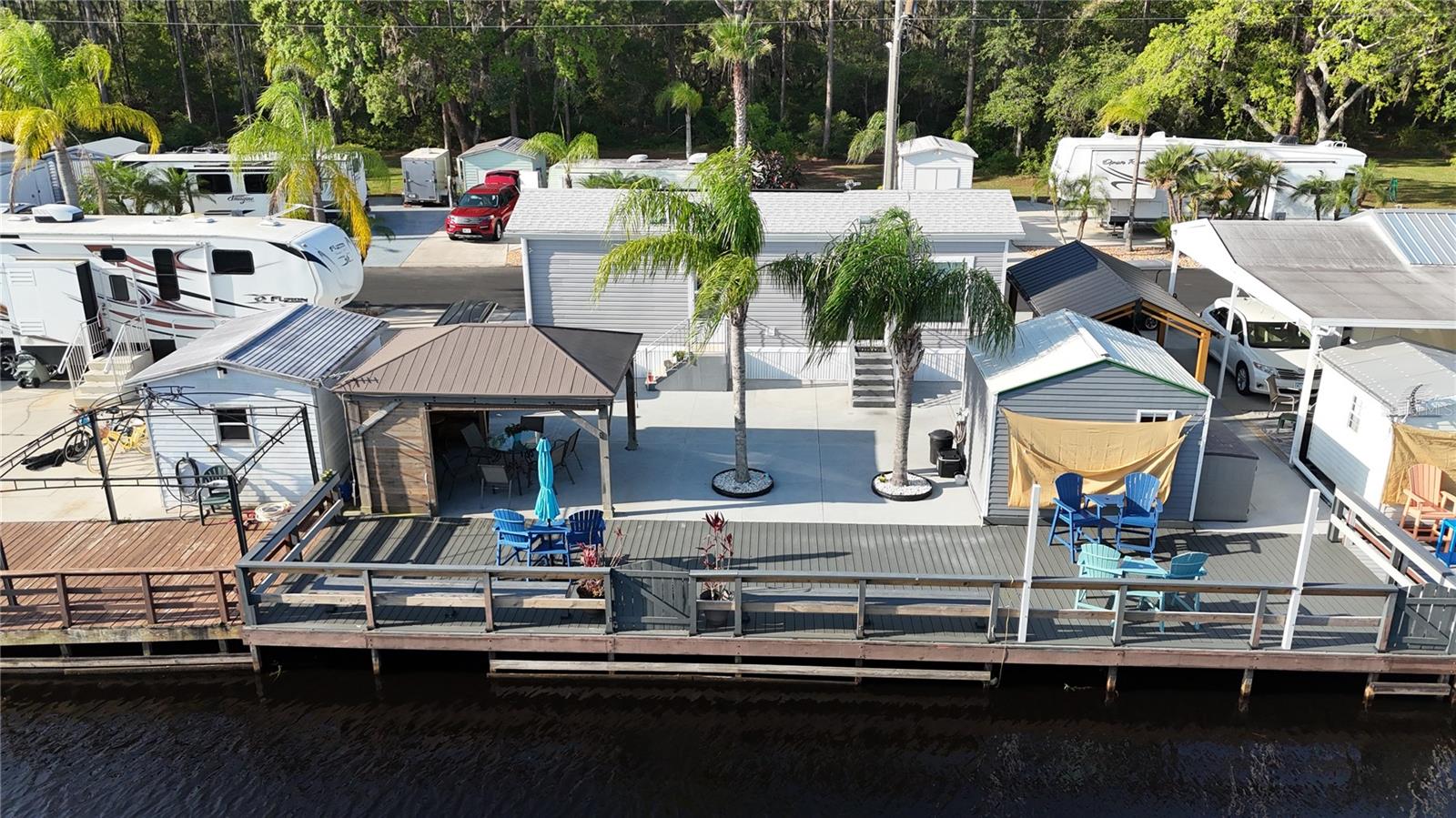Waterfront Paradise Awaits! Welcome to Shelter Cove Resort, where this beautiful 1 Bedroom cottage is more than just a home—it's a lifestyle. Nestled on a stunning 60' canal front lot on Pirates Cove leading to Center Lake, part of the breathtaking Alligator Chain of Lakes. This gem comes complete with your own private boat dock—ready for your morning coffee on the water or sunset cruises with friends. Outdoor Living at Its Best: • Massive 12 x 16 ' Gazebo with upgraded electric — perfect for entertaining! • Large Dock built with Trex composite decking with plenty of room for gatherings, grilling, and soaking in the Florida lifestyle • 10 x12 outdoor shed with plenty of storage • Large 11 X 21 carport • YOU OWN THE LAND! No lot rent here! • Gated Community 150-acre community with private boat launch, Clubhouse with community pool, shuffleboard, and acres of golf cart trails to enjoy nature. Prime Location with Easy access to Florida Turnpike & Hwy 192 Close to shopping, restaurants, medical centers, Orlando International Airport, Disney World, Universal, Sea World and only 40 mins to Melbourne and Cocoa Beach. This home is more than just a beautiful waterfront retreat—it's an investment in lifestyle and freedom. The perks are endless, and the peace and beauty of lakefront living are something you truly have to see to believe. Don't wait—your piece of paradise is calling. Move in ready and Turnkey..just bring your toothbrush! Call today to schedule your private showing!