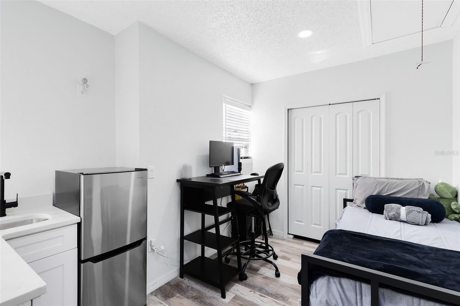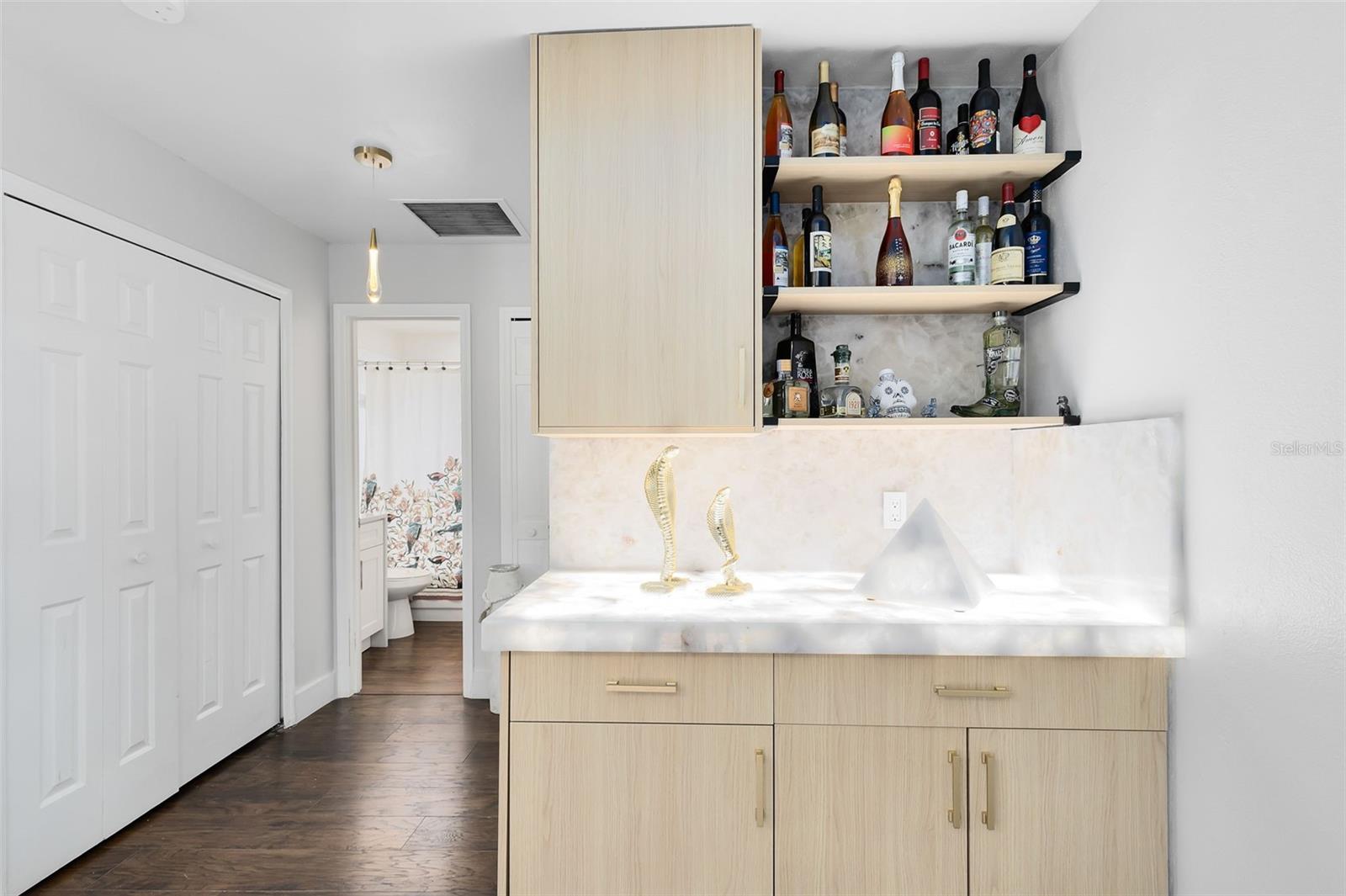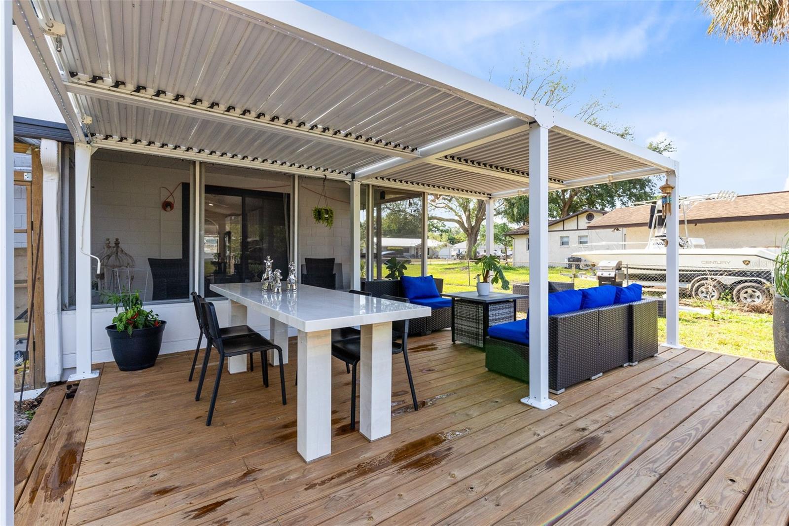 Fully Renovated Canalfront Home with Direct Access to the East Lake Toho Chain of Lakes! Located on a peaceful cul-de-sac, this beautifully upgraded home features an open floor plan with vaulted ceilings, luxury wood-look flooring, and abundant natural light. The showstopping kitchen offers 42” cabinets, a large island with breakfast bar, quartz countertops, a deep blue quartzite backsplash, modern lighting, a quartz composite single-bowl sink, a Crystal quartzite dry bar, and new stainless steel appliances. The spacious master suite includes serene canal views, a walk-in closet, and a fully renovated en-suite bathroom with quartz counters, shower walls, and designer wallpaper. The guest bathroom is also upgraded with quartz and wallpaper accents. Enjoy Florida outdoor living with a covered, screened-in patio and a brand-new covered wood deck with pergola (2024)—perfect for entertaining. The Lanai has Tile, The corner lot offers ample space for a pool, fire pit, or summer kitchen. BONUS: The garage has been professionally converted into a private in-law suite complete with a full bathroom featuring quartz shower walls and vanity, a kitchenette with quartz countertops, and an undermount stainless steel sink. Additional upgrades include: New A/C (Dec 2022) Tankless water heater (2023) Backup power system Hardwood flooring throughout the home Laminate flooring in bathrooms NO HOA. Launch your kayak, jet ski, or bass boat from your backyard and enjoy direct water access. Ideally located near Historic Downtown St. Cloud, U-Pick farms, restaurants, and shopping. Just 20 minutes to Lake Nona, 30 minutes to Orlando International Airport, and 40 minutes to beaches and world-famous attractions. Don’t miss this move-in-ready canal front gem packed with upgrades and waterfront charm!