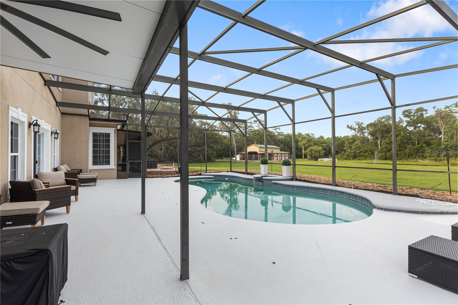 Under contract-accepting backup offers. Imagine waking up every day in your own little paradise. This luxurious 4.81-acre equestrian estate is the perfect fusion of country tranquility and the most amenities. The heart of the home is a gourmet chef's kitchen, equipped with top-of-the-line appliances, custom cabinetry, and a spectacular infinity backsplash that invites culinary creativity. High-quality vinyl flooring and energy-efficient LED lighting permeate every space, elevating the sense of luxury. The master suite is a spacious sanctuary, with an updated bathroom that invites you to relax and an incredible 276-square-foot custom walk-in closet by California Closets. Each of the additional bedrooms offers its own private bathroom, ensuring comfort and privacy for all. Did i Mention NEW ROOF? The exterior is a true oasis to enjoy: a refreshing pool awaits, along with a screened-in outdoor kitchen, perfect for any celebration. EV ELectrical hookup to charge your vehicles. Whole house Wired for 30/50amp generators. RV electric hookup. If you're passionate about horses or country living, this property features a classic barn with stables and a serene pond. Peace of mind is guaranteed with a newly installed roof in 2024. Plus, its location is unbeatable, minutes from everything you need (Publix, Tractor Supply, the Florida Turnpike) and with easy access to Orlando and Lake Nona. And best of all: no HOA! This means total freedom for your RV. Don't miss this opportunity to live the rural dream with all the amenities. Schedule your visit today. Showing instructions: 2 hours notice required Please remove shoes or use booties Leave business card on please do not touch sellers belongings Buyers agent must stay with buyers at all times Cameras in and around property