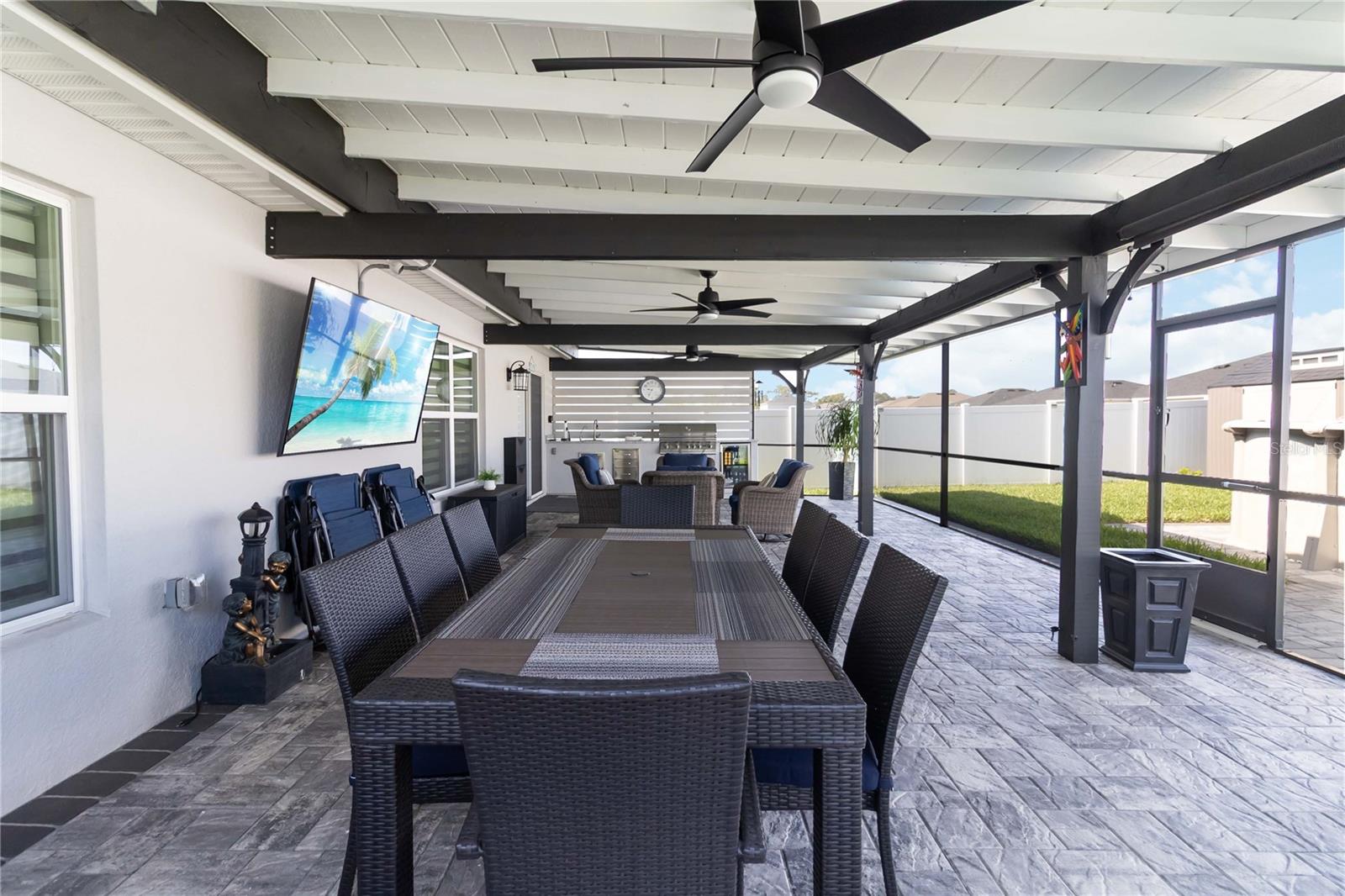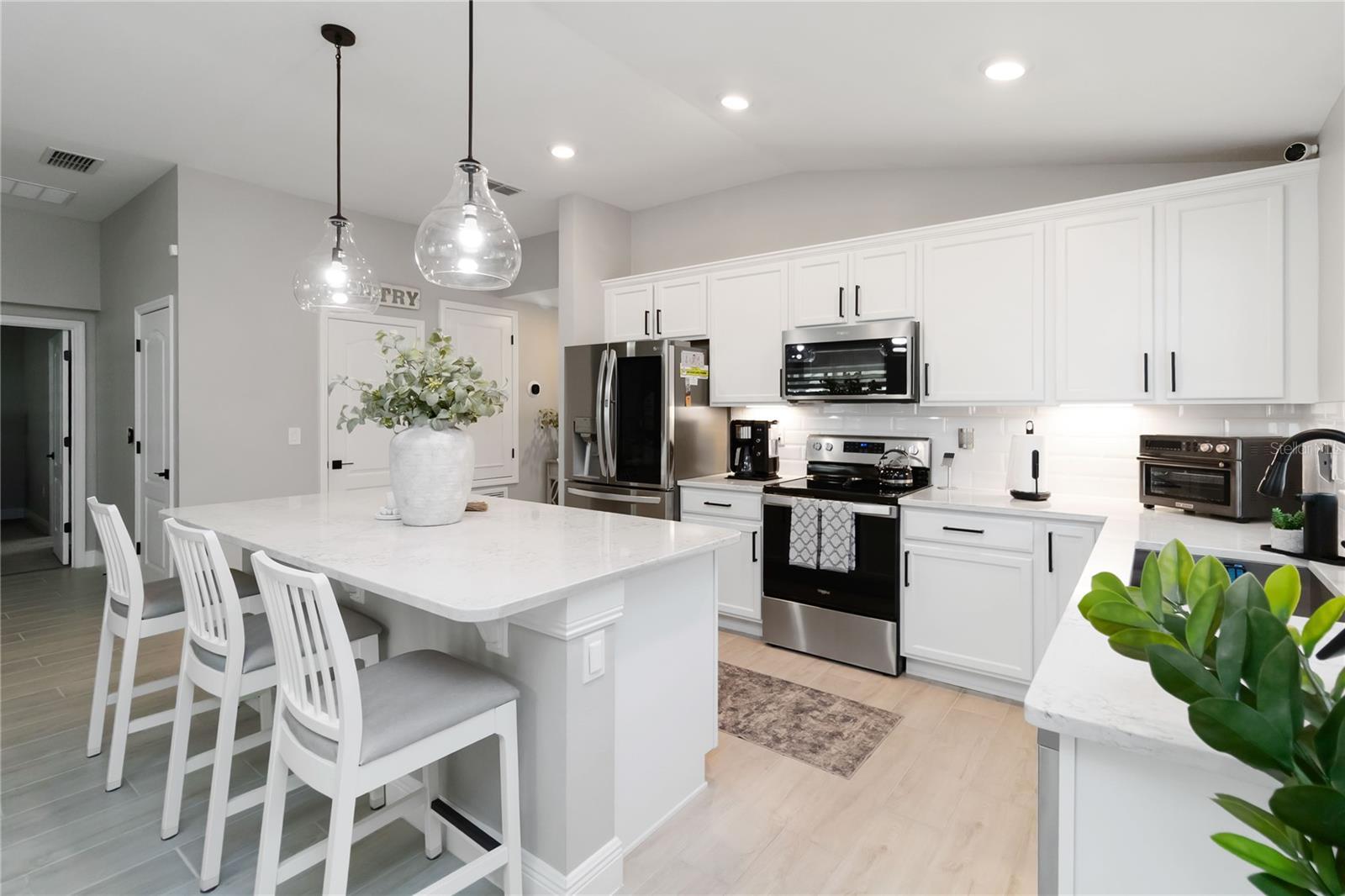 $20,000 in Seller Concessions - Motivated Sellers - Price Improvement! The Time in Now! Welcome to 3211 Sweet Acres Place, Saint Cloud, FL – A Custom Beauty from Top to Bottom! Prepare to be impressed by this meticulously upgraded 4-bedroom, 2-bathroom gem in the highly sought-after Gramercy Farms community. From the moment you walk through the upgraded front door, you'll be captivated by the thoughtful design and upscale finishes that make this home truly one of a kind. Soaring high ceilings in the kitchen and living areas create an open, airy ambiance, while elegant porcelain tile flows seamlessly throughout the main living spaces. Plush, beautiful carpet in the bedrooms adds comfort and warmth. The spacious, open-concept kitchen is a dream for entertainers, boasting sleek Quartz countertops, and ample prep space with a central island. Step outside to your private backyard oasis—a massive 40’ x 20’ screened-in pergola featuring a luxurious summer kitchen complete with granite countertops, a built-in grill, and a mini fridge. It’s the perfect setting for hosting friends and family or relaxing in your own tropical retreat. The list of upgrades is absolutely incredible and sets this home apart from anything else on the market. Enjoy the lush Saint Augustine grass, professionally landscaped with striking foxtail palms. The pristine above-ground pool offers refreshing fun in the Florida sun, and the solar panels keep your electric bill next to nothing! A water softener system adds even more comfort and efficiency. The bathrooms also shine with granite countertops, and the entire home is painted in a stylish, neutral eggshell finish. Gutters are installed throughout for added durability and drainage. A 220V outlet in the garage is ready for your EV, and the Chamberlain smart garage opener with video plus exterior security cameras provide peace of mind. From its modern finishes and high-end upgrades to its outdoor entertaining paradise, this home truly has it all. Don’t miss your chance to own this custom masterpiece in Saint Cloud—schedule your private showing today!