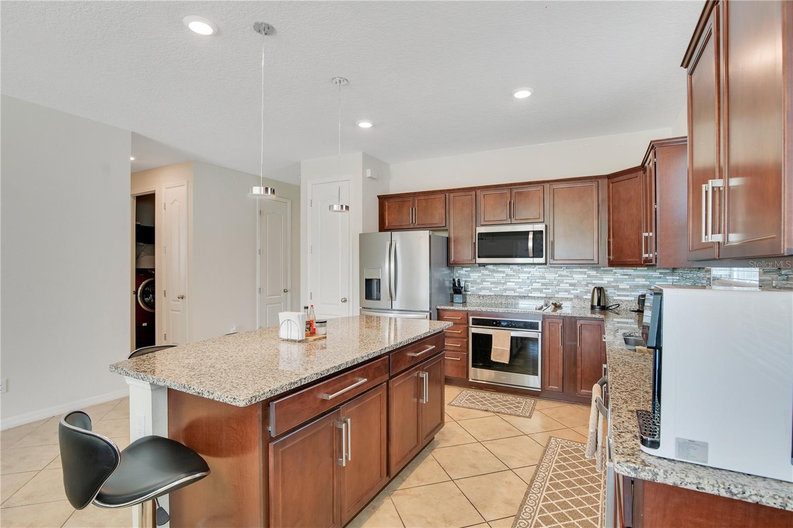 PRICE IMPROVEMENT! Welcome to this beautifully designed 4-bedroom, 3-bath home in the thriving Live Oak Lake community—where comfort, versatility, and modern living come together effortlessly. From the moment you step inside, you'll appreciate the open-concept layout that fills the home with natural light and creates a warm, inviting atmosphere. The heart of the home is the spacious kitchen, featuring granite countertops, stainless steel appliances, and an oversized island perfect for casual meals, meal prepping, or entertaining guests. The seamless flow into the dining and living areas makes everyday life and hosting feel easy and connected. This thoughtfully laid out home includes two master suites—a rare and valuable feature. The main master offers a peaceful retreat with a private en-suite bathroom, dual vanities, and a walk-in closet. The second suite provides added flexibility for multigenerational living, guests, or a private office space with its own full bathroom. Step out back and enjoy serene water views overlooking the pond—a perfect backdrop for morning coffee or unwinding at the end of the day. Whether you're enjoying the scenery indoors or taking in the peaceful setting outdoors, this home offers the perfect balance of tranquility and convenience. Located in the amenity-rich Live Oak Lake community, you're just minutes from parks, trails, schools, and everyday essentials. With its thoughtful layout and relaxing pond views, this Poinciana home truly has it all. Come experience it for yourself!