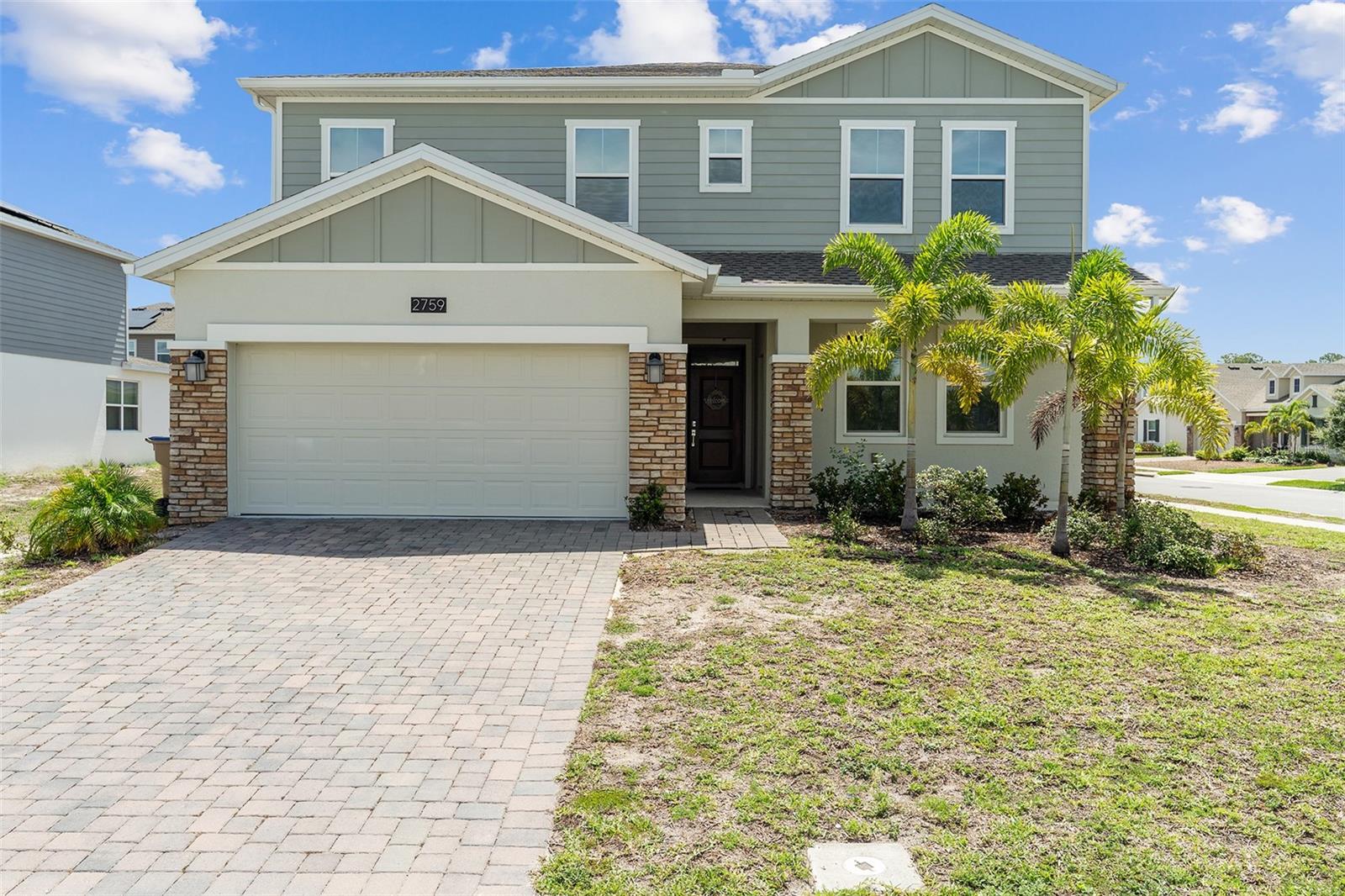 NEXT GEN Design! Located on a desirable corner lot, this stunning "Independence Next Gen" floorplan combines a thoughtful design with multi-generation living. A welcoming paver driveway/walkway and flagstone-accented front elevation creates an inviting curb appeal. A private entrance to the "Next Gen" suite offers both flexibility and privacy, yet remains accessible from the main home. As you step inside the home, you will notice the high ceilings, warm colors, and upgraded ceramic plank tile flooring that runs throughout the main level. Just off the foyer is a powder room and the open-concept seamlessly connects the kitchen, dining, and great room, creating a spacious and functional everyday living or entertaining. The kitchen is a standout featuring solid wood cabinetry with 42" uppers and modern hardware, quartz countertops, stylish glass backsplash, stainless steel appliances, island that seats 3 comfortably, and large pantry. From the great room, sliding glass doors open in the center to reveal a covered lanai to relax outdoors. Conveniently located off the kitchen is access to a tandem 3-car garage which is great for storing your extras. Upstairs, the wrought iron railing adds a touch of elegance to a loft that provides additional living space or even a game room. Adjacent to the loft is a spacious bedroom with a wall-to-wall closet, and 2 additional bedrooms are generous in size. The nearby full bathroom includes dual sinks, quartz countertop, and a tub/shower combination. The primary suite is expansive offering enough room for a sitting area. A luxurious ensuite bathroom features a tall dual-sink vanity with quartz top, garden tub, upgraded tile shower, private water closet, and even a linen closet. The laundry room is also conveniently located upstairs. The self-contained Next Gen suite is ideal for extended family or guests, offering a living room, kitchenette with dining space, private bedroom with walk-in closet, laundry closet with stackable washer/dryer, and even it's own A/C unit. Additional features include upgraded door handles throughout, water softener and purification system, upgraded remote control lighting/fans, gutters, and is equipped with energy-efficient solar panels for long-term savings on utility costs. Sellers have also initiated plans to replace the lawn. The community amenities include tennis, pickleball, basketball, playground and dog park. Conveniently located near shopping, dining, and beautiful East Coast beaches, with easy access to Lake Nona’s Medical City, major highways, and the Orlando International Airport. Enjoy a central location that places you within reach of all that Central Florida has to offer, including world-renowned attractions.