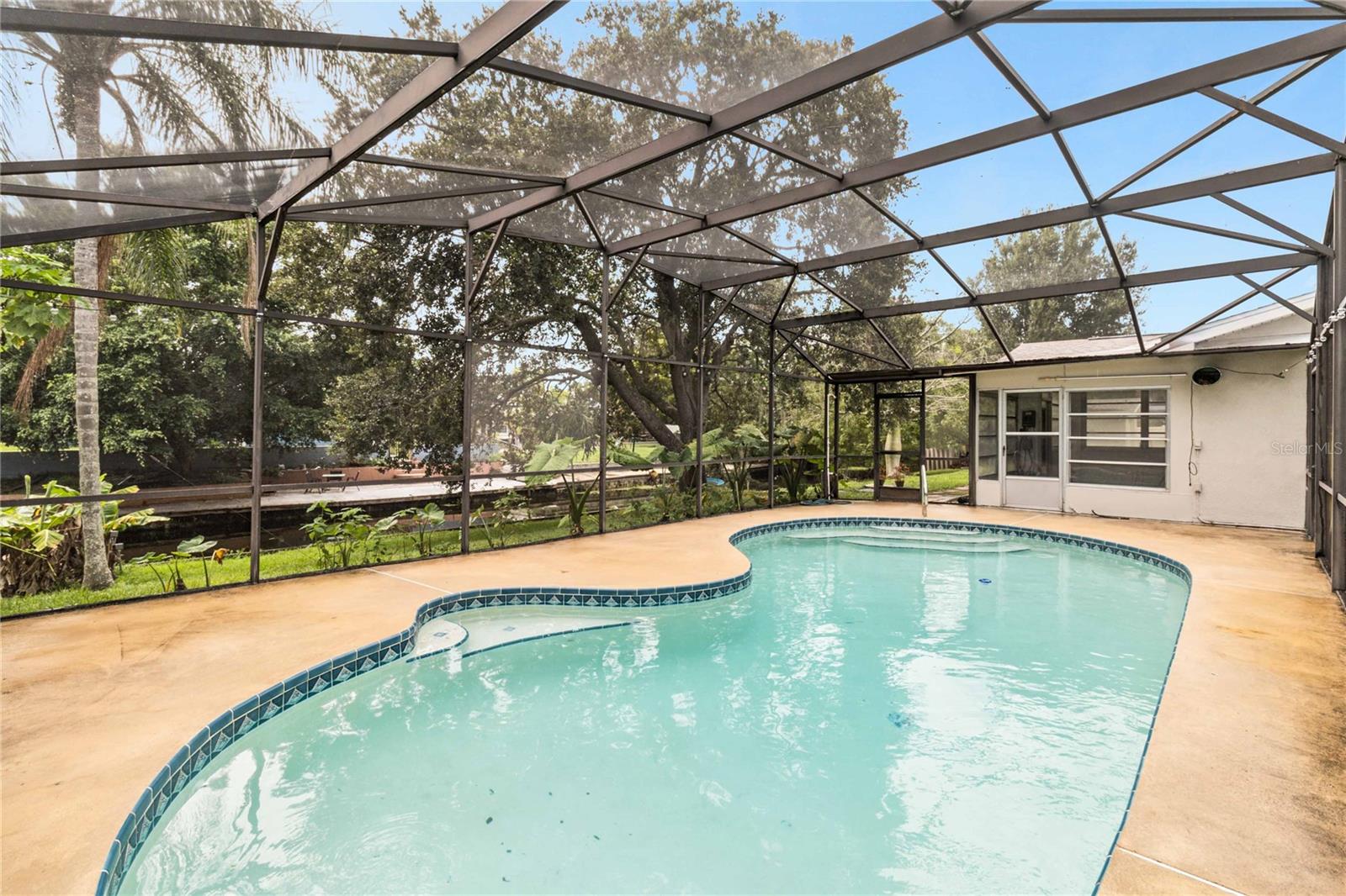 NO HOA AND NO CDD! Discover the perfect blend of comfort, space and waterfront living in this 3 bedroom 2 bath pool home close to everything. This home is situated on a double lot with a 2 car garage/oversized workshop and direct canal access (avoid the new boat ramp fees). The generous primary suite includes a private ensuite bathroom and offers a quiet retreat at the end of the day. Two additional bedrooms share a full guest bathroom perfect for family and visitors. Need more space? A large Florida room offers endless possibilities - from hosting gatherings to relaxing in the afternoon with plenty of sunshine with the multitude of windows located in this room. Open the door to unwind in your screen-in- pool, the perfect place to cool off. The canal access opens the door to one of Florida's most iconic chain of lakes- stretching from East Lake Toho to Fells Cove and Lake Ajay. New AC in 2020, New Roof in 2020 along with a new drainfield in 2024. 0 down payment financing available for those who qualify.