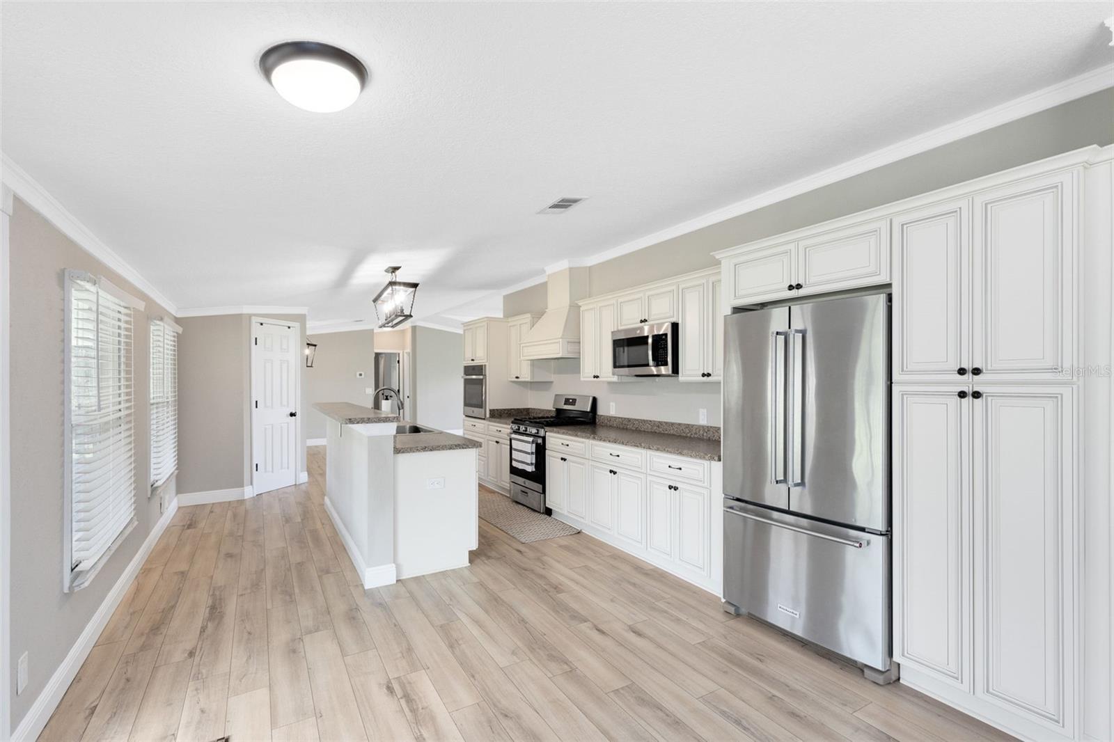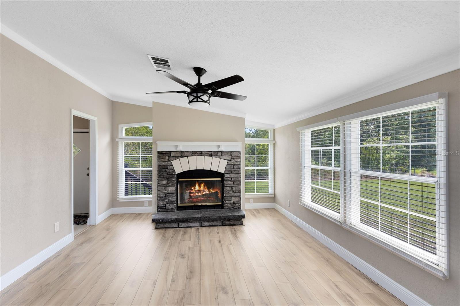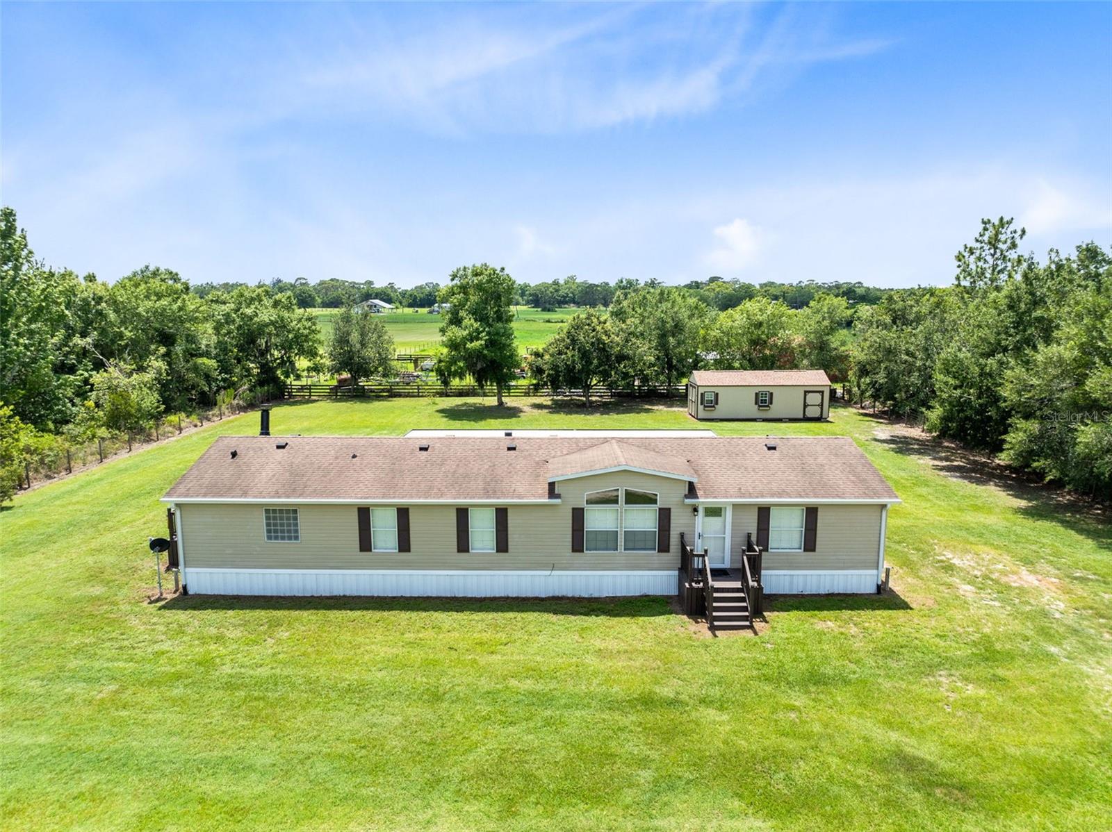 Peaceful country living with modern upgrades! Situated on 1.36 acres in Saint Cloud, this fully remodeled home offers space, privacy, and style—all with no HOA. The split floor plan includes multiple living areas, featuring a cozy wood-burning fireplace in the family room and a spacious, light-filled living room. Enjoy cooking with a new stainless propane stove, and unwind in the generously sized primary bathroom. Major updates include new flooring, new bathrooms, in 2022 a new well, septic, and A/C. Step outside to a huge rear porch, perfect for entertaining, and take advantage of the 12x25 shed for extra storage or hobbies. Tucked back on a fully fenced flag lot with a gated entry, this property offers privacy and flexibility just minutes from town conveniences.
