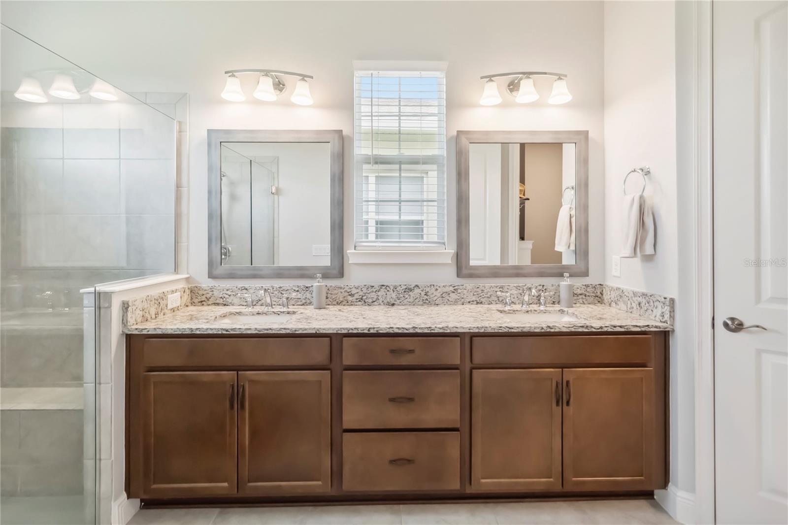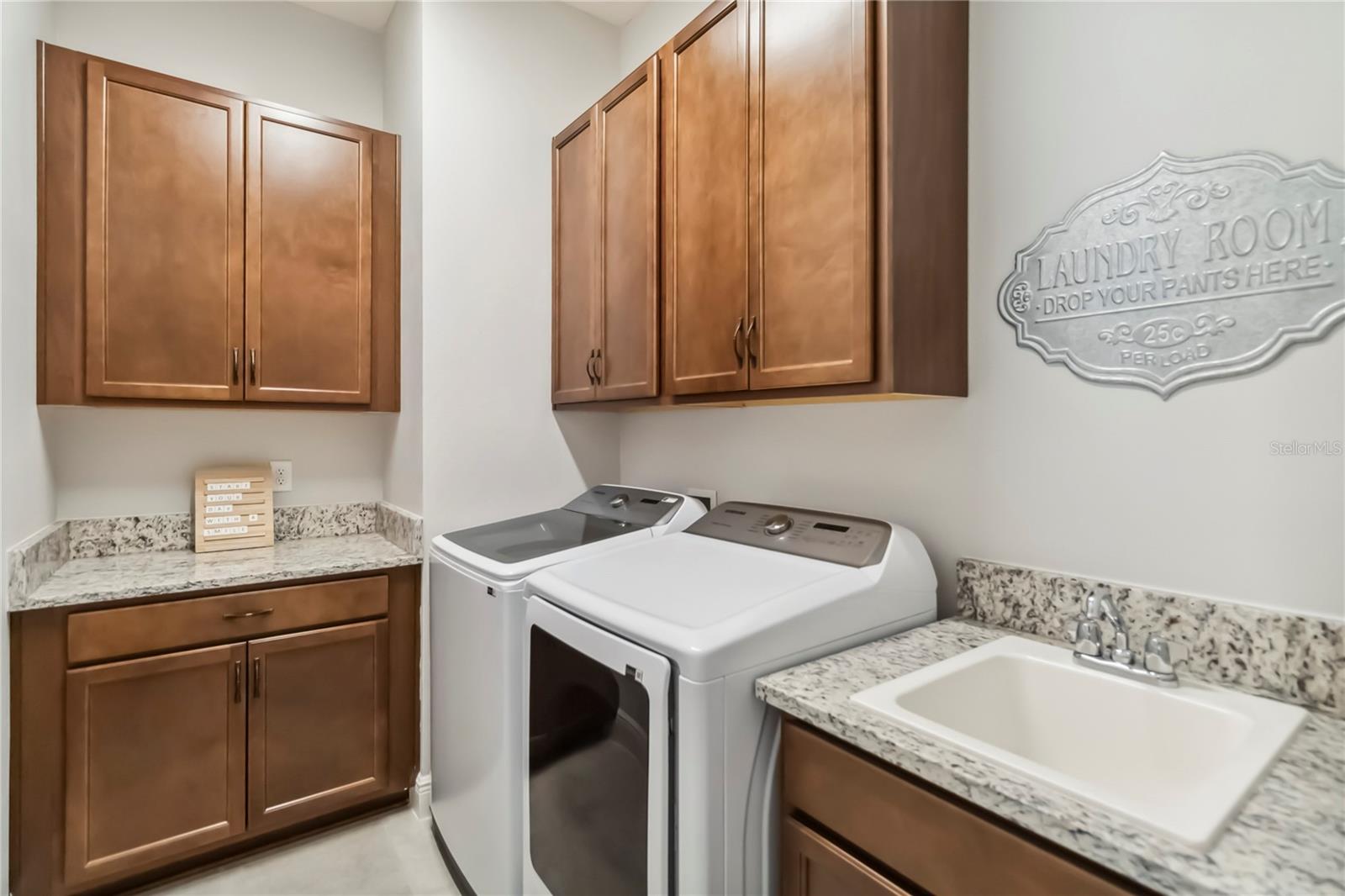 Welcome to this immaculately maintained, like-new 3-bedroom, 3 full bathroom home with a versatile flex room that can easily serve as a fourth bedroom, office, craft room, or personal retreat. NO REAR NEIGHBORS, this rare Jones Homes Verona floor plan is located in the highly desirable Del Webb Twin Lakes 55+ active community. Designed with comfort and style in mind, this home boasts 10’ ceilings, 8’ doors, and ceramic tile flooring throughout, no carpet anywhere. The bright, open kitchen is a chef’s dream, featuring contemporary walnut cabinetry, custom granite countertops, stainless steel appliances, a natural gas cooktop, perfectly placed pendant lighting, and a large island with a farmhouse sink. The Verona’s popular open-concept layout flows seamlessly from the kitchen into the living and dining areas. Oversized sliding glass doors lead to the screened lanai complete with a ceiling fan and mounted TV overlooking your professionally landscaped, fenced backyard with peaceful privacy and nature views. The spacious primary suite offers a tray ceiling, remote-controlled ceiling fan, blinds, and generous closet space. The luxurious primary bath includes a walk-in tiled shower with built-in bench and frameless glass enclosure, dual sinks, granite vanity, and oversized custom mirrors. Two additional full bathrooms include a tub/shower combo and a second walk-in tiled shower. The well-designed laundry room offers a utility sink, upper and lower cabinetry, and countertop space. The large 2-car garage includes overhead storage racks, and the exterior features a beautifully maintained paver driveway and an upgraded paint color that stands apart from neighboring homes. Home can be sold fully furnished if desired. Resort-Style Living at Its Finest Your HOA includes an incredible list of amenities: State-of-the-art fitness center & sauna Heated swimming pools, lap pool, & spa Lighted tennis, pickleball, basketball, and bocce ball courts Community boat dock with fishing & boat rentals Putting green, dog park, and community gardens. Stunning new clubhouse with gathering room, billiards, poker room & game room Outdoor patio areas and numerous interest groups & activities Live the lifestyle you’ve been waiting for! Perfect Central Location Just minutes from Lake Nona, Downtown St. Cloud, shops, restaurants, theme parks, Brevard beaches, Lake Nona VA Hospital, Medical City, Orlando International Airport, and major roadways everything you need is within easy reach. Don’t wait, schedule your private showing today and experience this exceptional home for yourself!