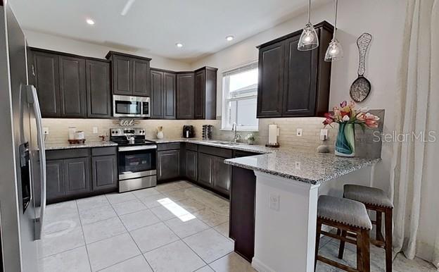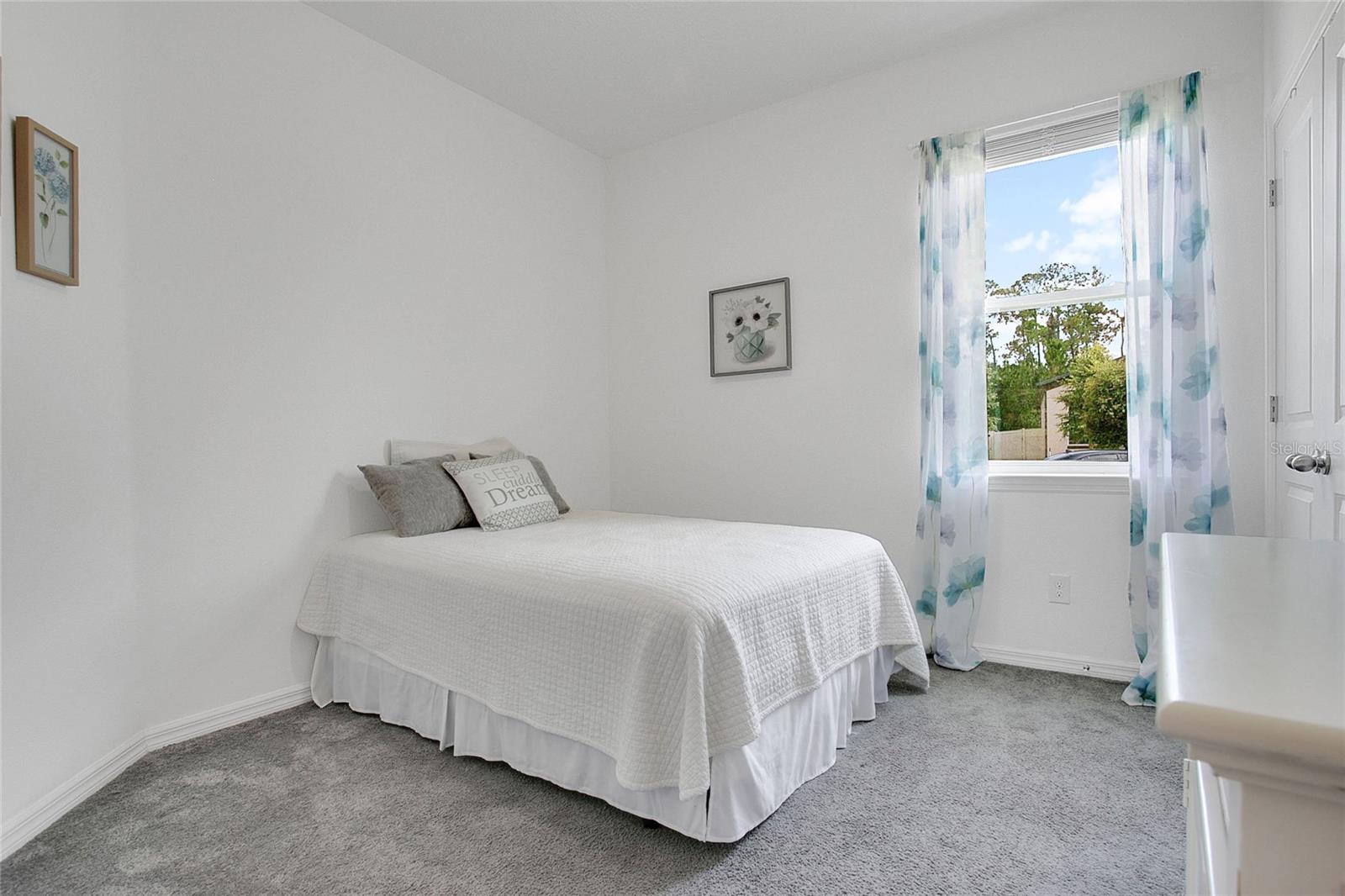 Comfort, Space & Great Location! Welcome to this beautiful 4-bedroom, 2 bathrooms as a New Home located in a Corner Lot in the peaceful and desirable Sunset Grove Community! NO CDD. Nestled in one of the Largest and Corner lots in the community this property offers the perfect blend of privacy, and convenience. Open floor plan and spacious and well-appointed interiors. This home features several upgrades, including a kitchen backsplash, under-cabinet lighting for better illumination and elegance, elegant tile flooring in common areas, high ceilings, a screened lanai, and a rain shower in the master bathroom. You will be impressed with the spacious and modern kitchen, bright and roomy, featuring granite countertops, 42-inch cabinets, stainless still appliances and a designated area for a breakfast bar and walk-in pantry. The Master suite is a true retreat offering a walk-in closet and an en-suite bathroom with dual sinks, a shower with rain shower and the toilet is privately enclosed by a separate door. The master suite enjoys lovely views of the tropical garden and partial water view through large windows. One of the bedrooms has a front-facing view of the property, ideal for those working, studying or relaxing from home (bonus room, perfect for a family area, home theater, or extra entertainment space). The laundry room is spacious and functional for all your household needs. A second full bathroom with a single sink and a tub with shower, providing additional convenience for family members or visitors. Sliding doors in the dining room give you access to a spacious screen covering lanai with celling fan and patio with partial water view, ideal for relaxing. Hudge patio making it an ideal space for family gatherings, barbecues, or simply enjoying the outdoors the excellent weather of Florida. Also, you can build your desirable pool. The Garage for two vehicles, providing reliable protection from the elements year-round. In addition, the property includes a spacious driveway that can comfortably fit up to four more cars, offering ample parking space for families with multiple vehicles or for entertaining guests. This community offers peace and security while still being conveniently close to all the amenities such as a pool and walking trails. Great school and great opportunity to join this exquisite area minute away from Medical City, mall, restaurants, supermarket, etc. With this exclusive community, ample space, comfortable living areas and ideal layout, this property is the perfect place to call home.