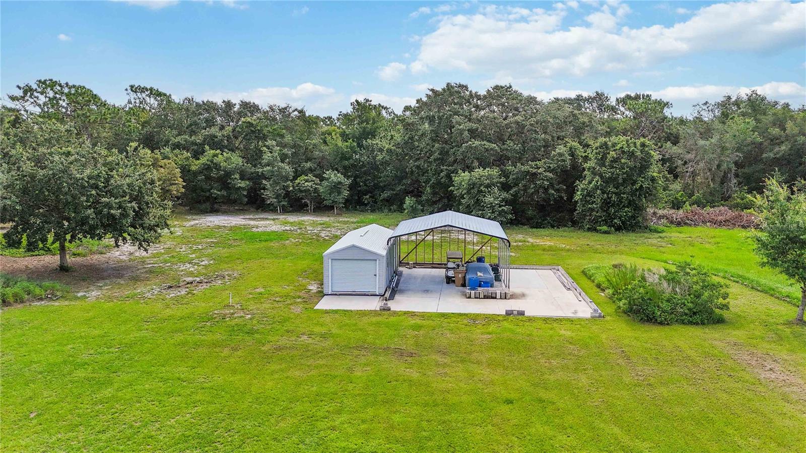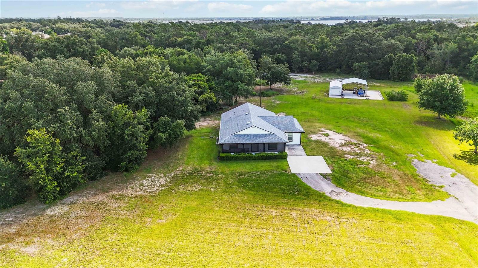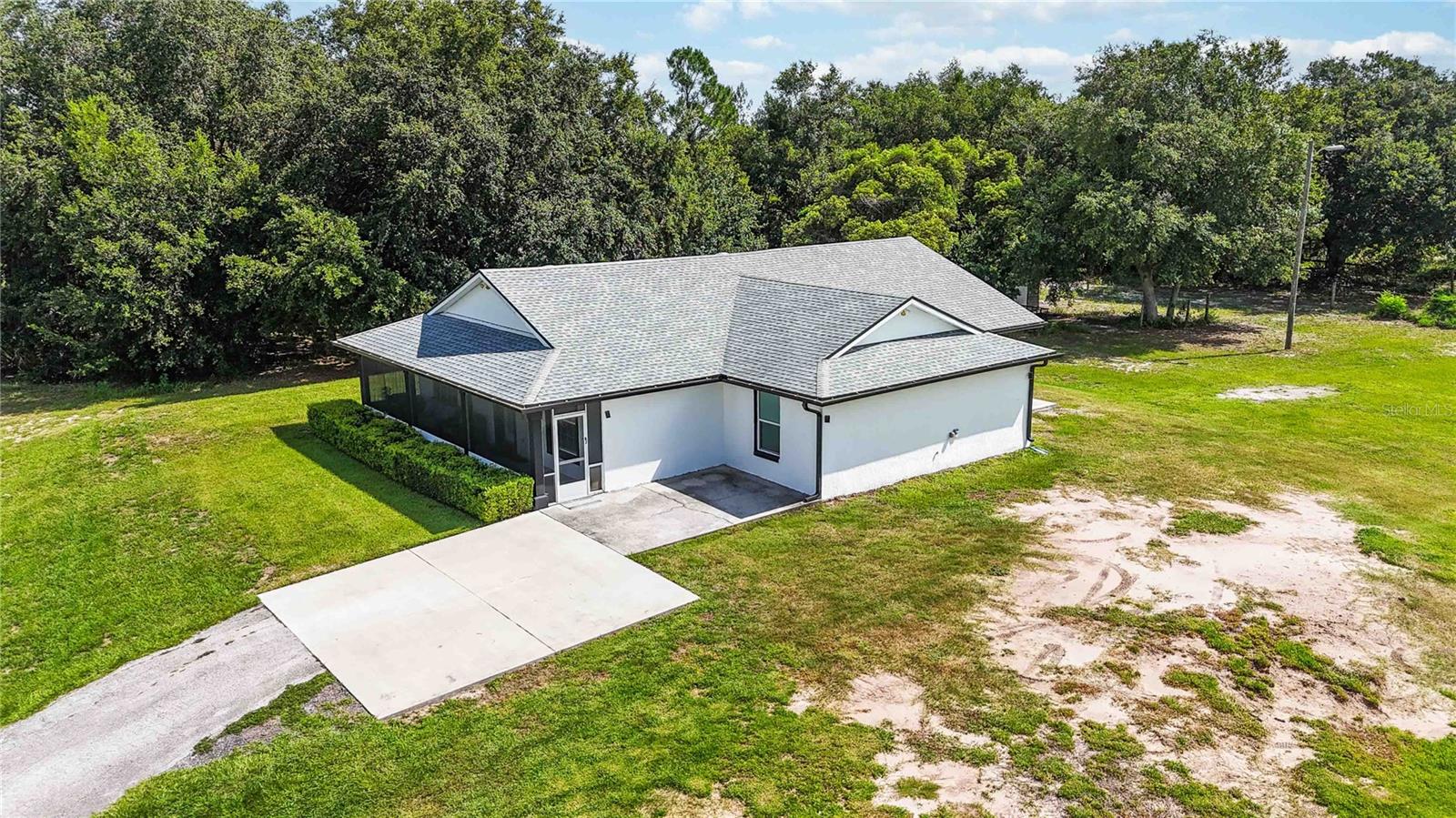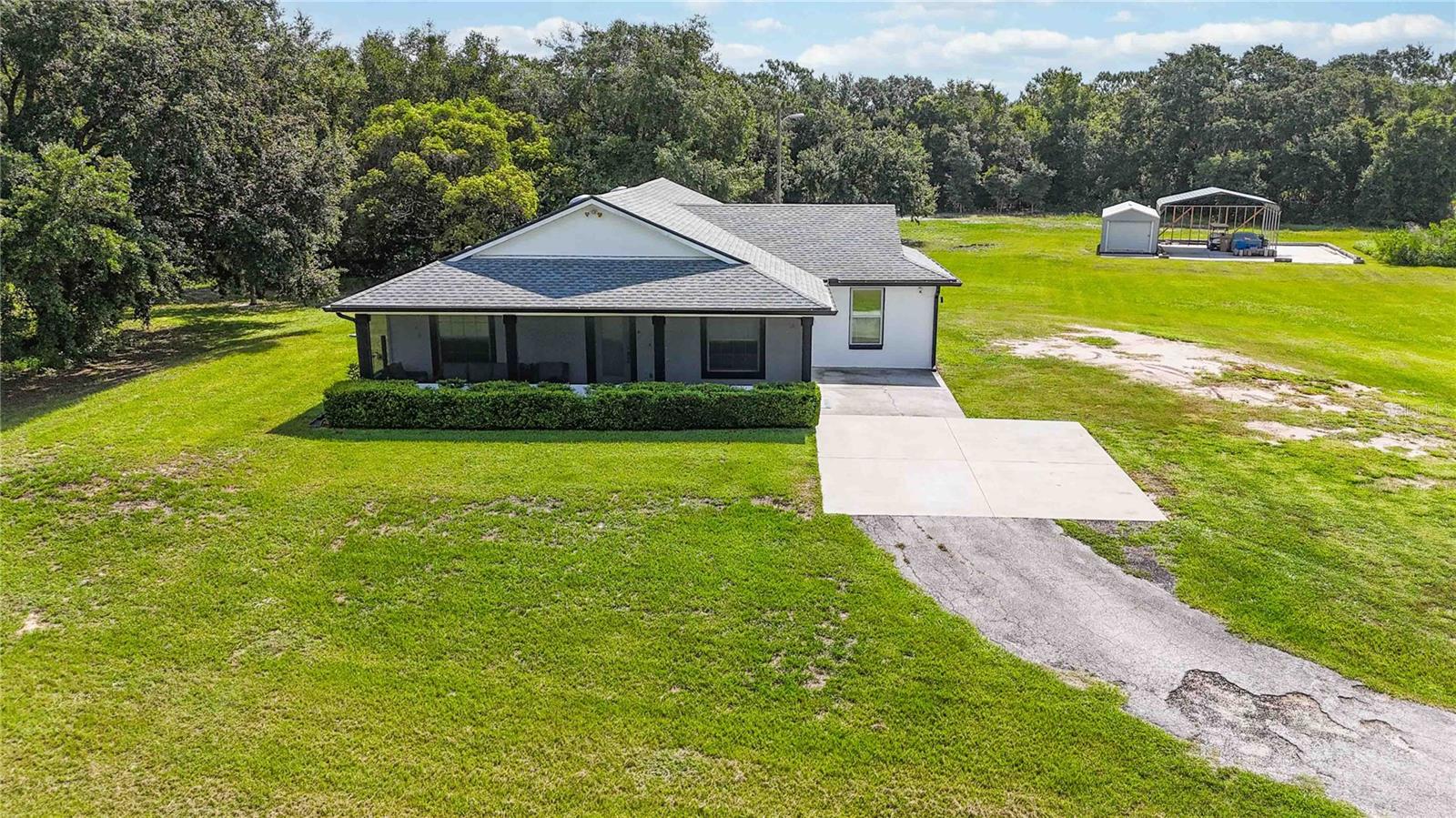 Welcome to this charming 2,543 sq. ft. block home situated on 4.87 acres, offering the perfect balance of peaceful country living and quick access to some of Florida’s most exciting destinations. Set in an area poised for strong future appreciation, this property provides not only a beautiful lifestyle but also an excellent investment opportunity. Step inside to discover a spacious open floor plan connecting the kitchen and living room, creating an inviting space perfect for everyday living and entertaining. The kitchen boasts stainless steel appliances, a farm sink, and plenty of counter space, seamlessly flowing into a large living area and an additional 10’ x 24’ flex room ideal for a playroom, office, or guest room. The expansive primary bedroom features ample closet space and a luxurious en-suite bath with a walk-in shower and dual sinks. Two additional bedrooms each enjoy their own full bathrooms, ensuring comfort and privacy for family and guests. Outside, you’ll find a 40’ x 60’ concrete pad, including a 20’ x 24’ covered section perfect for boat, RV, or outdoor equipment storage, plus a 15’ x 30’ storage shed for added convenience. Just minutes from Disney, Melbourne Beaches, Orlando International Airport, and more, non-HOA community offering freedom and flexibility and Endless possibilities for outdoor fun—from bonfires to family cookouts. Turn this countryside retreat into your dream home and secure a bright future in one of Florida’s most promising areas!