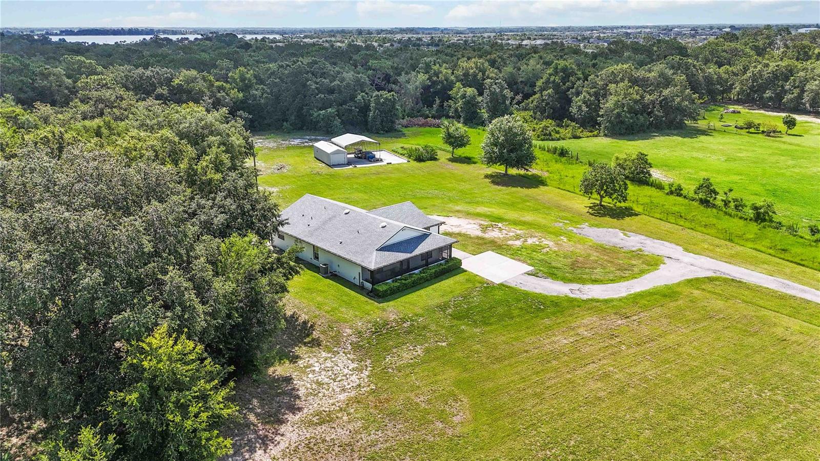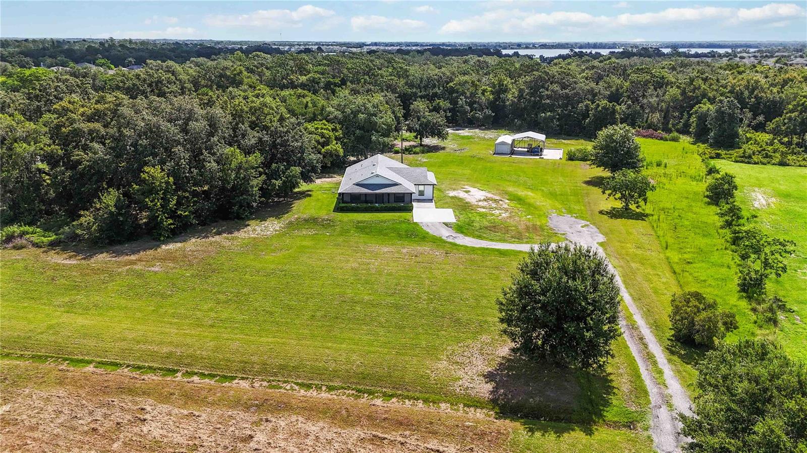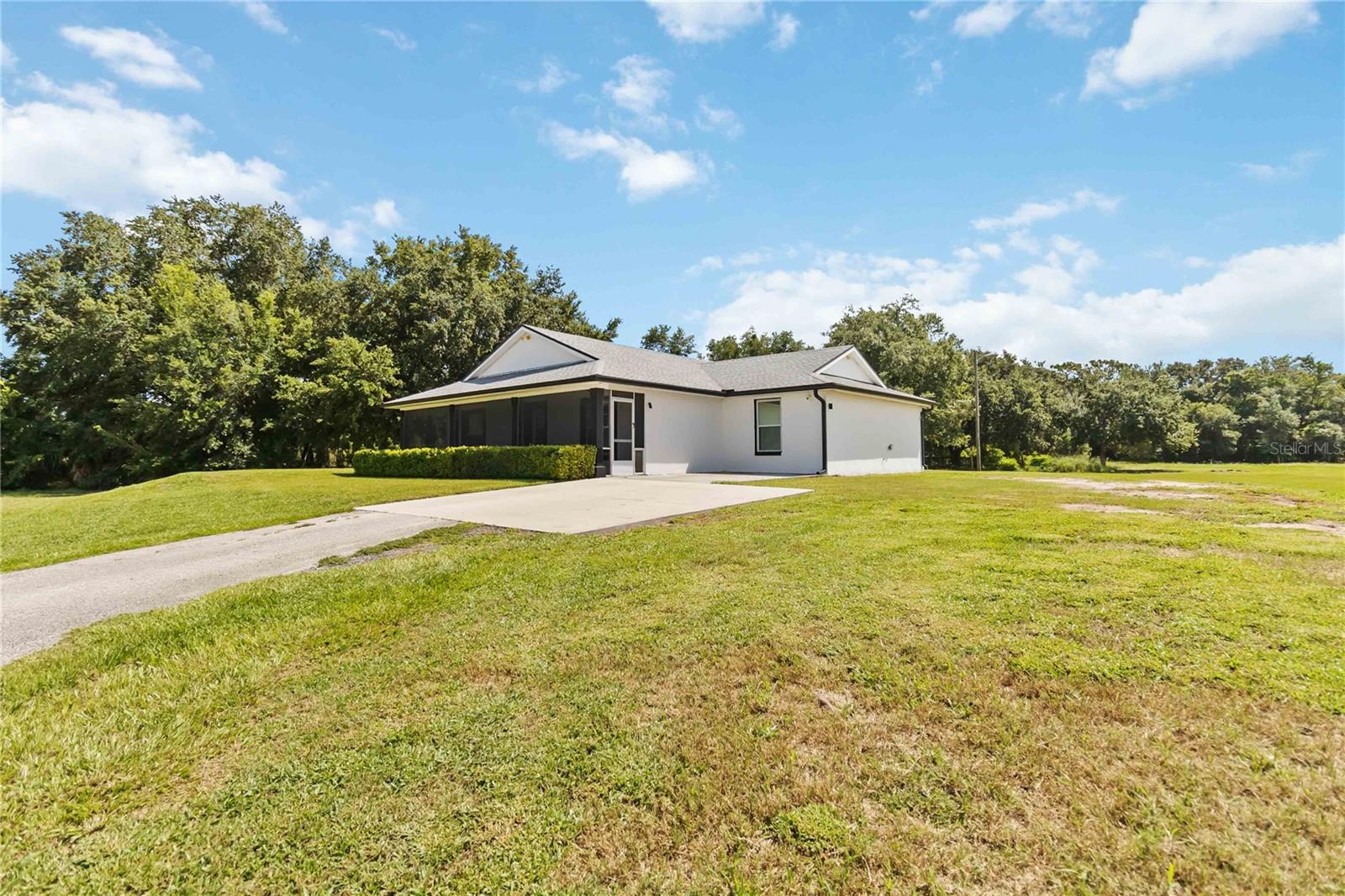 Welcome to this charming 2,543 sq. ft. block home situated on 4.87 acres, offering the perfect balance of peaceful country living and quick access to some of Florida’s most exciting destinations. Set in an area poised for strong future appreciation, this property provides not only a beautiful lifestyle but also an excellent investment opportunity. Step inside to discover a spacious open floor plan connecting the kitchen and living room, creating an inviting space perfect for everyday living and entertaining. The kitchen boasts stainless steel appliances, a farm sink, and plenty of counter space, seamlessly flowing into a large living area and an additional 10’ x 24’ flex room ideal for a playroom, office, or guest room. The expansive primary bedroom features ample closet space and a luxurious en-suite bath with a walk-in shower and dual sinks. Two additional bedrooms each enjoy their own full bathrooms, ensuring comfort and privacy for family and guests. Outside, you’ll find a 40’ x 60’ concrete pad, including a 20’ x 24’ covered section perfect for boat, RV, or outdoor equipment storage, plus a 15’ x 30’ storage shed for added convenience. Just minutes from Disney, Melbourne Beaches, Orlando International Airport, and more, non-HOA community offering freedom and flexibility and Endless possibilities for outdoor fun—from bonfires to family cookouts. Turn this countryside retreat into your dream home and secure a bright future in one of Florida’s most promising areas!