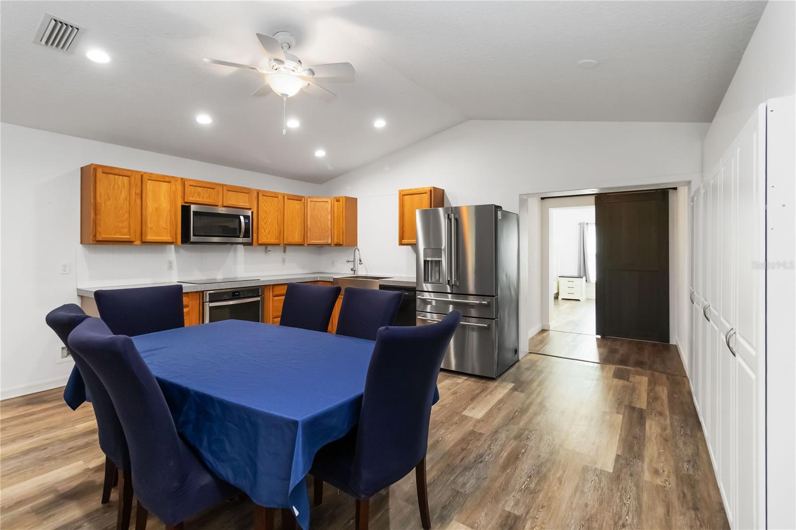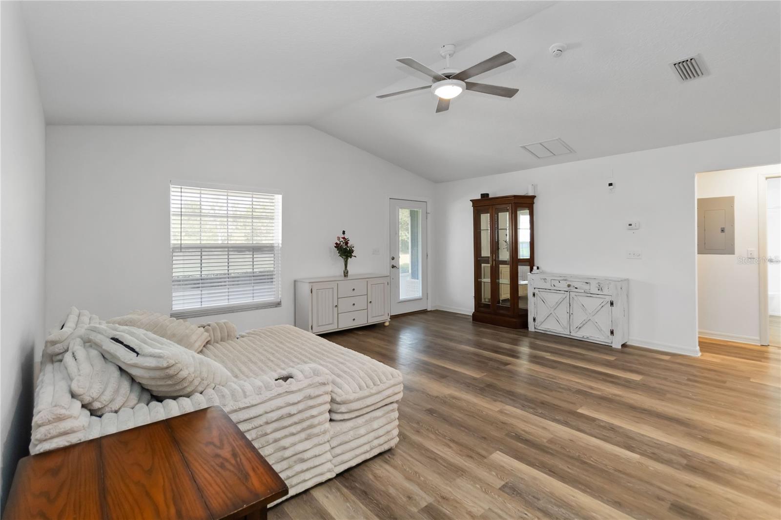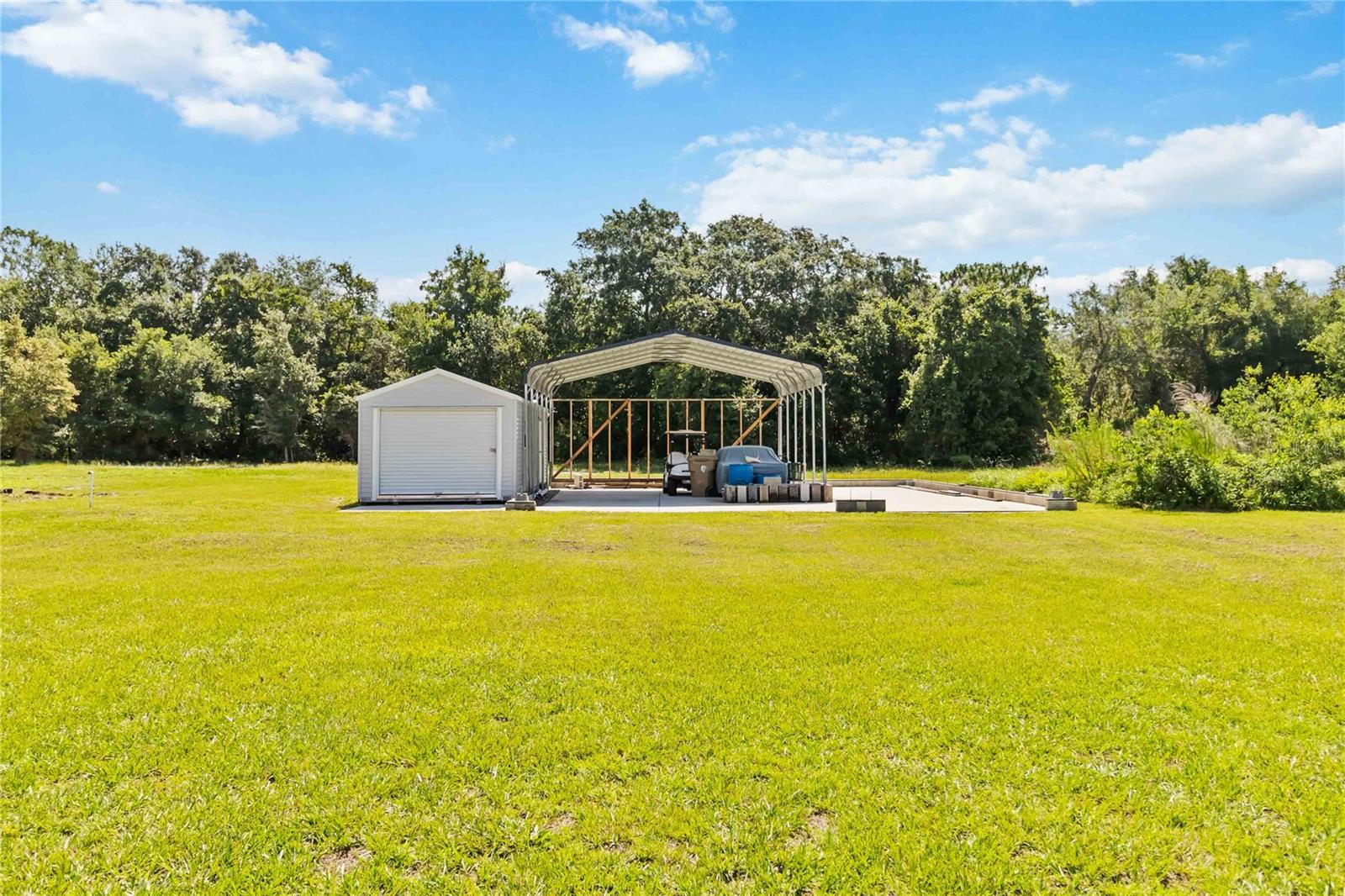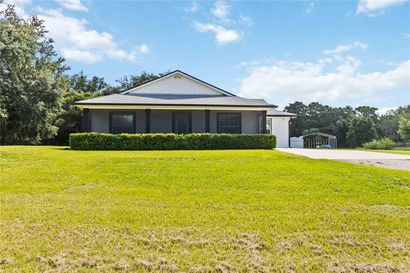 Welcome to this charming 2,543 sq. ft. block home situated on 4.87 acres, offering the perfect balance of peaceful country living and quick access to some of Florida’s most exciting destinations. Set in an area poised for strong future appreciation, this property provides not only a beautiful lifestyle but also an excellent investment opportunity. Step inside to discover a spacious open floor plan connecting the kitchen and living room, creating an inviting space perfect for everyday living and entertaining. The kitchen boasts stainless steel appliances, a farm sink, and plenty of counter space, seamlessly flowing into a large living area and an additional 10’ x 24’ flex room ideal for a playroom, office, or guest room. The expansive primary bedroom features ample closet space and a luxurious en-suite bath with a walk-in shower and dual sinks. Two additional bedrooms each enjoy their own full bathrooms, ensuring comfort and privacy for family and guests. Outside, you’ll find a 40’ x 60’ concrete pad, including a 20’ x 24’ covered section perfect for boat, RV, or outdoor equipment storage, plus a 15’ x 30’ storage shed for added convenience. Just minutes from Disney, Melbourne Beaches, Orlando International Airport, and more, non-HOA community offering freedom and flexibility and Endless possibilities for outdoor fun—from bonfires to family cookouts. Turn this countryside retreat into your dream home and secure a bright future in one of Florida’s most promising areas!