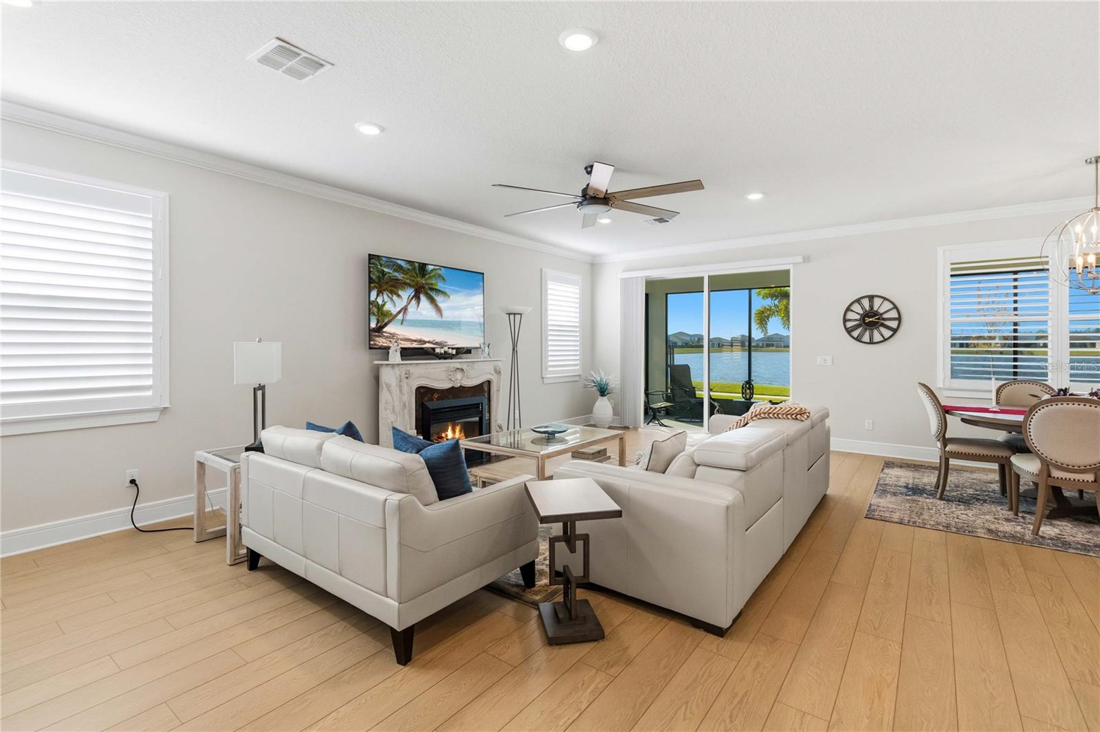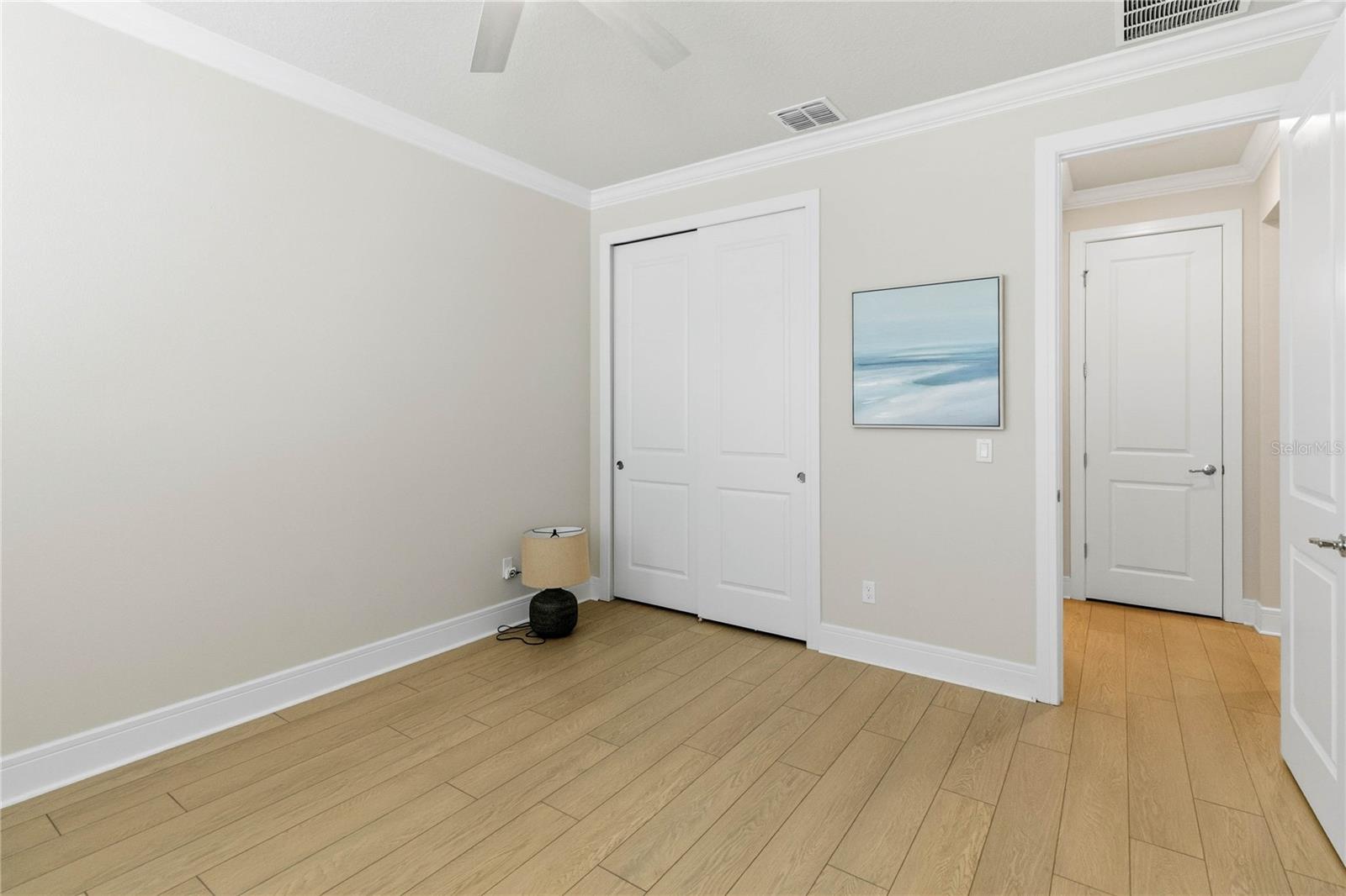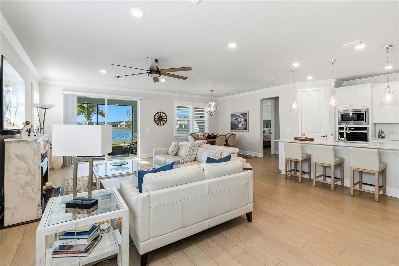 Beautifully appointed 4-bedroom, 3-bath residence with serene water views and a 2-car garage, located in the desirable Amelia Groves community by Pulte Homes. This thoughtfully designed home showcases luxury vinyl flooring and crown molding throughout and an inviting open concept floor plan ideal for both everyday living and entertaining. The chef-inspired kitchen features stainless steel appliances, wall microwave and oven. Cooktop range, exhaust fan, elegant 42" wood cabinetry, quartz counter tops and a spacious center island overlooking the expansive great room. Home has owned ADT Security System. The westside of home has highest grade tinted windows. Amelia Groves offers a lifestyle of comfort and convenience, with future private amenities including a resort-style pool, cabana, playground, walking trails, all with no CDD fees. The HOA fee has internet and cable included! Ideally situated near downtown St. Cloud and the Lake Nona area, the community is zoned for top-rated schools, including a new state-of-the-art AAA high school scheduled to open in August 2026. Enjoy easy access to major roadways, the vibrant Lake Nona Town Center, and an abundance of shopping, dining, and entertainment. Outdoor enthusiasts will appreciate nearby Lakefront Park, Harmony Golf Preserve, and Lake Lizzie with scenic conservation views and a 1.7-mile hiking loop. Discover elevated living at Amelia Grove. Schedule your private showing today. Great location close to Lake Nona Medical City, Downtown St Cloud, Melbourne Beach, Cocoa Beach, shopping and dining. Buyer to verify all room measurements.