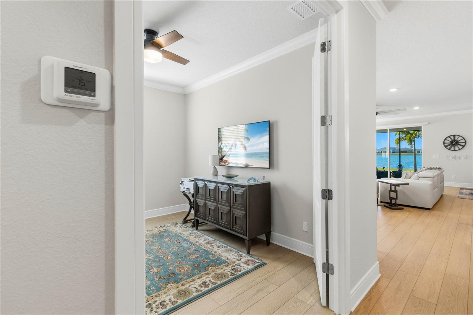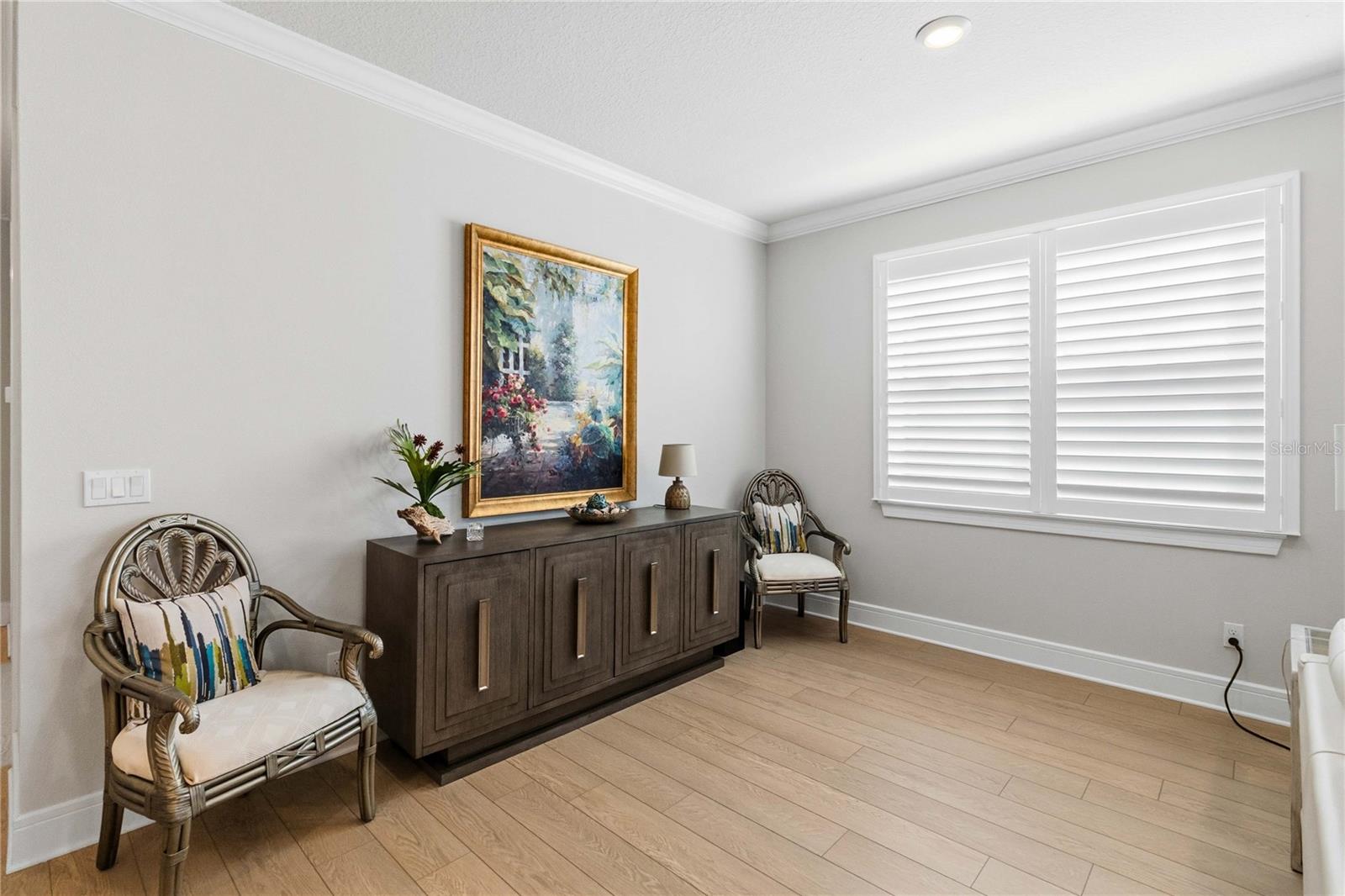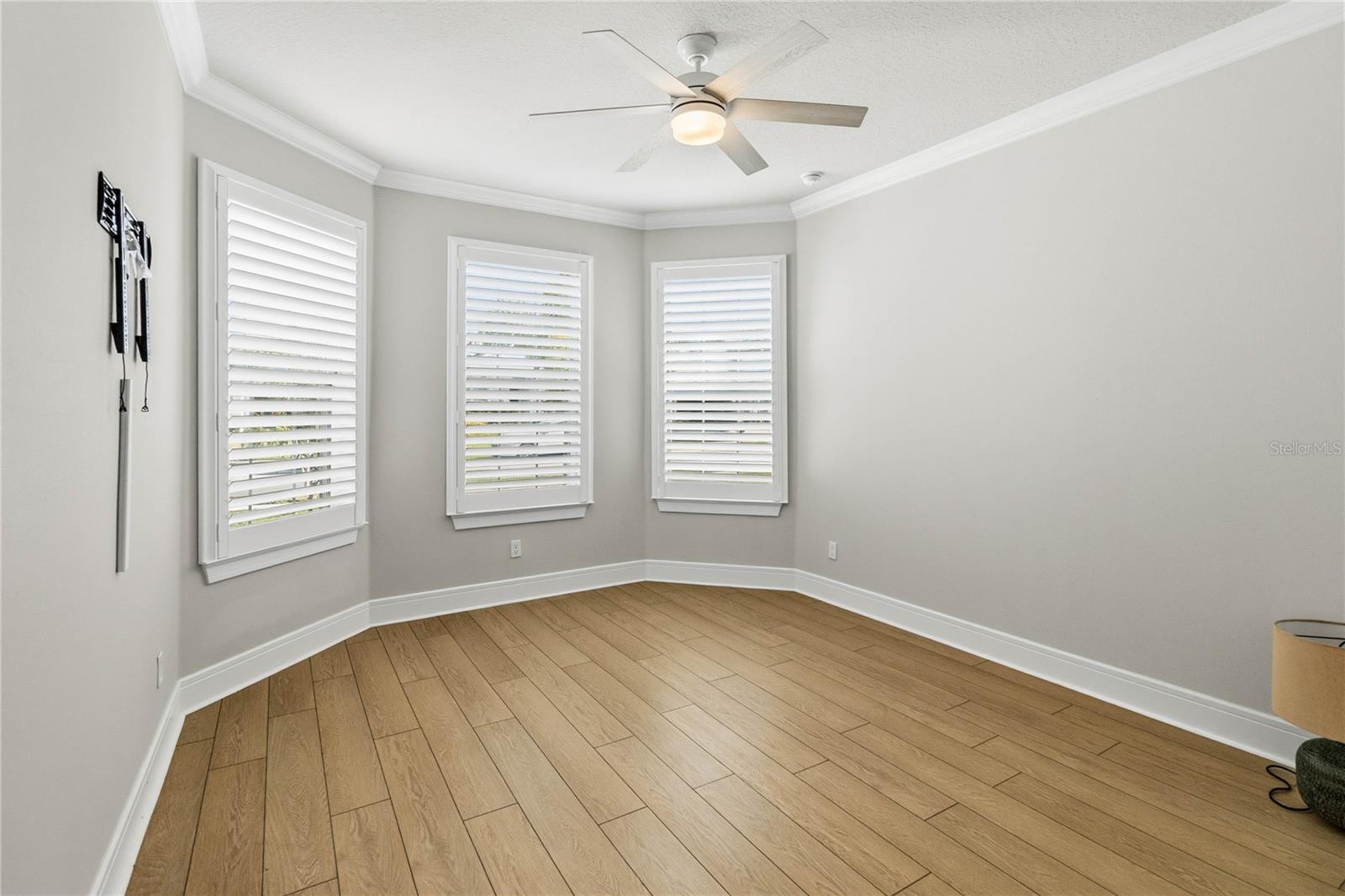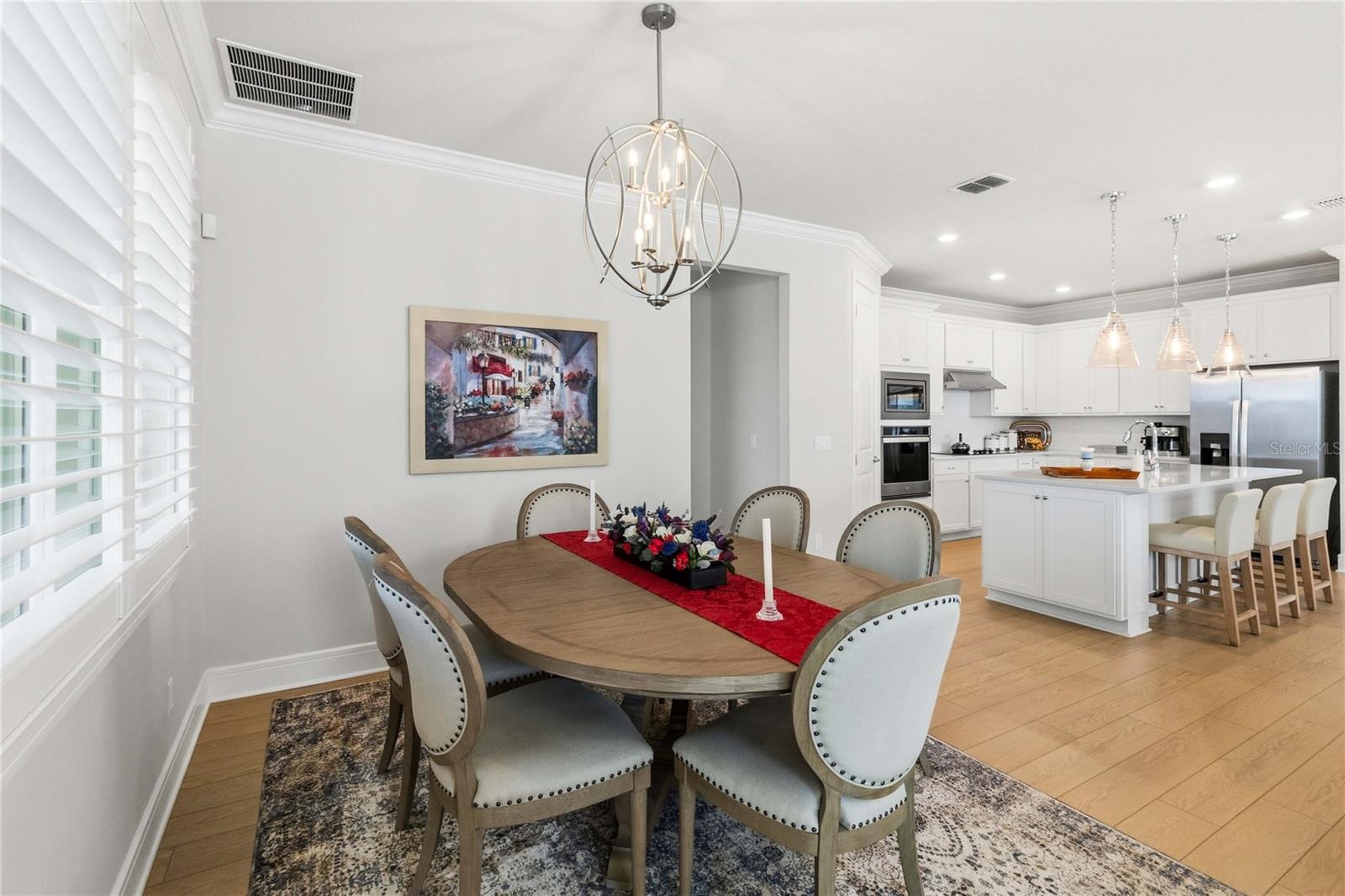 Beautifully appointed 4-bedroom, 3-bath residence with serene water views and a 2-car garage, located in the desirable Amelia Groves community by Pulte Homes. This thoughtfully designed home showcases luxury vinyl flooring and crown molding throughout and an inviting open concept floor plan ideal for both everyday living and entertaining. The chef-inspired kitchen features stainless steel appliances, wall microwave and oven. Cooktop range, exhaust fan, elegant 42" wood cabinetry, quartz counter tops and a spacious center island overlooking the expansive great room. Home has owned ADT Security System. The westside of home has highest grade tinted windows. Amelia Groves offers a lifestyle of comfort and convenience, with future private amenities including a resort-style pool, cabana, playground, walking trails, all with no CDD fees. The HOA fee has internet and cable included! Ideally situated near downtown St. Cloud and the Lake Nona area, the community is zoned for top-rated schools, including a new state-of-the-art AAA high school scheduled to open in August 2026. Enjoy easy access to major roadways, the vibrant Lake Nona Town Center, and an abundance of shopping, dining, and entertainment. Outdoor enthusiasts will appreciate nearby Lakefront Park, Harmony Golf Preserve, and Lake Lizzie with scenic conservation views and a 1.7-mile hiking loop. Discover elevated living at Amelia Grove. Schedule your private showing today. Great location close to Lake Nona Medical City, Downtown St Cloud, Melbourne Beach, Cocoa Beach, shopping and dining. Buyer to verify all room measurements.