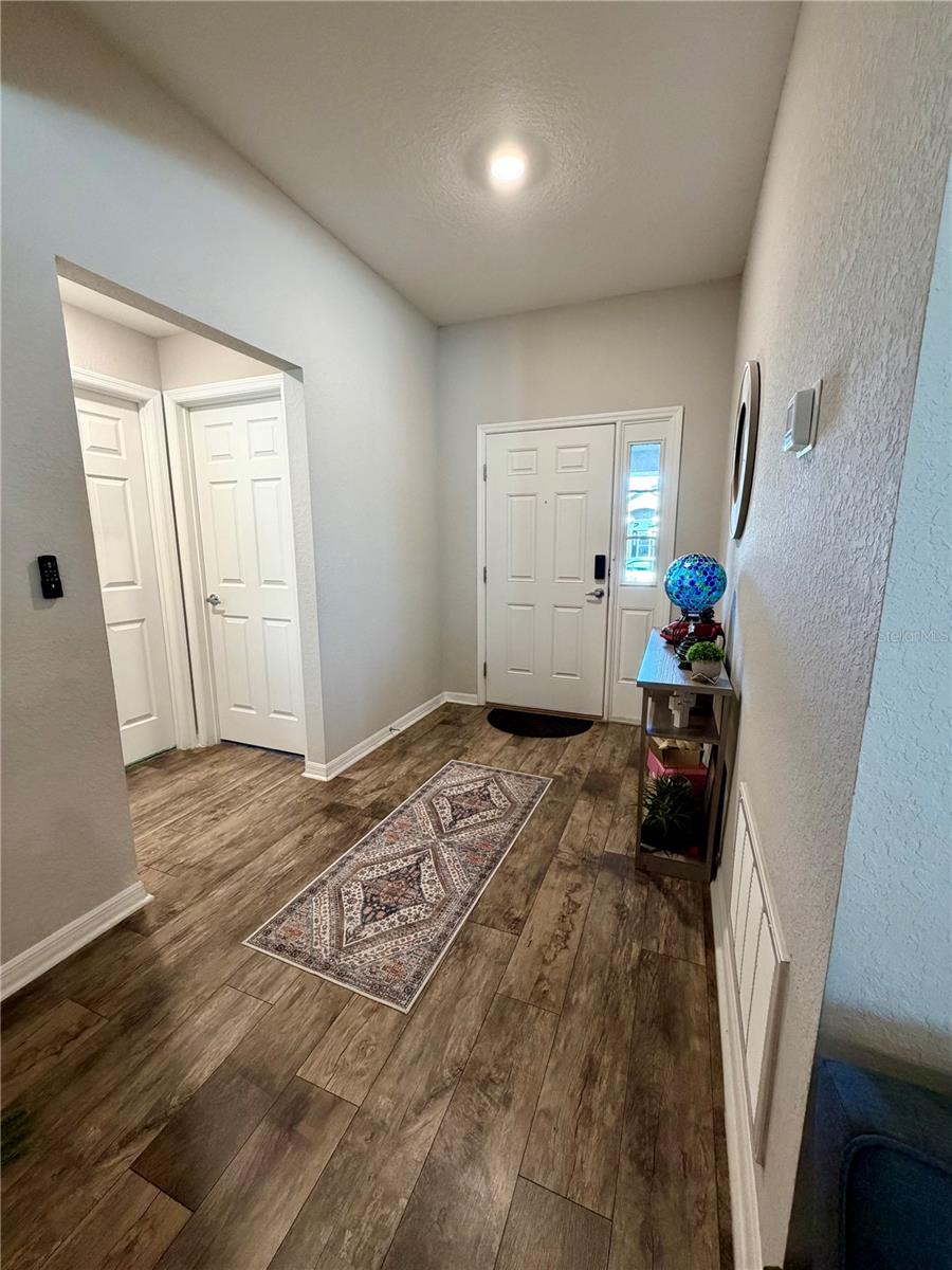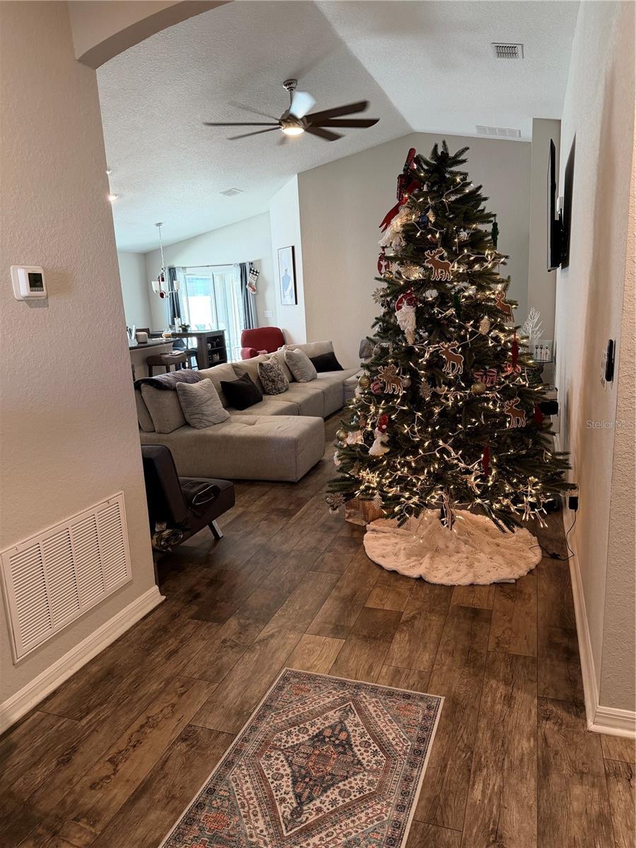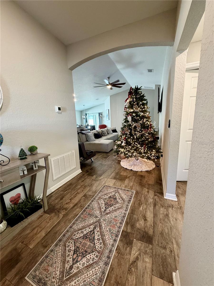Discover the perfect blend of modern comfort and eco-friendly living in this stunning 4-bedroom, 2-bathroom residence. Situated on a prime corner lot within a highly sought-after community, this home makes a striking first impression. As you step inside, you are greeted by an expansive open-concept floor plan that seamlessly connects the living spaces, anchored by a massive chef-inspired kitchen. With its abundant counter space and "huge" layout, the kitchen serves as the true heart of the home, perfect for both daily family life and large-scale entertaining. The interior transitions effortlessly to the outdoors, where you’ll find a private oasis in the fully fenced backyard. Whether you’re hosting a summer barbecue or enjoying a quiet morning coffee, the covered lanai—complete with a ceiling fan—provides a comfortable, shaded retreat year-round. Beyond the aesthetics, this home offers incredible financial value: the solar panels will be paid off in full by the seller prior to closing, allowing the new owners to enjoy the immediate benefit of massive energy savings. This is a rare opportunity to own a move-in-ready, energy-efficient home in a beautiful neighborhood setting.