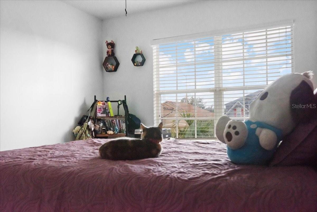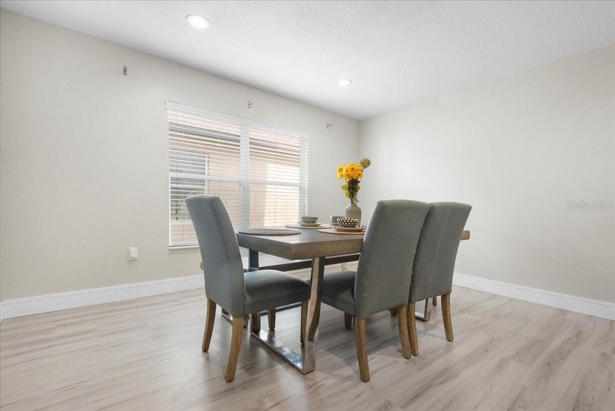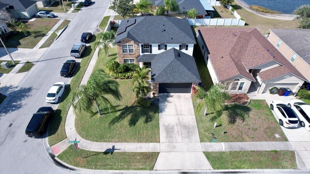 Welcome to this beautifully updated corner lot pool home just steps from Royal St. Cloud Golf Links. As you step inside, you are greeted by a bright foyer with the laundry room conveniently located to your right. On your left, you will find a formal dining room that is perfect for gathering with family and friends. Walk straight ahead down the hallway into the open kitchen and living area, where natural light fills the space. The kitchen is truly a standout feature of this home, offering an abundance of beautiful white cabinets that provide ample storage for all your cooking essentials. The large island offers plenty of countertop space for meal prep, casual dining, or entertaining guests. A sleek range sits at the center of the island and is paired with a modern overhead range hood that adds both style and functionality. You will also appreciate the built in double oven and convenient wine cooler, perfect for keeping your favorite bottles chilled and ready for any occasion. Granite countertops and a tasteful backsplash complete this bright and inviting space that flows effortlessly into the living and dining areas. Just off the living room is a cozy den that is ideal for a home office, study, or playroom, whichever suits your lifestyle best. Stylish grey vinyl flooring installed in 2024 enhances the main living spaces and gives the home a fresh, modern feel. Heading upstairs, you will find a spacious master bedroom offering a relaxing retreat with a large walk in closet. The master bathroom features both a walk in shower and a separate soaking tub, creating a perfect place to unwind. Two additional bedrooms and a versatile bonus room with a private door complete the upper level. The bonus room can be used as a guest room, office, or additional living space. Step outside to the fenced backyard where you can enjoy privacy and peace of mind. The screened in pool area is complemented by a generously covered back porch that provides shade and a comfortable gathering space for family and friends. Whether you are taking a dip in the pool or relaxing on the porch, this outdoor area offers a wonderful balance of enjoyment and easy maintenance. Recent upgrades include a new air conditioning system in 2024, a roof replaced in 2022 prior to the installation of solar panels, a new water heater in 2022, a pool pump replacement in 2022, and a water softener installed in 2019. The solar panels were added after the roof replacement to increase energy efficiency and help reduce monthly electricity costs, making this home both eco friendly and budget friendly. Located close to schools, shopping, dining, and major roadways, this home offers the perfect blend of comfort and convenience. Do not miss your chance to own this move in ready gem. Schedule your showing today and start imagining the wonderful memories you will create here.