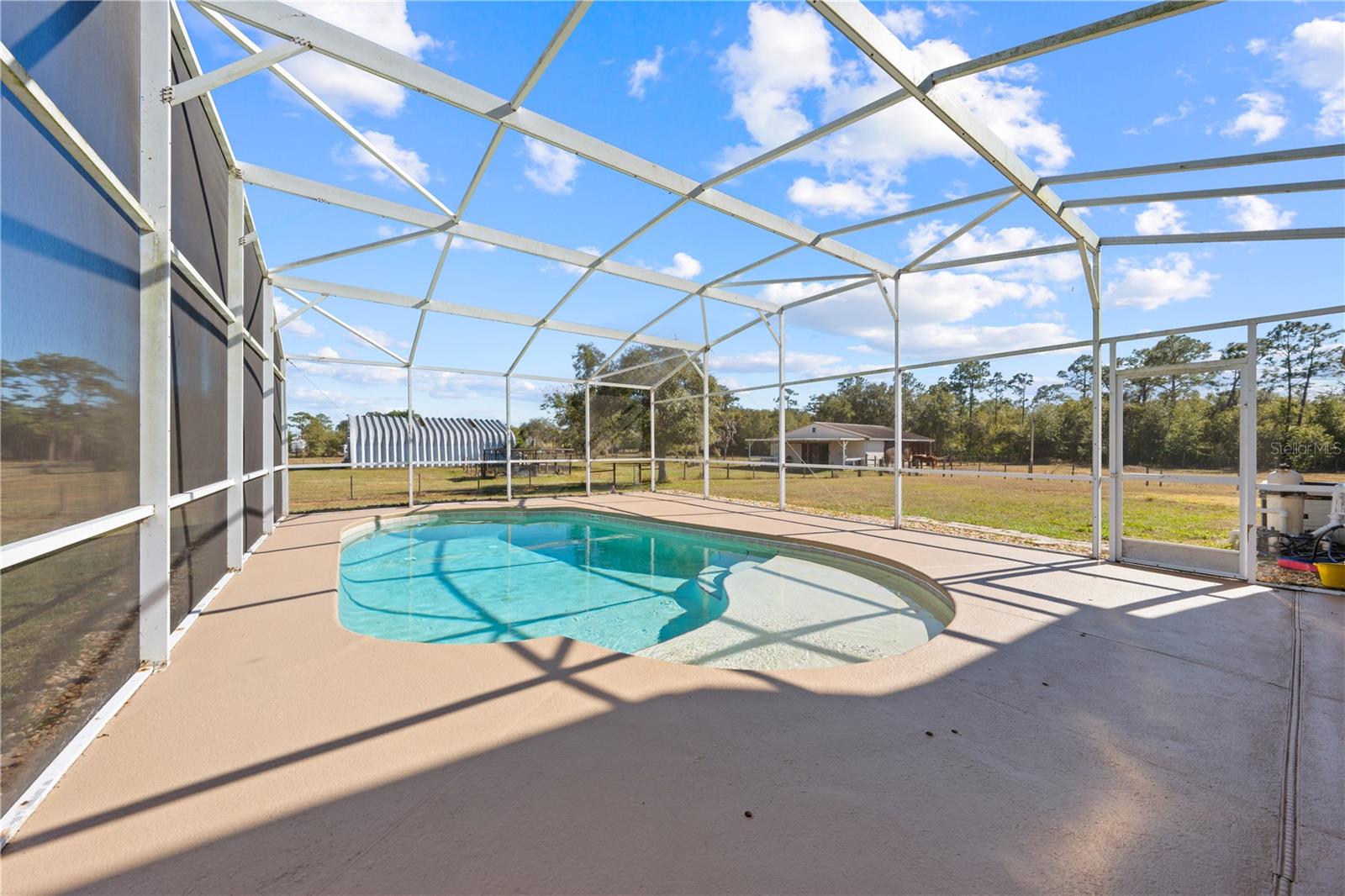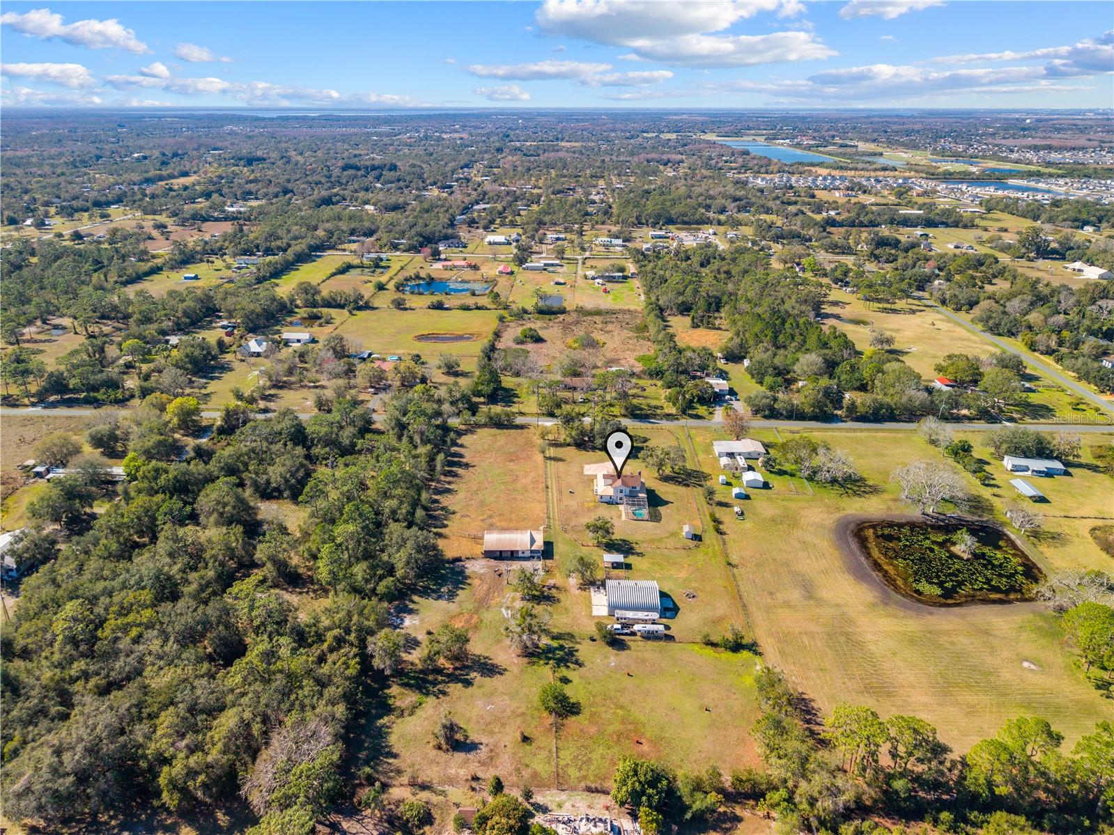 Welcome to your private slice of country living with all the conveniences of town! This stunning 4-bedroom 2.5-bath pool home sits on 4.8 of beautifully fenced and cross-fenced acres in the desirable St. Cloud Manor neighborhood. Offering three separate pastures, a center aisle 6 stall barn with electric, water, and tack/feed room, plus an impressive 50x50 shop complete with water, electric, and 30 & 50 amp service perfect for your RV. The home welcomes you with a charming wrap around front porch that flows into the screened in pool area ideal for relaxing or entertaining. New roof installed last year giving you peace of mind for years to come. You can even enjoy rocket launches from the backyard! Inside, enjoy soaring ceilings, a cozy wood-burning fireplace and new flooring throughout the home. There is a spacious kitchen with lots of natural lighting that features granite countertops, new stainless steel appliances, and a stunning view of the pool area and backyard. The primary suite is conveniently located downstairs and boasts a recently remodeled ensuite bath with dual sinks, walk-in shower, jacuzzi soaking tub, and dual closets. With NO HOA and close proximity to shopping, restaurants, schools, and everything growing St. Cloud has to offer this property delivers the perfect blend of space, function, and lifestyle. Bring your animals (big and small), your toys, and your dreams. Buyer and/or buyers agent responsible for verifying any/all information.