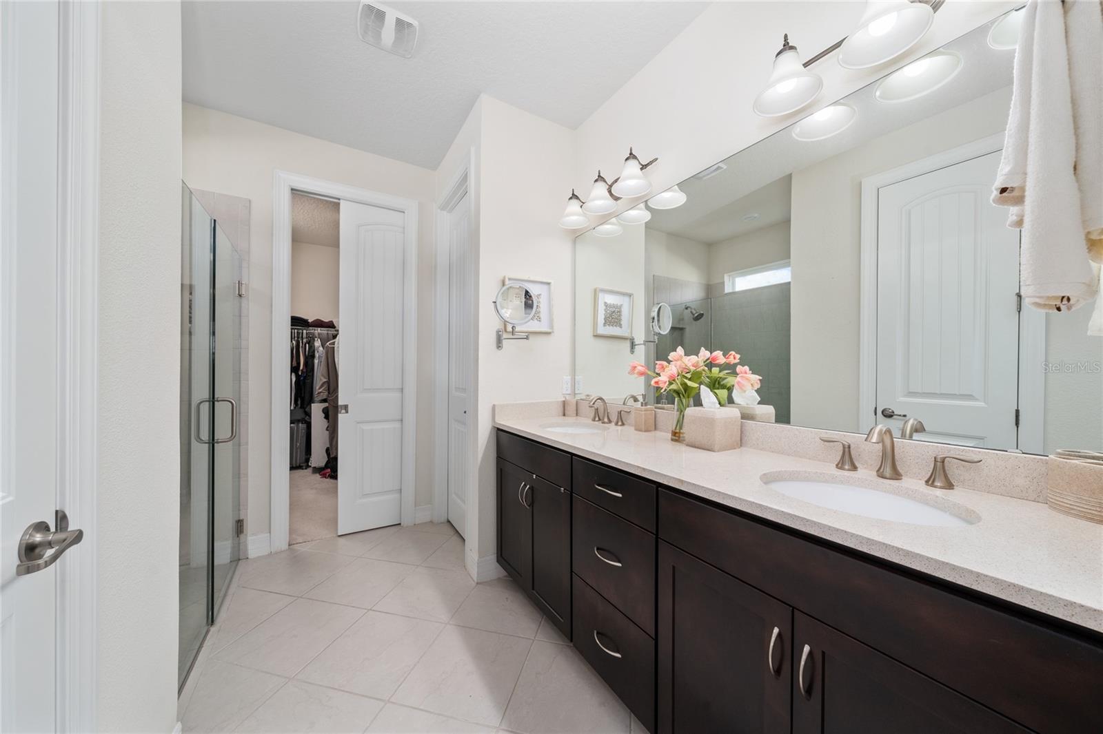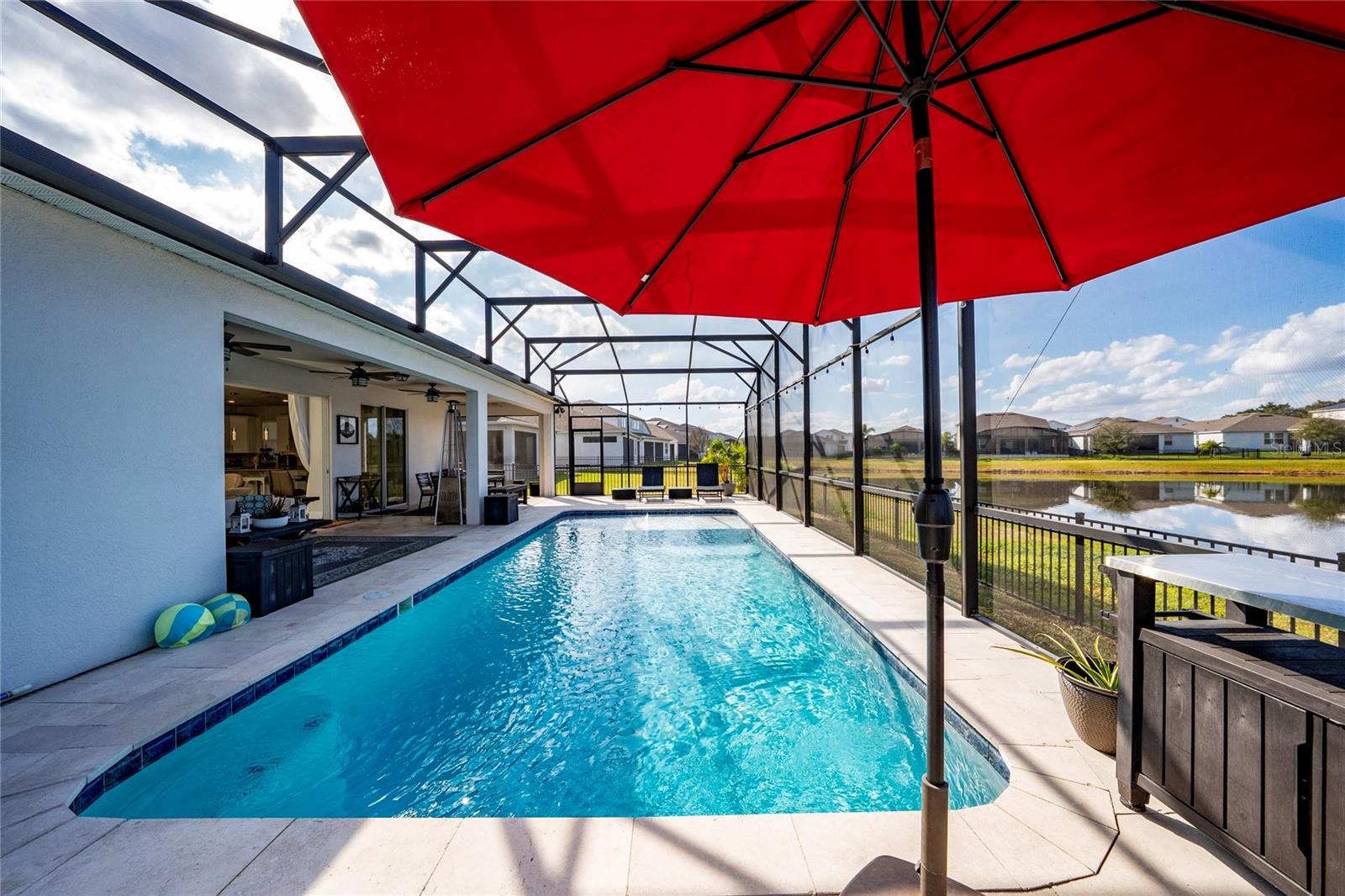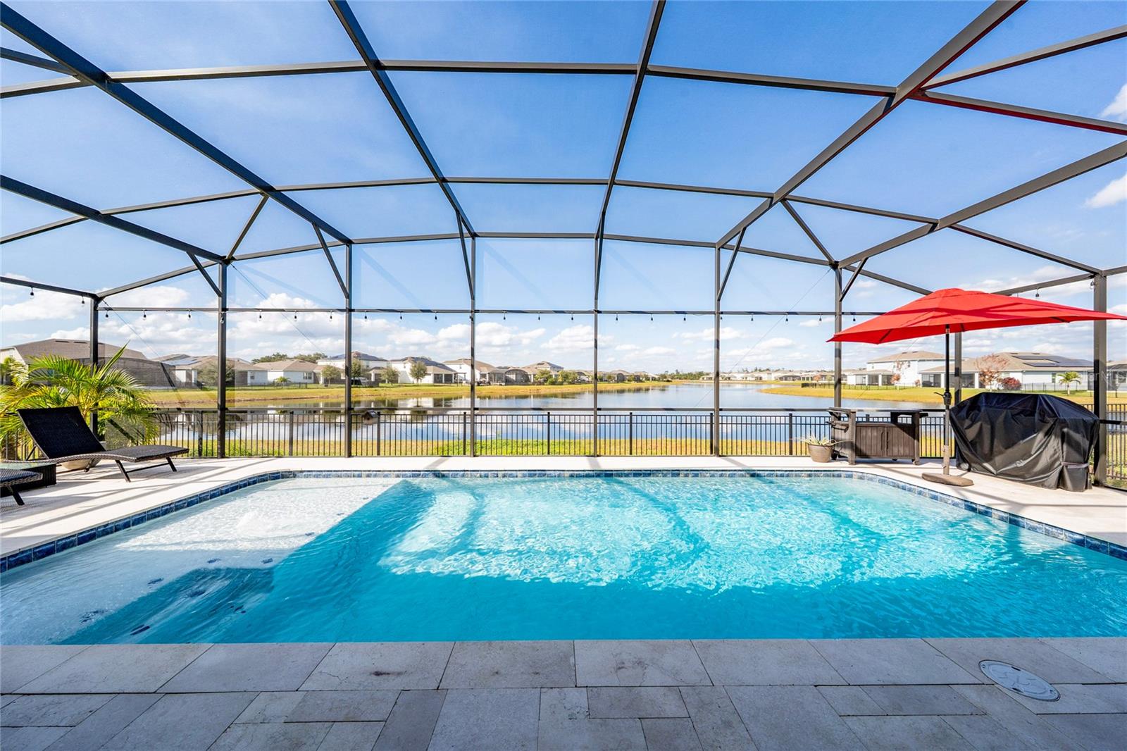 Welcome home to this spacious single-family residence with 9-foot ceilings throughout, located in the highly desirable Live Oak Lake community of Saint Cloud, Florida. This thoughtfully designed home offers an open-concept layout filled with natural light, recessed lighting, and tile flooring in the main living areas, creating a bright and inviting atmosphere ideal for both everyday living and entertaining. In addition to the oversized primary suite, the home also features a secondary bedroom with its own private en-suite bathroom, making it ideal for guests, multigenerational living, or added privacy. The primary suite includes a walk-in closet and a private en-suite bathroom complete with dual sinks and a walk-in glass shower. A flexible bonus space offers versatility for a home office, media room, bedroom (5) or play area. The expansive living and dining areas flow seamlessly into the kitchen and extend outdoors through a large three-panel sliding glass door, highlighting tranquil water views and enhancing the home’s indoor–outdoor living experience. Step outside to your private backyard oasis featuring a heated in-ground pool, screened enclosure, and travertine pool deck. The extended covered lanai with ceiling fans is perfect for relaxing or entertaining year-round, while the gated backyard offers privacy and peaceful water views. Residents of Live Oak Lake enjoy access to resort-style amenities, including a community pool, clubhouse, fitness center, and playground, along with beautifully maintained sidewalks and green spaces throughout the neighborhood. Ideally located approximately 15 min from Lake Nona, 20 min from Medical City, 35 min from Downtown Orlando, and 25 min from Orlando International Airport, 40 min from Melbourne Beach. This home offers an exceptional balance of comfort, convenience, and lifestyle in one of Saint Cloud’s most sought-after communities.