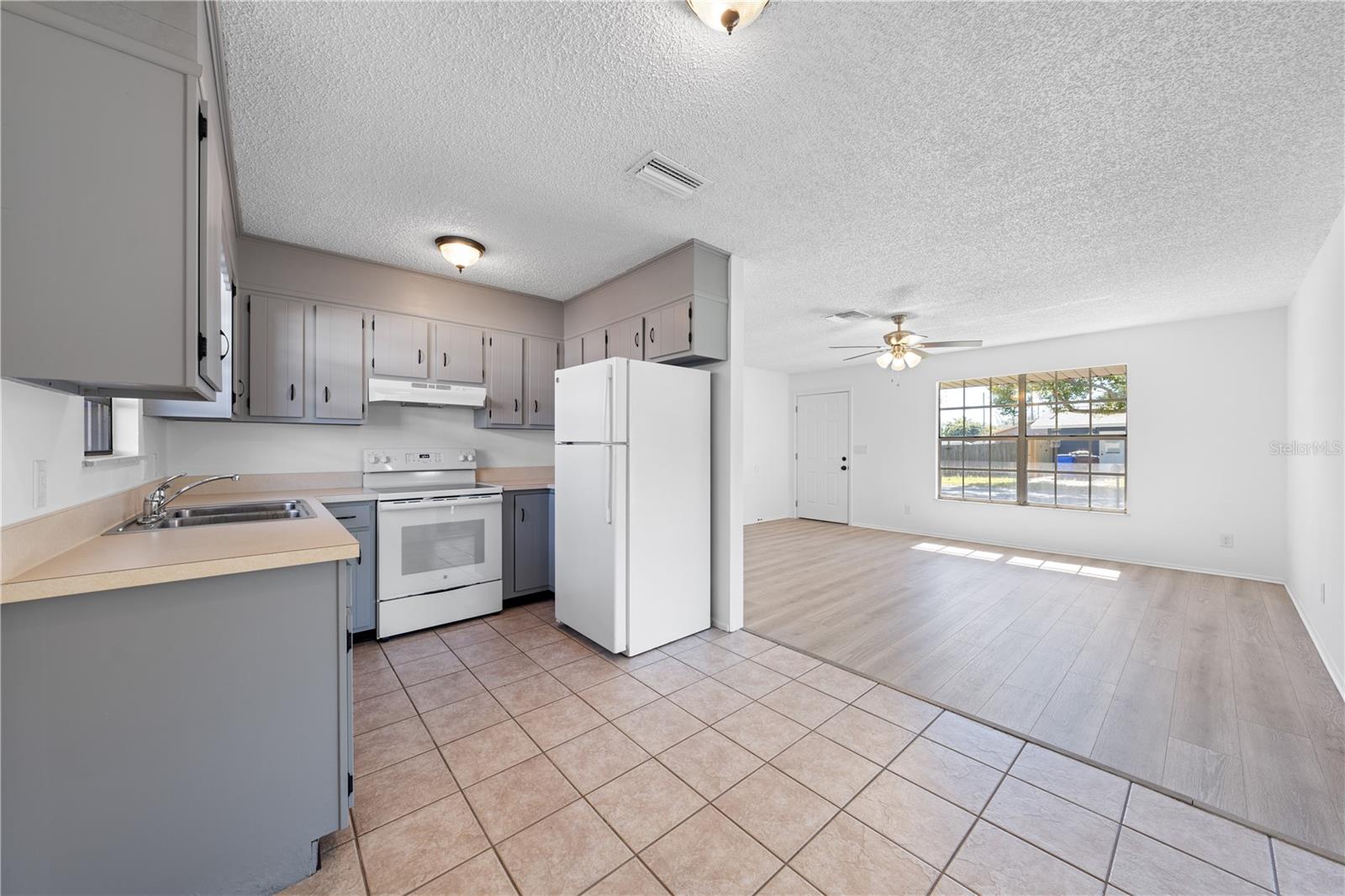 Fantastic home on corner lot in the City of St. Cloud. Just refurbished and ready for new owner. Large corner lot in quiet St. Cloud neighborhood. No HOA, No CDD! All tile and new vinyl plank flooring, wooden kitchen cabinets. Other features include; refrigerator, range/oven, ceiling fans, carport, laundry area inside carport shed. New roof; 2025, AC new; 2023. This home is priced to sell and will not last!