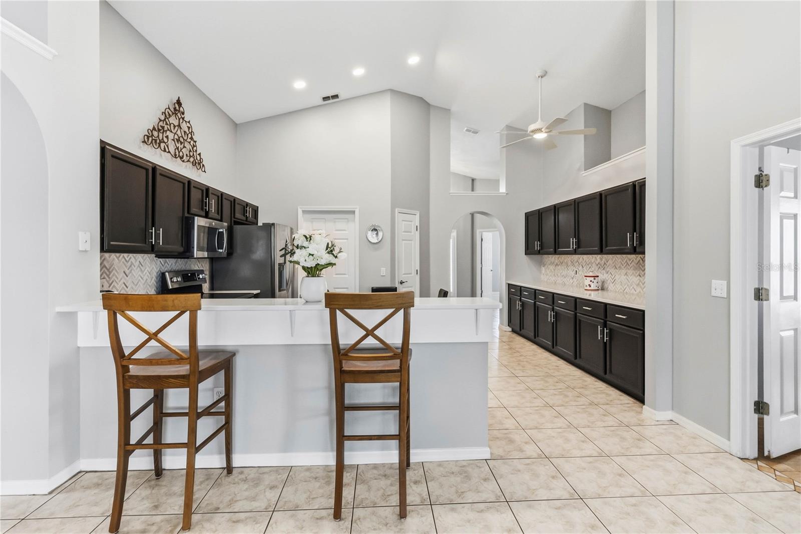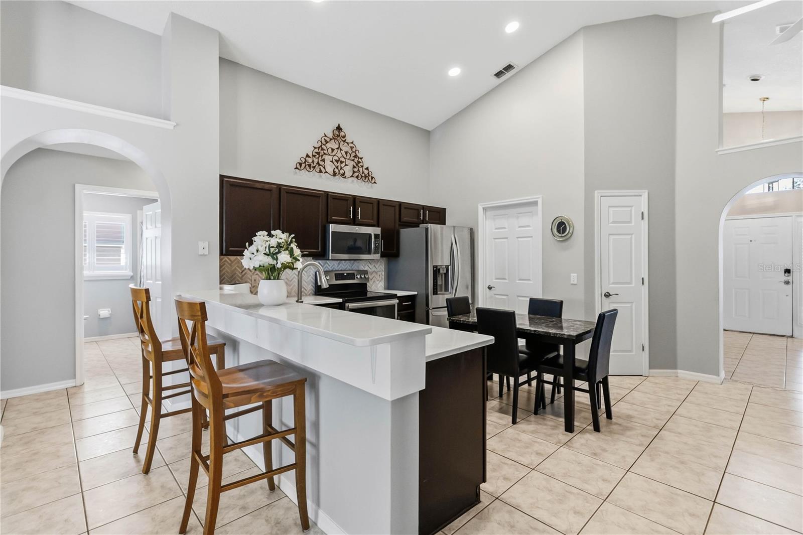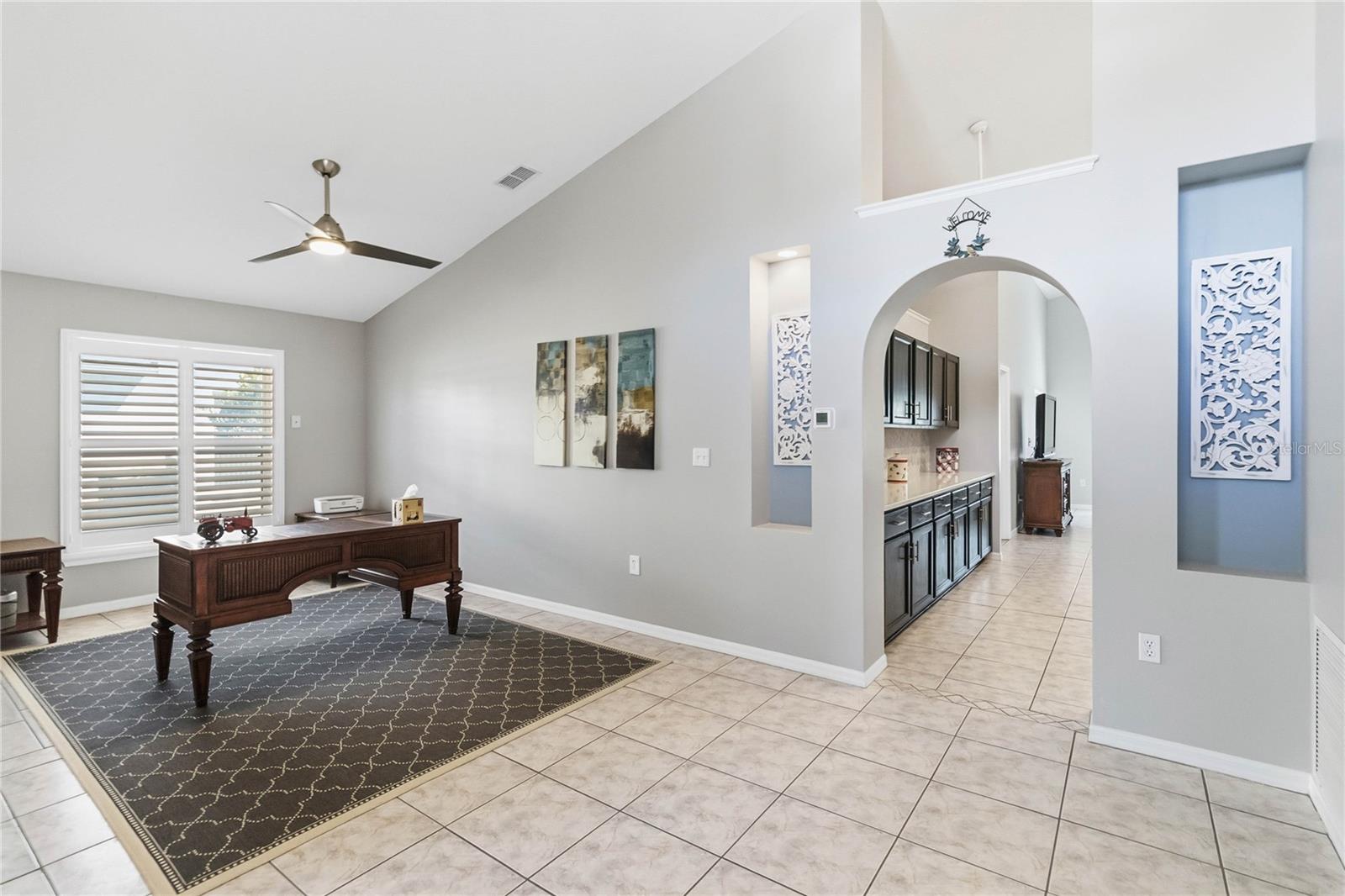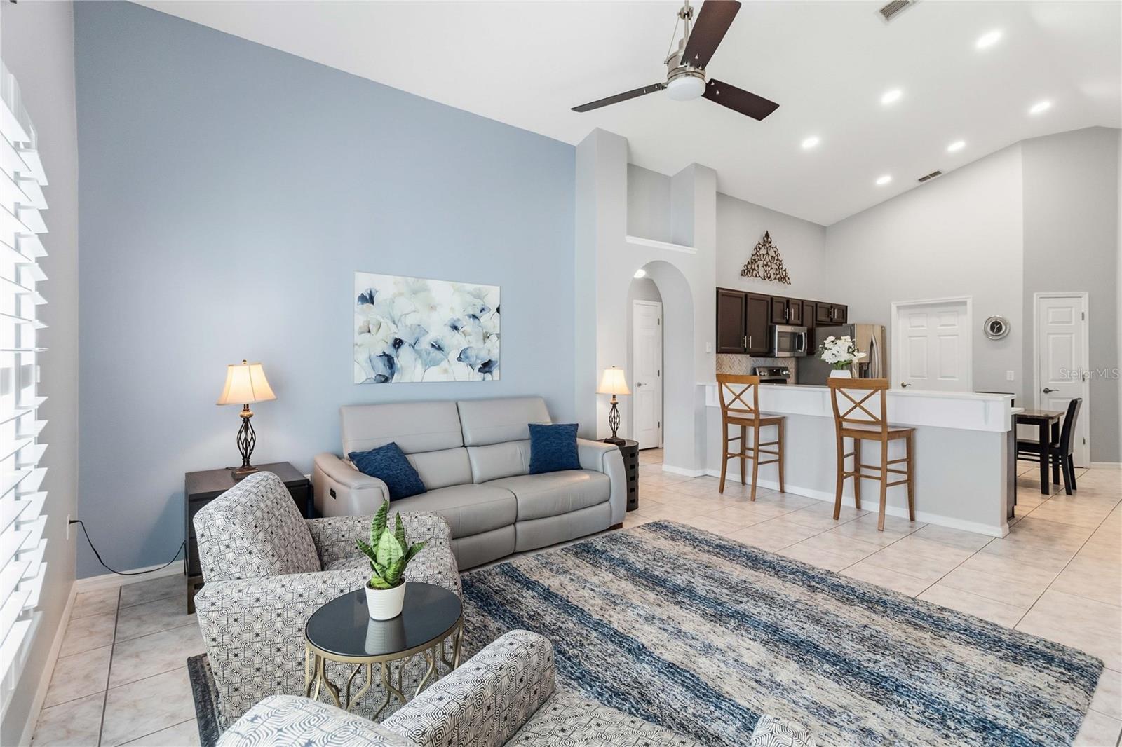 One or more photo(s) has been virtually staged. Beautiful professionally painted, great curb appeal & very spacious 4 bed 2 bath waterfront home that has been handicap accessible. Walking distance to the greenspace and common area boat ramp. Near Kissimmee - Saint Cloud connector trail. 1.47 mile 10-foot-wide paved trail links Neptune Road to the Fortune Lakeshore trail. Part of 200-mile Master trail plan. Near the well-known fishing and boating lake TOHO in the charming historical town of St Cloud. Step into the foyer with the large Palladian Window. Whole house has plantation shutters. Open and spacious floor plan. Kitchen features nice Silestone quartz countertops with custom vein look that has a transferable guarantee, lots of cabinets, pantry and Vaulted ceiling. Split floor plan. Primary bedroom features large windows for great natural lighting, walk-in closet. Primary bathroom features 2 separate vanities, walk-in shower and Garden tub. There is an office room or Den as well as family room large open 4 season room. Walk into your fenced back yard to enjoy the relaxing water view from your patio. Don't wait, this well-kept home is near all attractions and medical city, shopping etc... won't last!