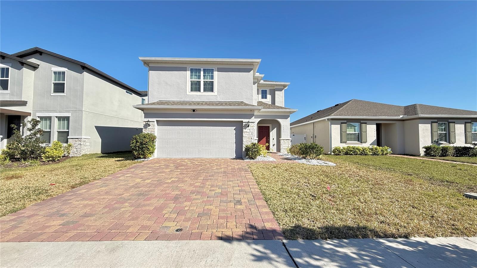 Discover this modern 4-bedroom, 3-bath home in the highly desired Wiregrass community, just minutes from Lake Nona, Medical City, major highways, and Orlando’s top shopping and dining. Enjoy a bright open-concept layout with a spacious great room, modern kitchen with stainless steel appliances, large island, and dining area perfect for entertaining. The split floor plan offers a private primary suite with a walk-in closet and ensuite bath, plus three additional bedrooms ideal for family, guests, or a home office. Relax on the covered patio and enjoy the fully usable backyard. This move-in ready home, built in 2022, combines energy-efficient construction, contemporary finishes, and a prime location. No CDD and low HOA include access to community amenities. Property is being sold AS-IS. Buyer and Buyer’s agent to verify all measurements, zoning, and permit history.