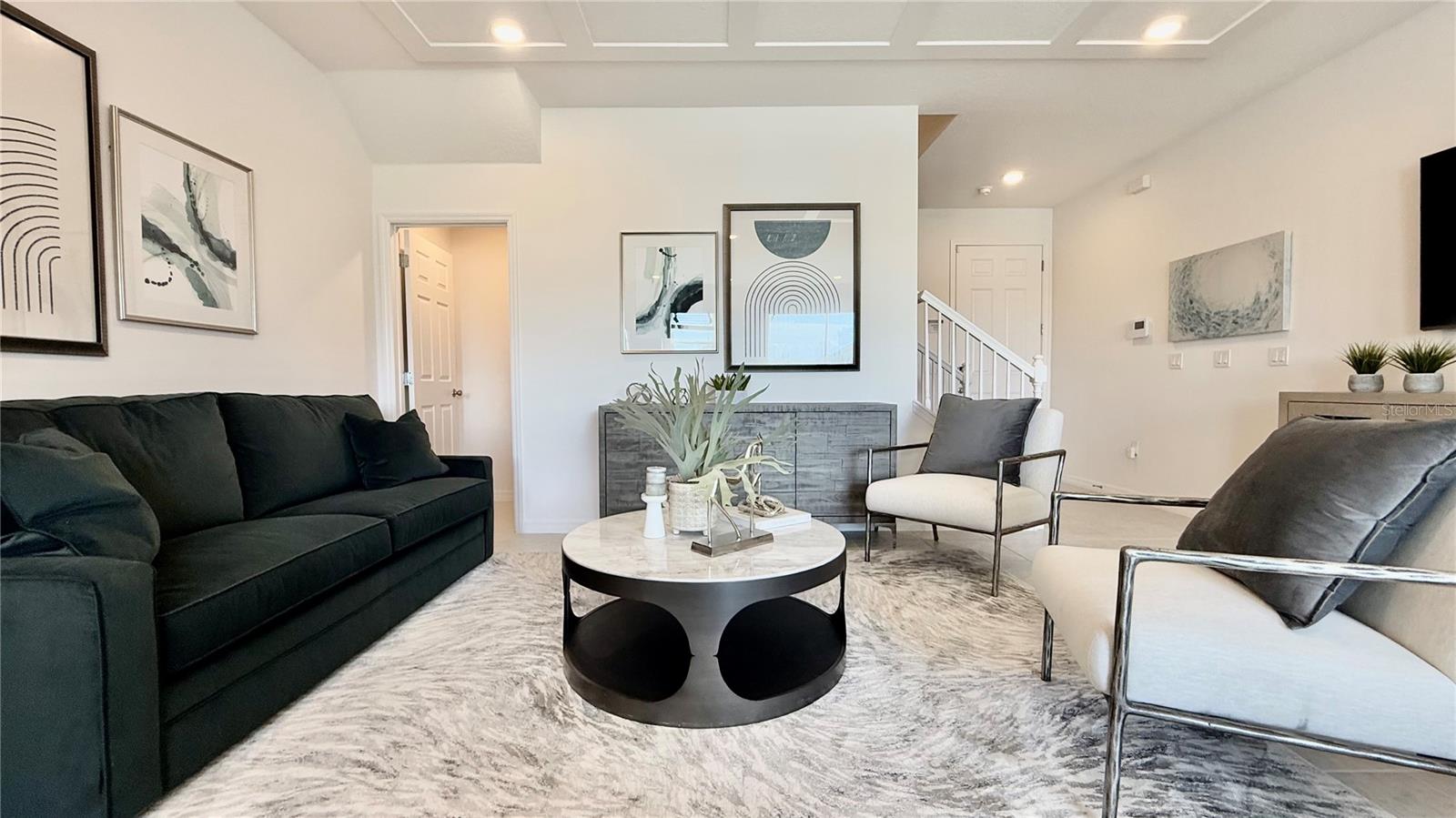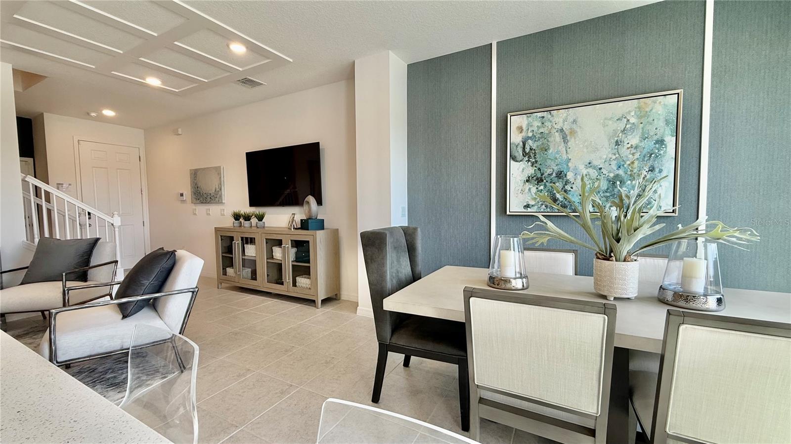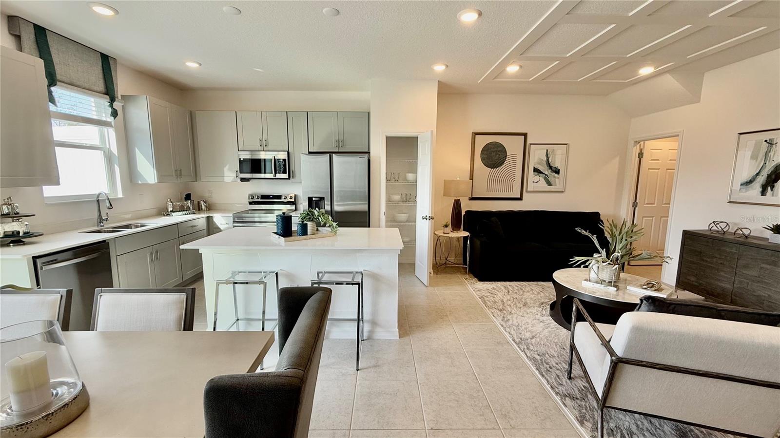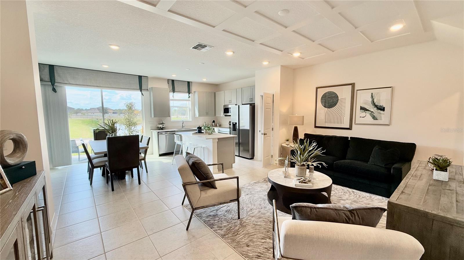 Stunning home for sale in St. Cloud, just 10 minutes from Lake Nona and conveniently located near Orlando International Airport. This beautifully upgraded former model home features premium designer finishes throughout, including a coffered ceiling in the living room, wooden staircase, and contemporary wallpaper accents in select areas. Designed with an open-concept floor plan, the home offers modern living with energy-efficient features, spacious interiors, and a two-car garage. Enjoy tranquil pond views and a layout that blends style and functionality. Prime location just 2 minutes from Publix and under 10 minutes from shopping, dining, and major conveniences. Excellent opportunity to own a fully upgraded model home in one of Central Florida’s fastest-growing areas. Equal Opportunity Housing.