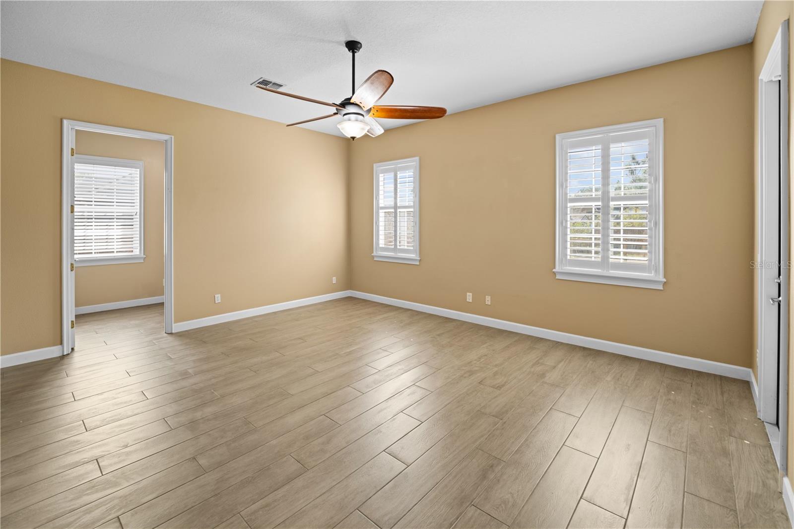 Stunning 4/3 situated on over 1/2 acre corner lot in the lakefront community of Northshore. All upgrades have been done for you, move in ready condition. A kitchen set up for the one's who love to cook with a kitchen island, solid wood 42" cabinets, quartz countertops, tiled back splash, double ovens, and with a drop in cook top. Breakfast nook open to the kitchen with a double closet pantry. Separate dining room is a very open concept overlooking the large family room. Pool planned with french doors leading from family room and back bedrooms to a large screened back porch. Master bath features roman tub, large open shower stall with built in seat and shelving, his and her vanities and his and her closets. Separate 7x15 room off master bedroom would be ideal for your home office, shelving has already been installed for you. A split plan with 3 additional bedrooms and 2 baths, a unique set up for a mother-in-law suite or a separate guest quarters with private setting. All flooring has been replaced with porcelain plank tiles through out, newer light fixtures and faucets through the home, cabinets have been installed in the large inside utility room, as well as a the roof replaced as late as 2024. All windows have Plantation shutters and French doors have built in blinds. Home has dual AC units, one has been replaced, along with hot water heater and septic was pumped is 2026. Side entry 3 car garage with openers, ideal for your golf cart or other play toys. Home has a sprinkler system, and water purifying system, recently replaced in 2022. Come see today, lots of upgrades through out. Area for RV parking with new 30 amp service added. Subdivision is located on Lake Lizzie part of the chain of 6 lakes, private boat ramp, walking trails, docks for fishing, minutes from town yet very secluded. Aprox 30 min from VA hospital, Orlando International Airport, Lake Nona restaurants and shopping and University of Florida medical facility. Min from shopping and restaurants and St Cloud hospital. A very family oriented environment.