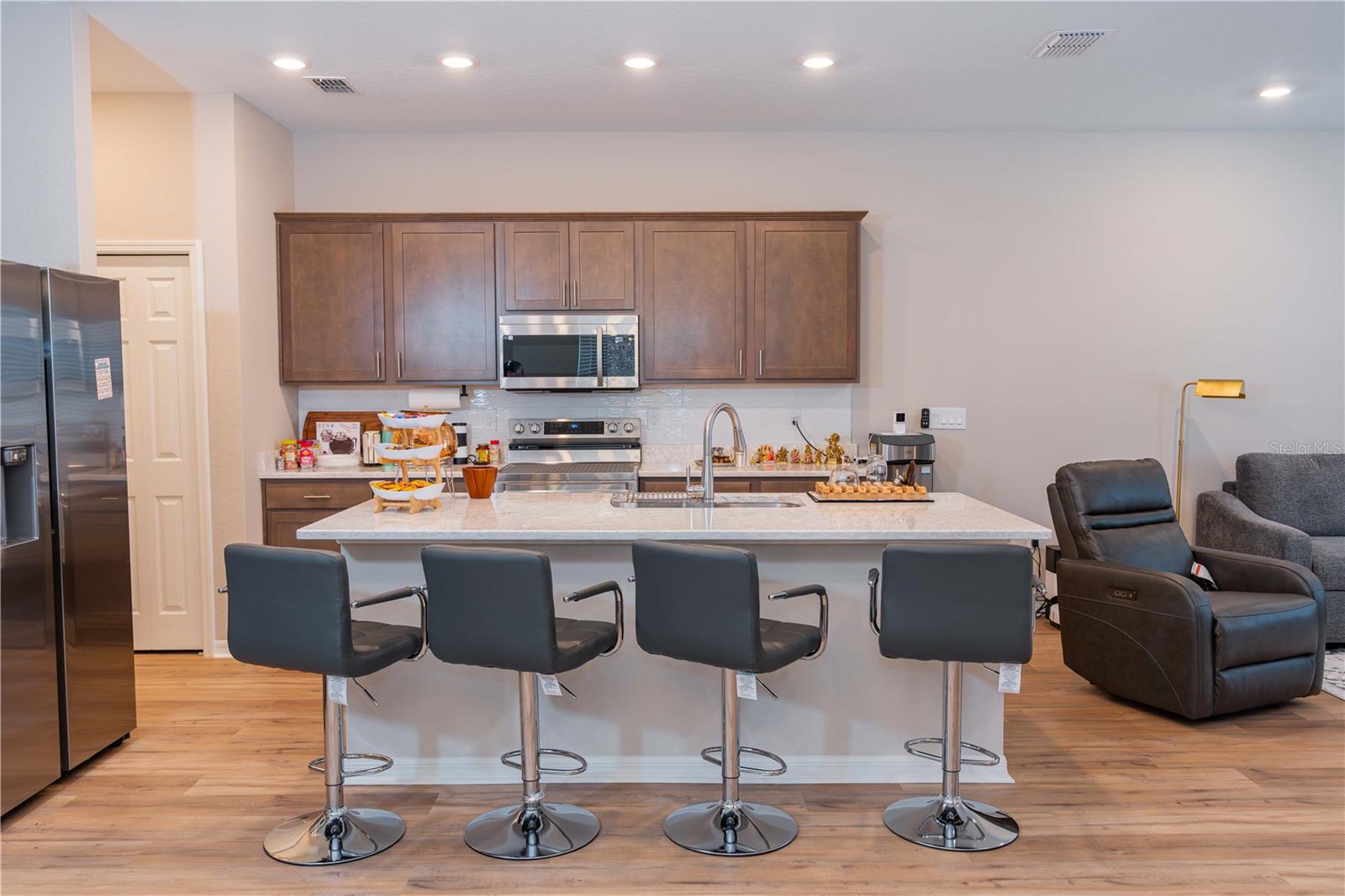 **Welcome Home** to 387 Crossings Ave, a stunning, move-in ready townhome built in 2025! This beautiful Mariposa model by Highland Homes offers the perfect blend of modern elegance and low-maintenance living, boasting 1,923 sq. ft. of brilliantly designed space. Step inside the bright and airy open floor plan, where gorgeous wood-look flooring flows seamlessly through the main living areas. The heart of the home is the chef-inspired kitchen, featuring rich wood-tone cabinetry, sleek stainless steel appliances, and stunning quartz countertops. The massive center island provides plenty of prep space and bar seating, making it the ultimate spot for entertaining guests while overlooking the spacious living room! Head upstairs to discover a fantastic bonus loft area—perfect for a home office, media room, or play area! The second floor also features 3 spacious bedrooms and 2.5 luxurious baths, all upgraded with matching quartz countertops for a cohesive, high-end feel throughout the home. 2-Car Garage – Convenient rear-loading garage layout keeping your curb appeal pristine. Modern Exterior – Attractive facade with charming stone accents and a welcoming covered front entryway. Premium Finishes – Upgraded quartz counters, modern fixtures, and an abundance of natural light. Get ready to live like you're on vacation every day! This incredible community offers breathtaking amenities just a short stroll from your front door. Spend your weekends at the sparkling resort-style pool featuring a fun splash pad and water slide, relax under the shaded cabanas, or take a peaceful walk by the gorgeous community pond with its scenic fountain. Why wait for new construction when this pristine 2025 build is ready for you right now? Enjoy the best of St. Cloud living in a neighborhood that truly has it all. Call today to schedule your private showing! Seller Willing to contribute $7000 towards buyers closing cost.