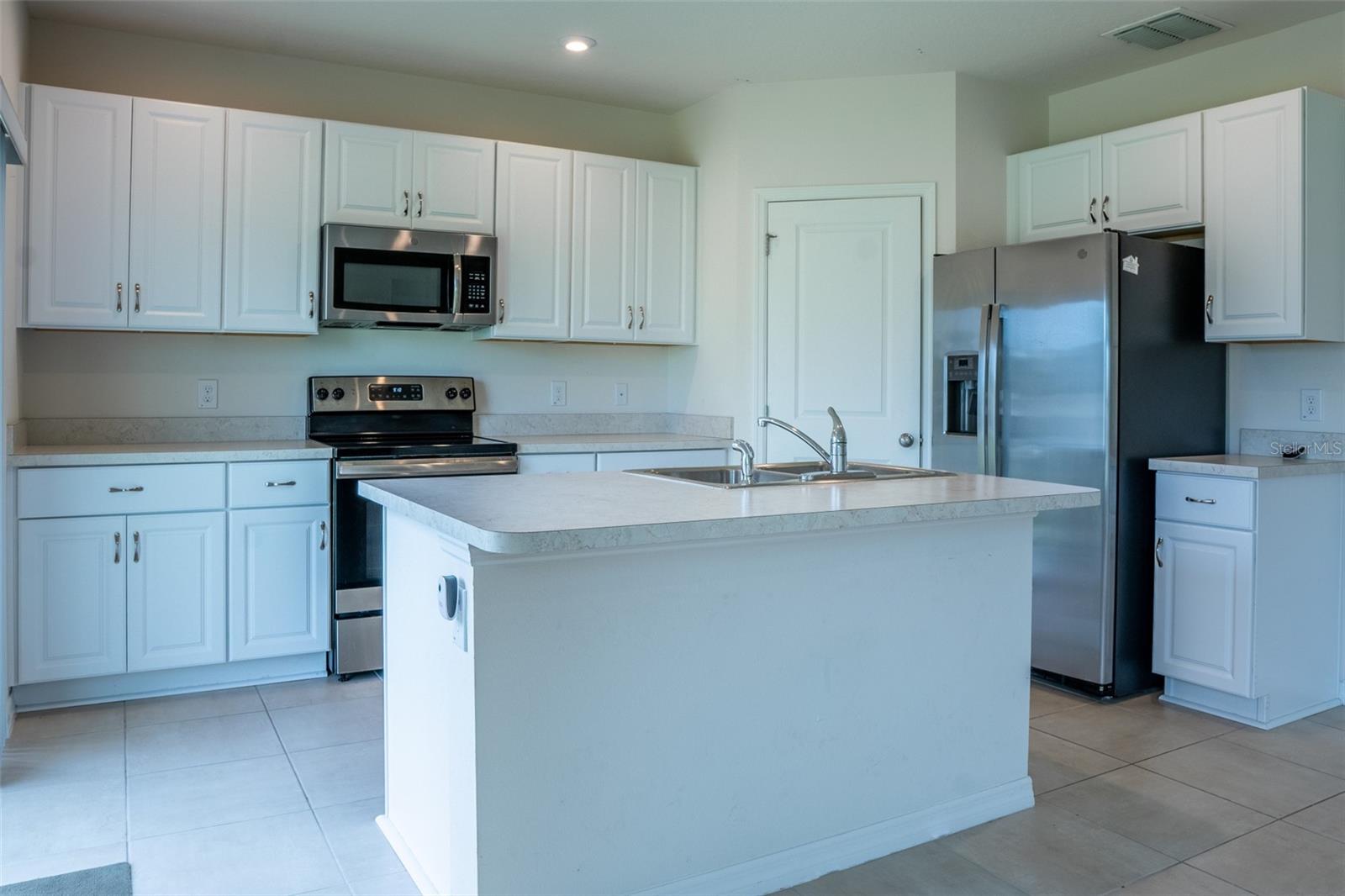 This home is equipped with solar panels, reducing monthly electric costs and providing significant long-term savings. This cost-efficient feature adds tremendous value, making the home an excellent financial investment. This 2020-built home offers modern living with unbeatable savings in a resort-style community featuring a pool, playground, and green spaces. Inside, the open-concept layout boasts a sleek kitchen with stainless steel appliances, a large island, and fresh updates, including brand-new carpet and fresh paint (2025). The primary suite features a private ensuite bath with dual sinks and a walk-in closet, while two additional bedrooms share a second full bath. Included appliances are a stainless steel refrigerator, electric range/oven, built-in microwave, dishwasher, washer, and dryer. The private backyard provides a relaxing space, and the home’s location near the Florida Turnpike allows for easy access to Lake Nona, Orlando International Airport, Walt Disney World, and Legoland. Nearby parks, Kissimmee Lakefront Park, retail, dining, and medical facilities, including Medical City in Lake Nona, offer convenience, while Cocoa Beach is less than an hour away for coastal escapes.