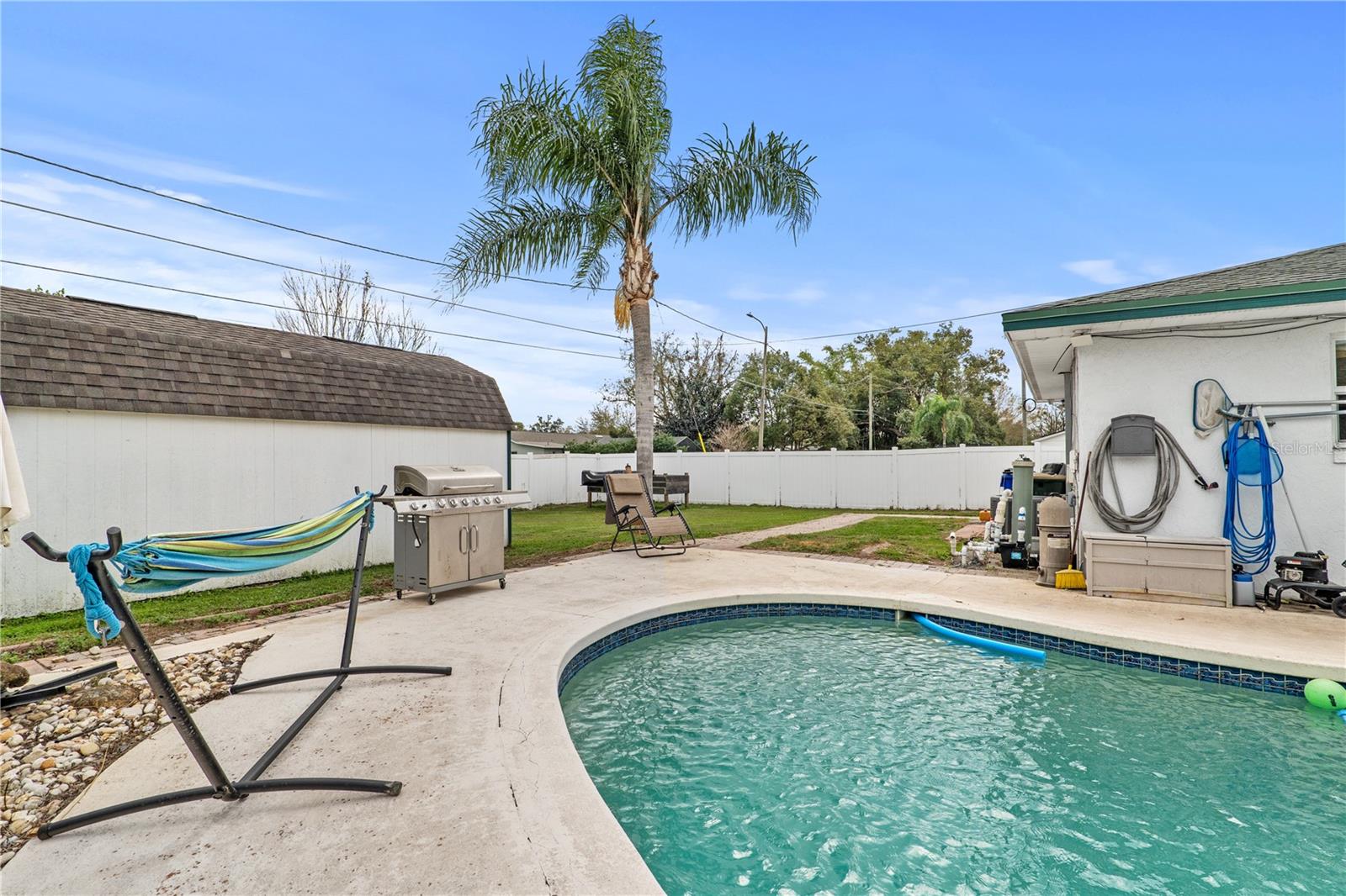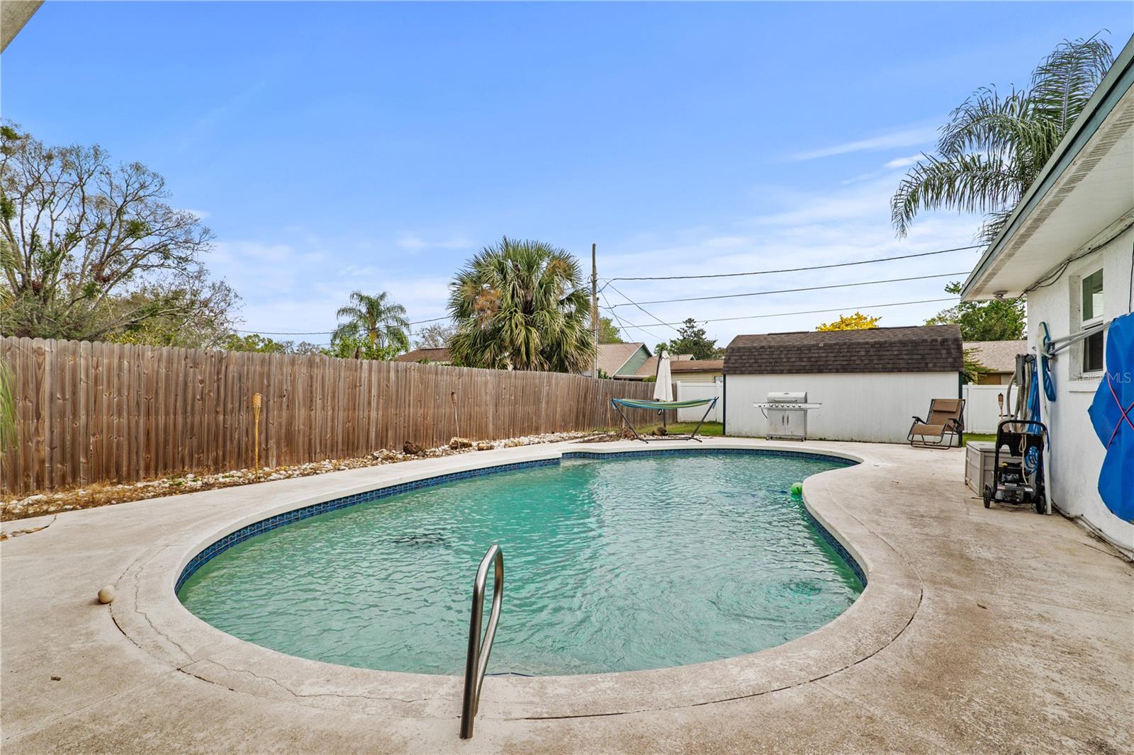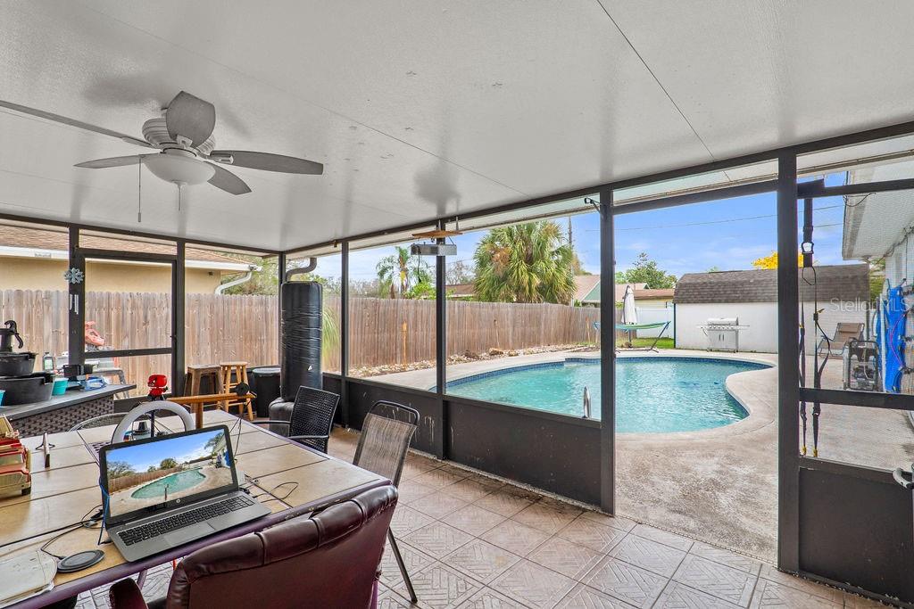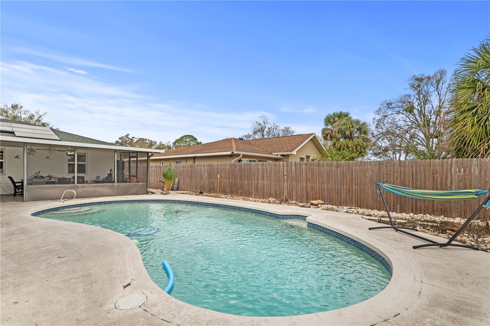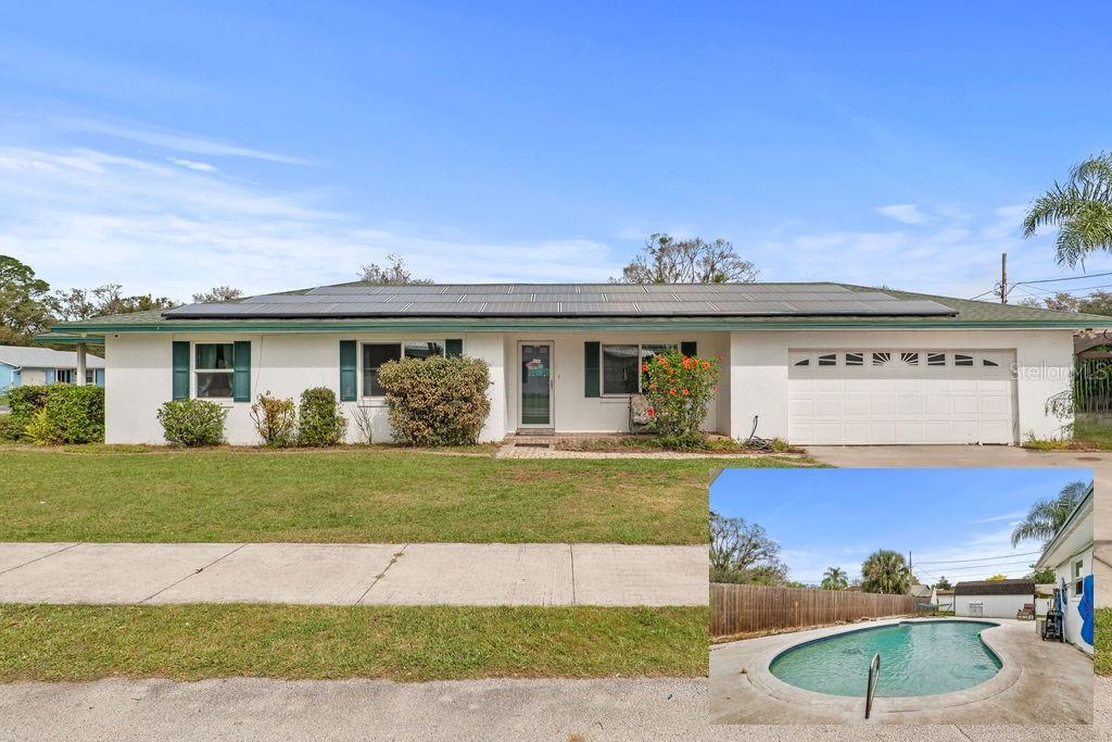 If you’re looking for a move-in-ready home with character, this St. Cloud gem is a rare find. Just five blocks from East Lake Toho, this corner-lot pool home offers a peaceful retreat in a quiet neighborhood. The open-concept kitchen, dining, and great room create a seamless space for gathering with unique touches like a locally sourced cypress wood accent wall and a handcrafted barn door. The kitchen boasts modern white cabinetry and a stunning quartz peninsula with seating for six, while the screened porch overlooks a sparkling pool, fully fenced backyard with French drainage system, and large shed with overhead storage. The guest bathroom is a true retreat, complete with a step-in jetted tub, quartz counters, a bidet, and heated toilet seat. Upgrades include a newer roof & paid-off solar panels (2019), energy-efficient windows & doors (2017), and high-efficiency HVAC & smart water heater (2016). Smart home features like keyless entry, voice-activated lights, a touchless faucet, smart thermostat, and an NVR surveillance system add convenience. A non-conforming fourth bedroom inside the garage with heat & A/C offers endless possibilities. The garage has potential for a primary suite with pool access or an ADU, as the property is zoned for accessory dwellings. ASSUMABLE FHA LOAN AVAILABLE TO QUALIFIED BUYERS!!!