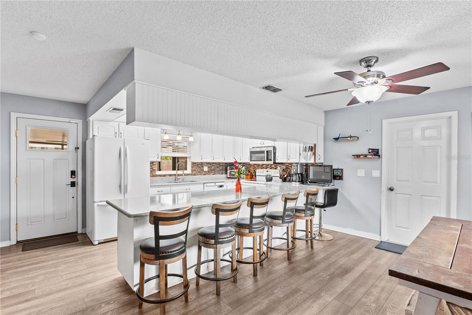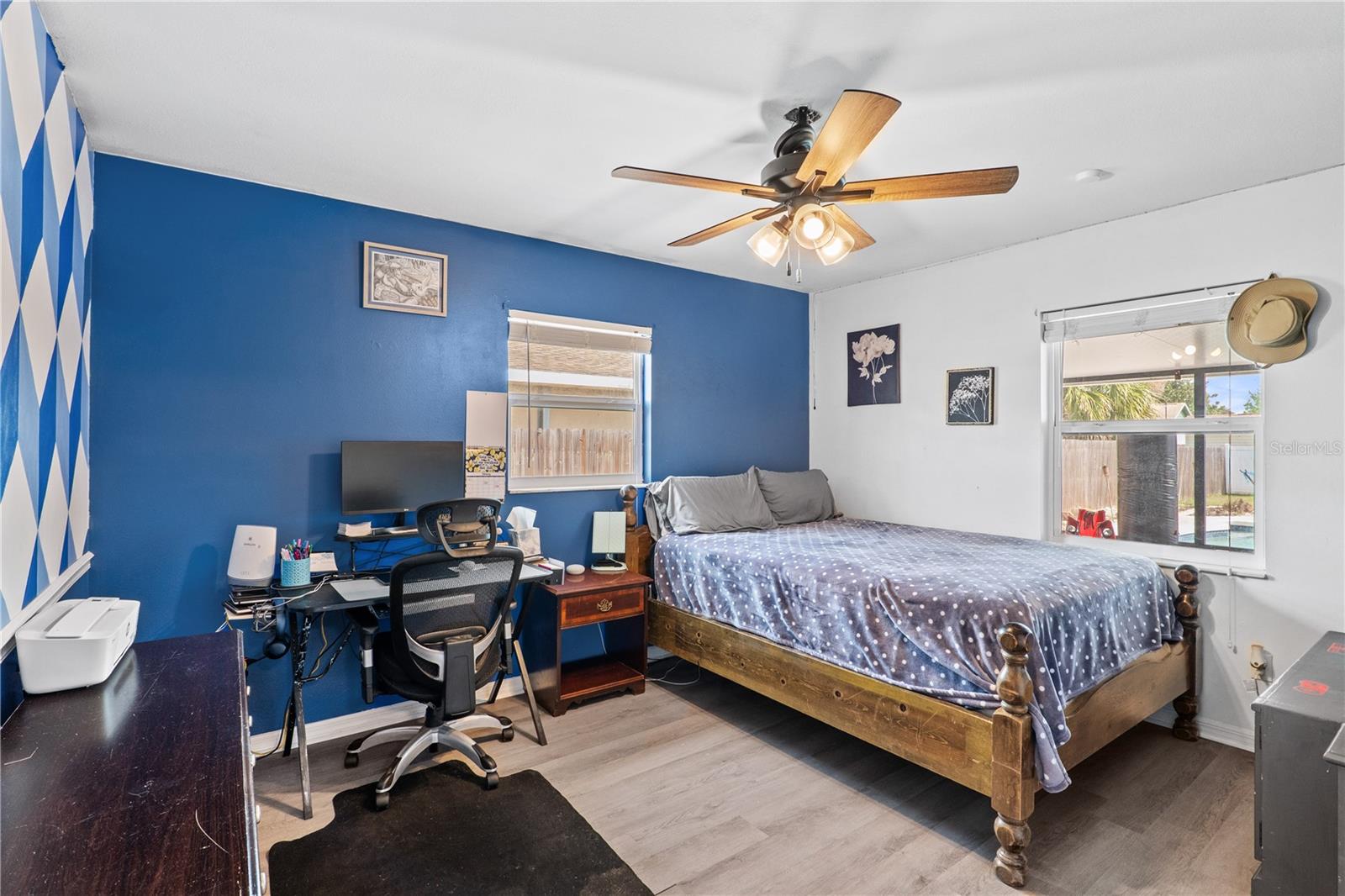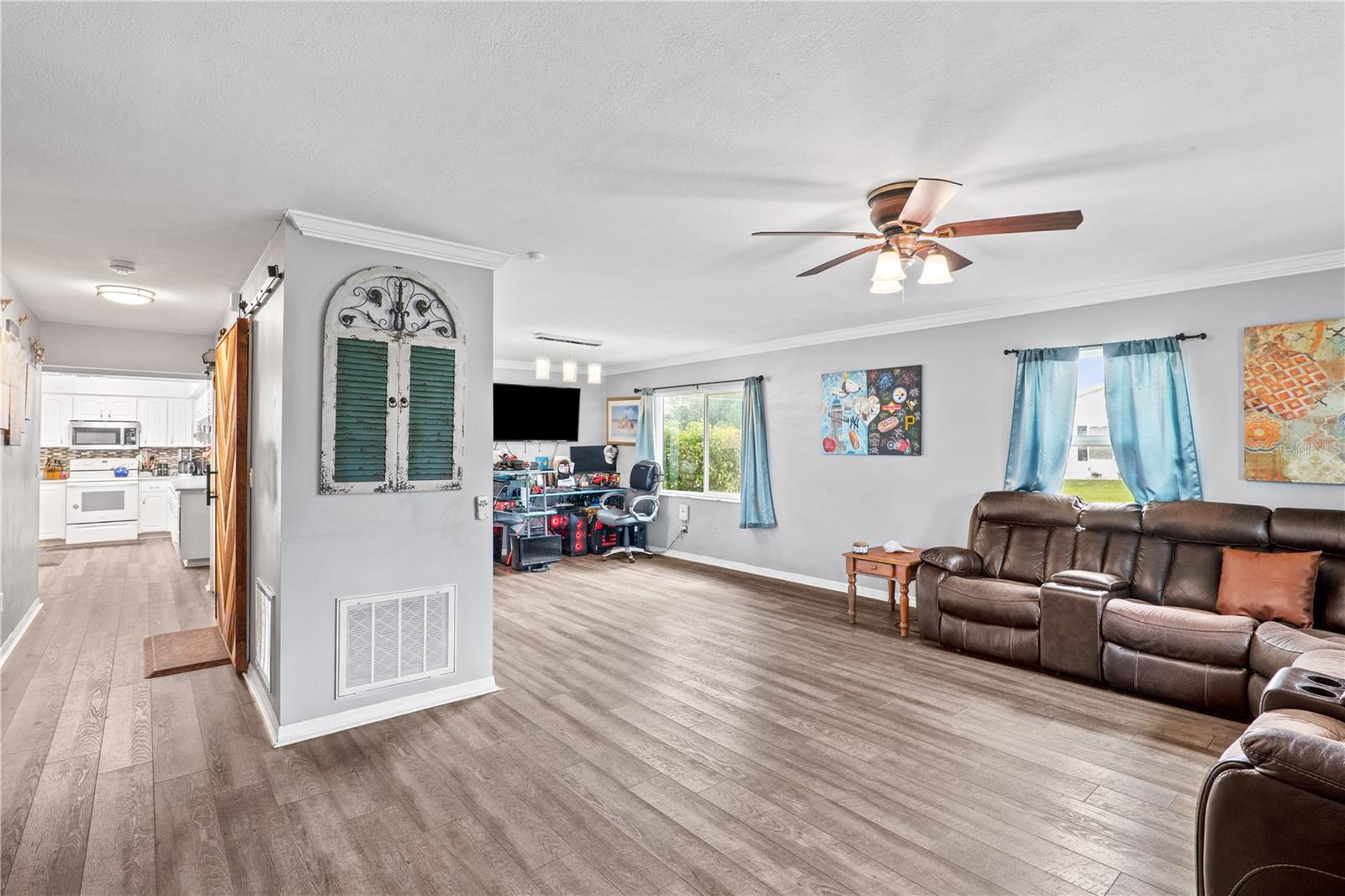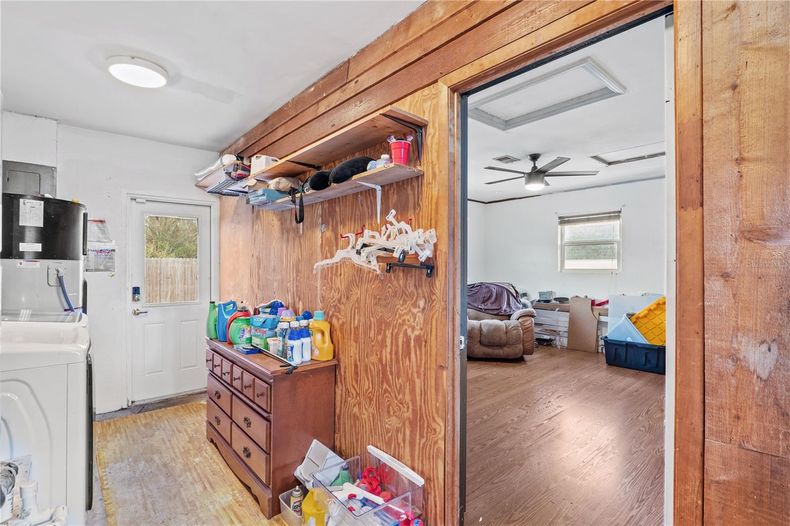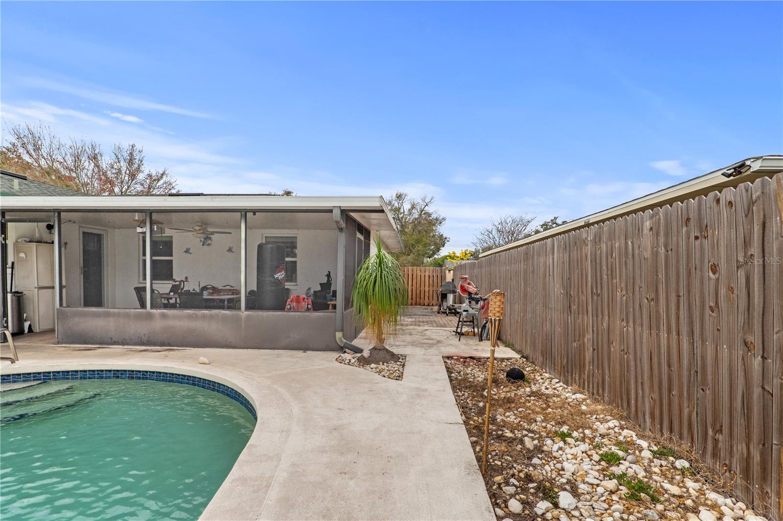 If you’re looking for a move-in-ready home with character, this St. Cloud gem is a rare find. Just five blocks from East Lake Toho, this corner-lot pool home offers a peaceful retreat in a quiet neighborhood. The open-concept kitchen, dining, and great room create a seamless space for gathering with unique touches like a locally sourced cypress wood accent wall and a handcrafted barn door. The kitchen boasts modern white cabinetry and a stunning quartz peninsula with seating for six, while the screened porch overlooks a sparkling pool, fully fenced backyard with French drainage system, and large shed with overhead storage. The guest bathroom is a true retreat, complete with a step-in jetted tub, quartz counters, a bidet, and heated toilet seat. Upgrades include a newer roof & paid-off solar panels (2019), energy-efficient windows & doors (2017), and high-efficiency HVAC & smart water heater (2016). Smart home features like keyless entry, voice-activated lights, a touchless faucet, smart thermostat, and an NVR surveillance system add convenience. A non-conforming fourth bedroom inside the garage with heat & A/C offers endless possibilities. The garage has potential for a primary suite with pool access or an ADU, as the property is zoned for accessory dwellings. ASSUMABLE FHA LOAN AVAILABLE TO QUALIFIED BUYERS!!!