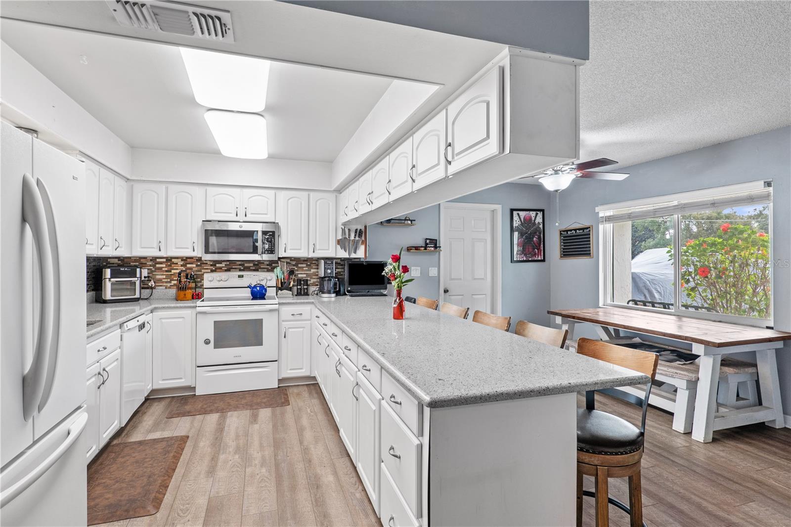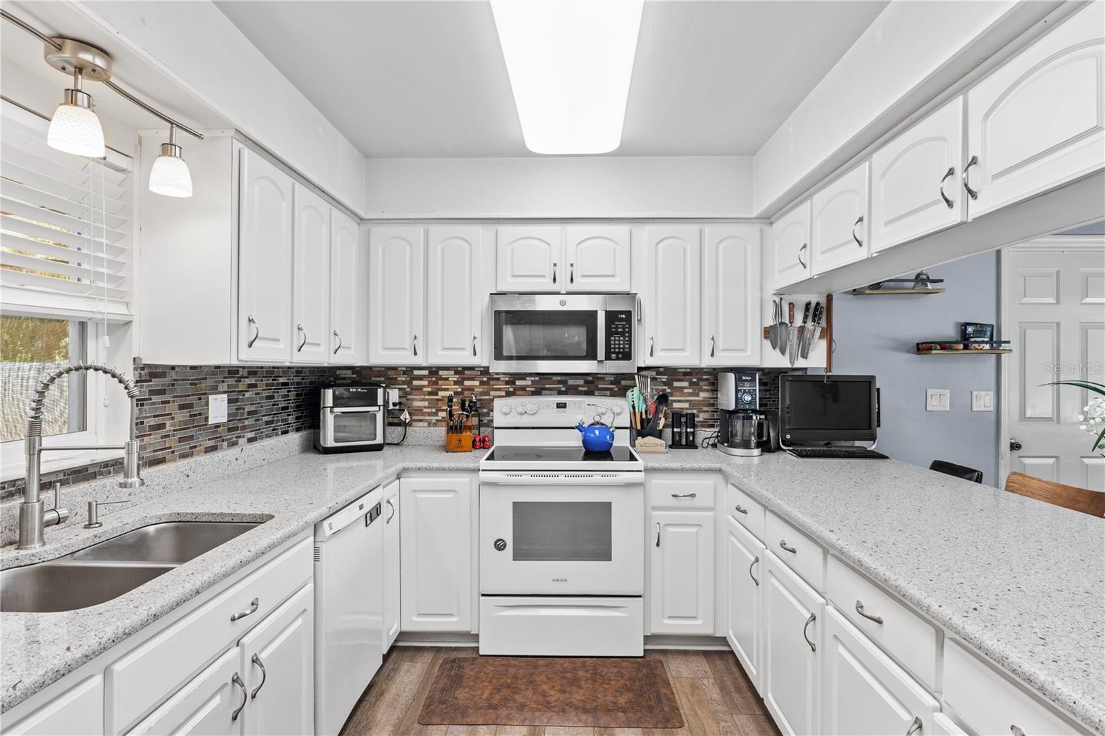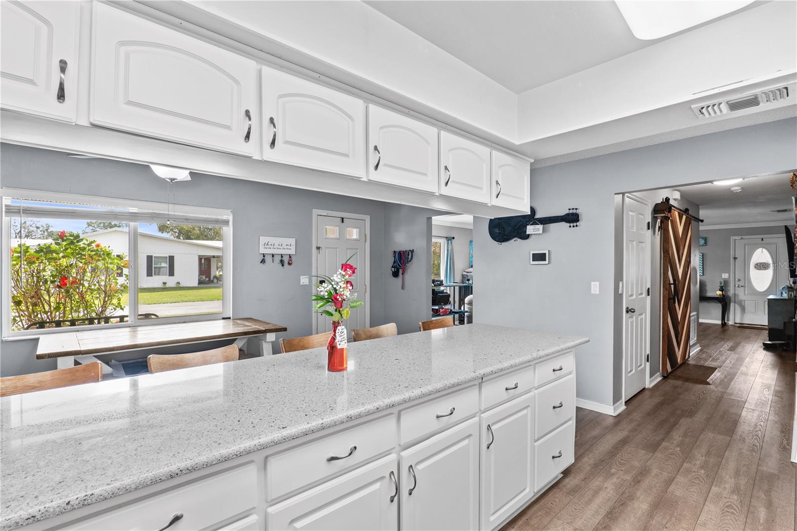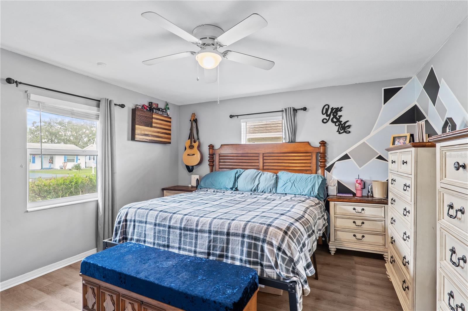 If you’re looking for a move-in-ready home with character, this St. Cloud gem is a rare find. Just five blocks from East Lake Toho, this corner-lot pool home offers a peaceful retreat in a quiet neighborhood. The open-concept kitchen, dining, and great room create a seamless space for gathering with unique touches like a locally sourced cypress wood accent wall and a handcrafted barn door. The kitchen boasts modern white cabinetry and a stunning quartz peninsula with seating for six, while the screened porch overlooks a sparkling pool, fully fenced backyard with French drainage system, and large shed with overhead storage. The guest bathroom is a true retreat, complete with a step-in jetted tub, quartz counters, a bidet, and heated toilet seat. Upgrades include a newer roof & paid-off solar panels (2019), energy-efficient windows & doors (2017), and high-efficiency HVAC & smart water heater (2016). Smart home features like keyless entry, voice-activated lights, a touchless faucet, smart thermostat, and an NVR surveillance system add convenience. A non-conforming fourth bedroom inside the garage with heat & A/C offers endless possibilities. The garage has potential for a primary suite with pool access or an ADU, as the property is zoned for accessory dwellings. ASSUMABLE FHA LOAN AVAILABLE TO QUALIFIED BUYERS!!!