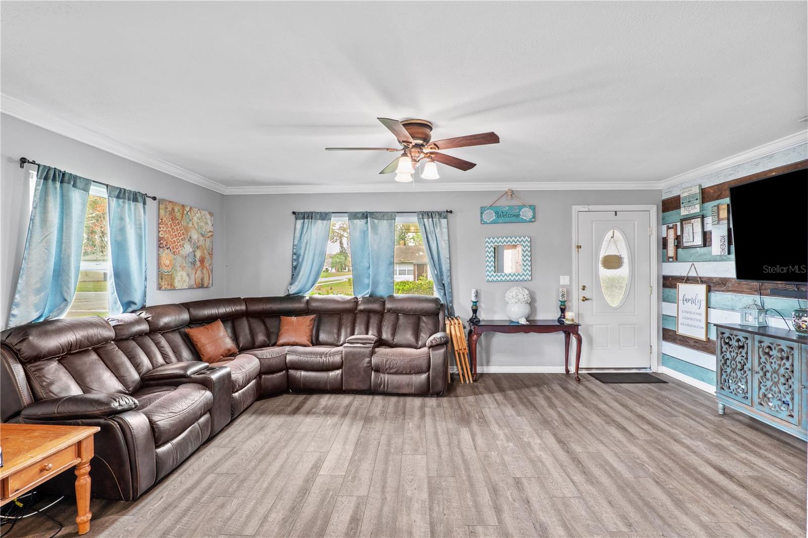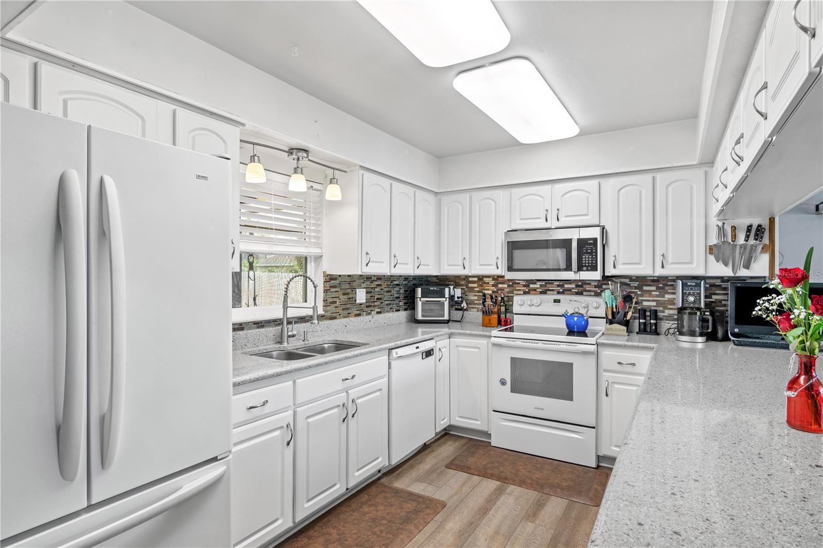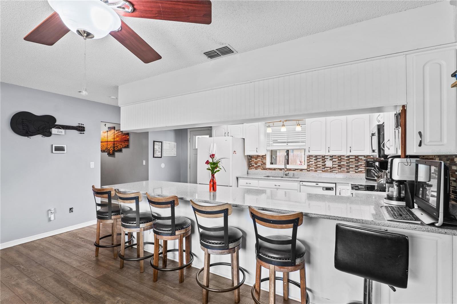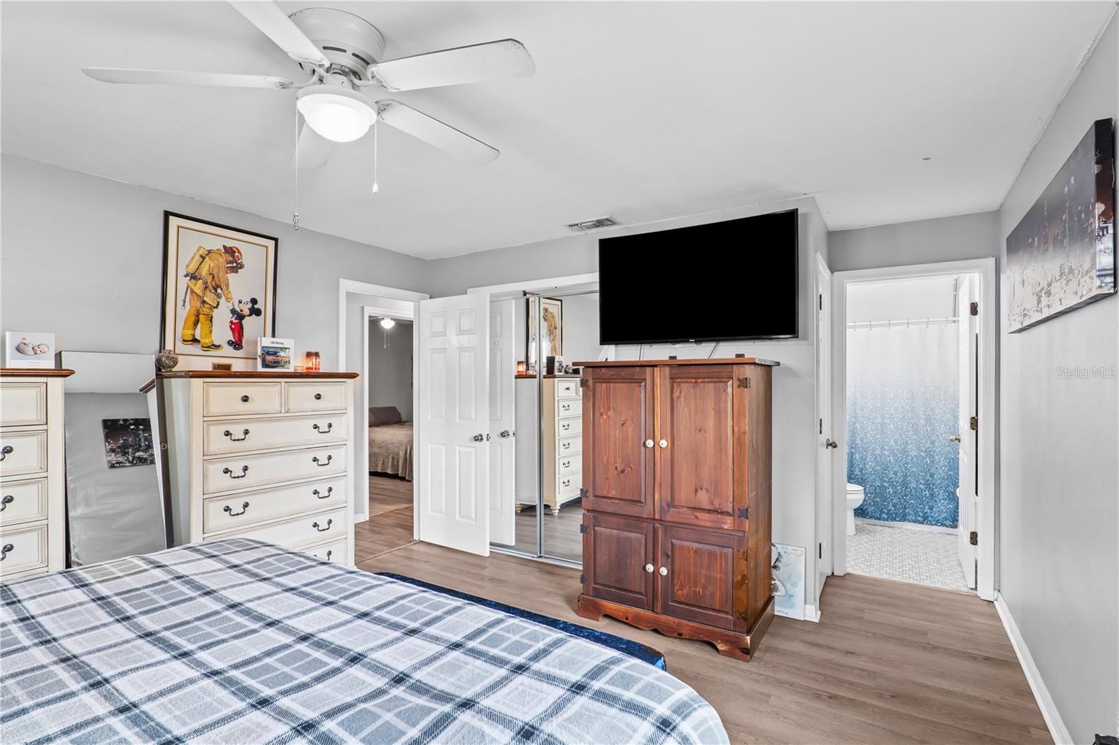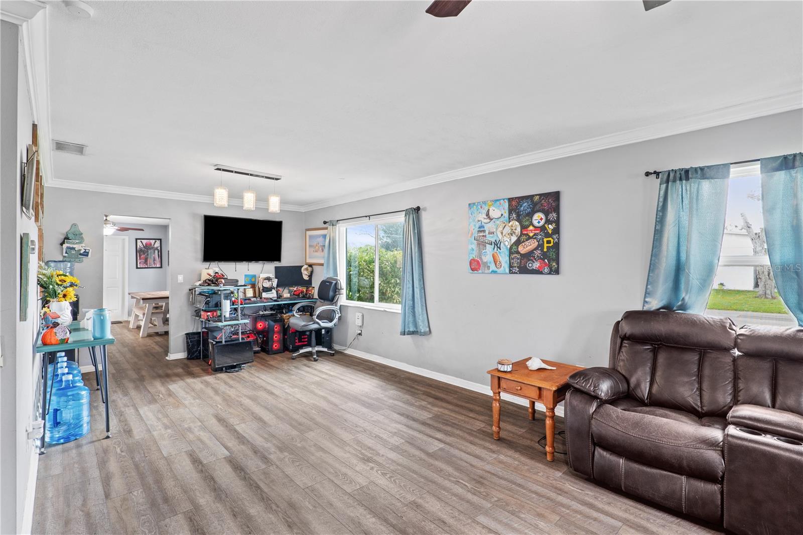 If you’re looking for a move-in-ready home with character, this St. Cloud gem is a rare find. Just five blocks from East Lake Toho, this corner-lot pool home offers a peaceful retreat in a quiet neighborhood. The open-concept kitchen, dining, and great room create a seamless space for gathering with unique touches like a locally sourced cypress wood accent wall and a handcrafted barn door. The kitchen boasts modern white cabinetry and a stunning quartz peninsula with seating for six, while the screened porch overlooks a sparkling pool, fully fenced backyard with French drainage system, and large shed with overhead storage. The guest bathroom is a true retreat, complete with a step-in jetted tub, quartz counters, a bidet, and heated toilet seat. Upgrades include a newer roof & paid-off solar panels (2019), energy-efficient windows & doors (2017), and high-efficiency HVAC & smart water heater (2016). Smart home features like keyless entry, voice-activated lights, a touchless faucet, smart thermostat, and an NVR surveillance system add convenience. A non-conforming fourth bedroom inside the garage with heat & A/C offers endless possibilities. The garage has potential for a primary suite with pool access or an ADU, as the property is zoned for accessory dwellings. ASSUMABLE FHA LOAN AVAILABLE TO QUALIFIED BUYERS!!!
