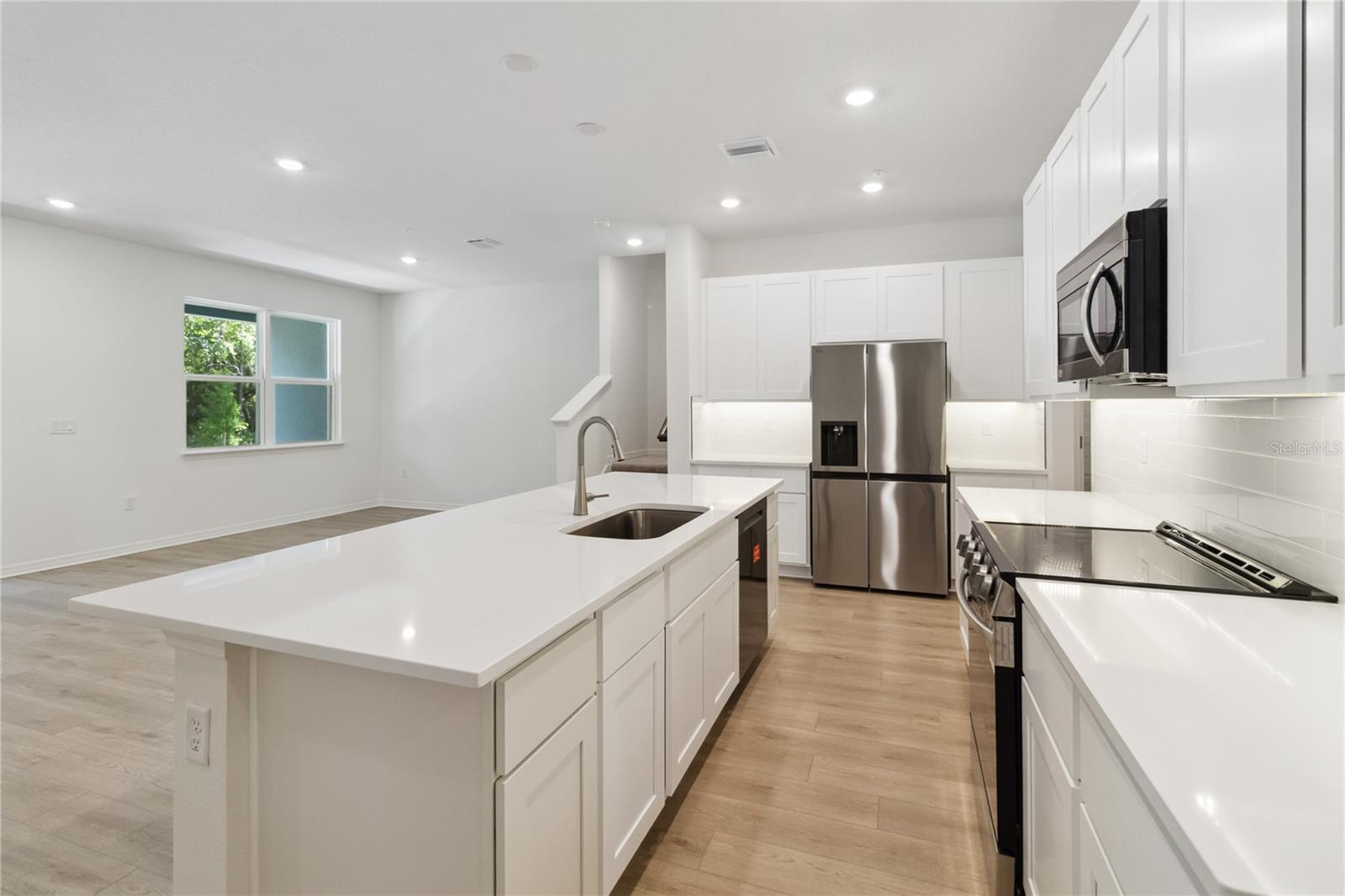 Move-in Ready! Live 5 Miles from Lake Nona — Without the Lake Nona Price Tag! Welcome to Terra Haven in St. Cloud, where style meets convenience! This beautifully designed Hazel floor plan offers 4 bedrooms, 2.5 bathrooms, a 2-car garage, and a spacious lanai — all in an ideal location just minutes from Lake Nona, Orlando International Airport, SR 417, and Florida’s Turnpike. Step inside and be wowed by the open-concept main floor with soaring 9'4" ceilings and sleek Luxury Vinyl Plank flooring throughout. The heart of the home is the modern kitchen featuring 42" painted linen cabinets, quartz countertops, a designer backsplash, under-cabinet lighting, and a large island perfect for gathering and entertaining. Washer, dryer, and refrigerator are included — just bring your toothbrush! Upstairs, four generously sized bedrooms offer space for everyone, with a private primary suite to unwind in peace. Your roomy backyard is privacy-fence ready, and the HOA takes care of lawn maintenance and irrigation, so you can spend more time enjoying life and less time on yard work. No CDD fees, no nonsense — just great living. Plus, you're close to Downtown Orlando, top-rated hospitals, shopping, dining, and major employers. DISCLAIMER: Photos and/or drawings of homes may show upgraded landscaping, elevations and optional features that may not represent the lowest priced homes in the community. Pricing, Incentives and Promotions are subject to change at anytime. Promotions cannot be combined with any other offer. Ask the Sales and Marketing Representative for details on promotions.
