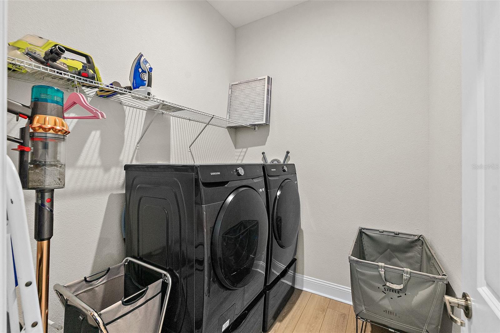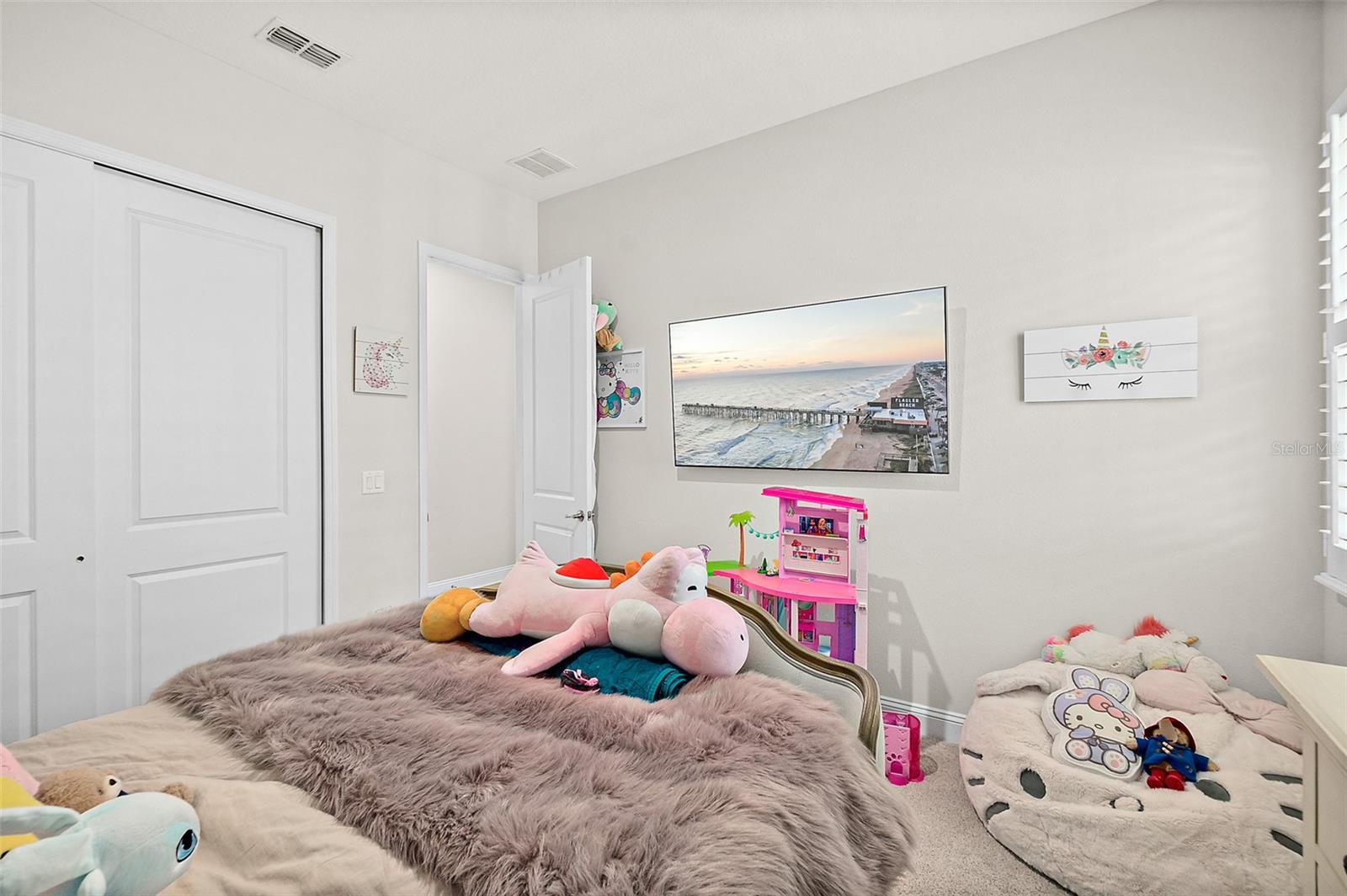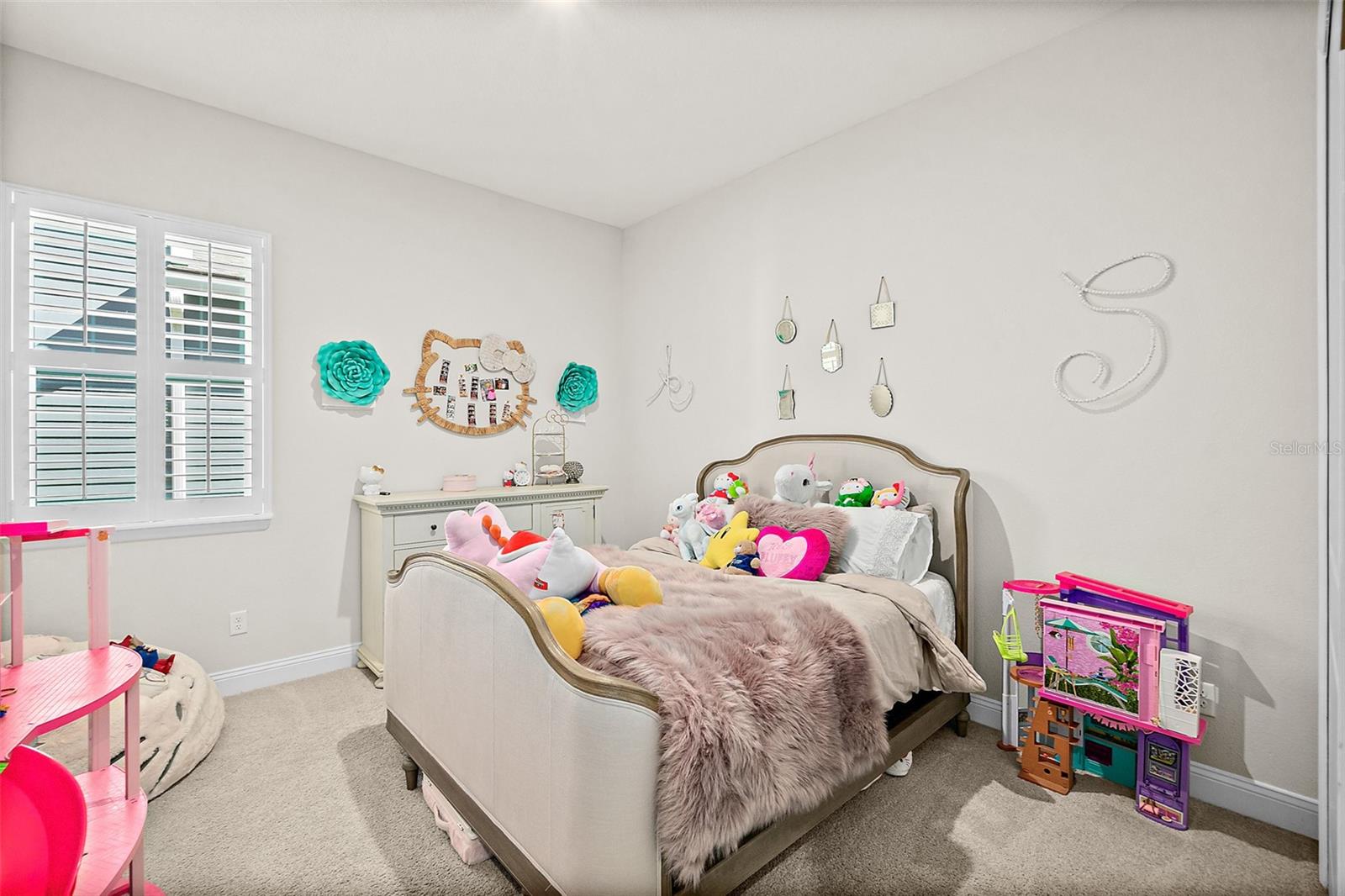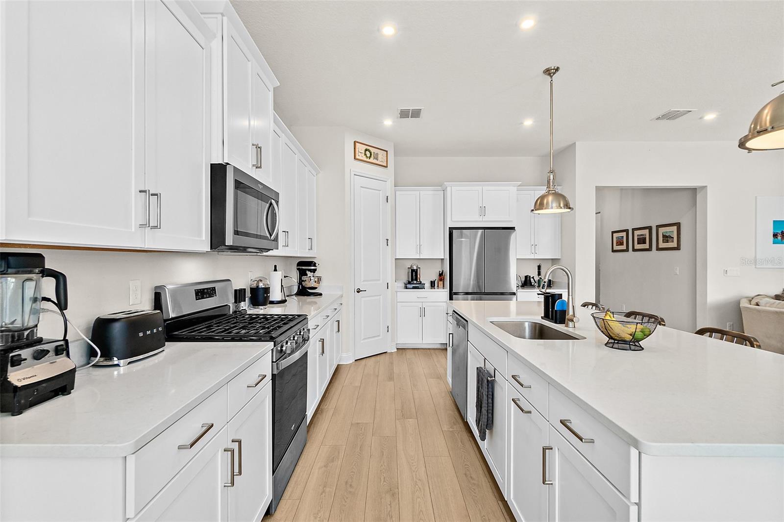 Owner pride truly shows in this Holton Farmhouse plan by Mattamy Homes in the Arbors at Rivertown. You will appreciate the upgraded features and enjoy living is this open concept single story home. The 8' doors, 5 1/4'' base molding, and luxury vinyl plank flooring are impressive. 4 bedrooms plus a study with french doors provide lots of family options. Beautiful ceiling fans, light fixtures, and plantation shutters throughout. Master suite features a tray ceiling, dual vanities, large walk-in shower and closet with storage organizers. These Boaxel organizers have been added throughout the storage areas and closets. Other great features include a water softener, EV charging outlet, electronic shade for sliding glass doors, extended lanai and paver patio, vinyl privacy fence, gutters & downspouts, and custom landscaping. Great location in the community close to the new Hallowes Cove Academy, Riverview Lodge, and all the outstanding amenities that Rivertown has to offer!