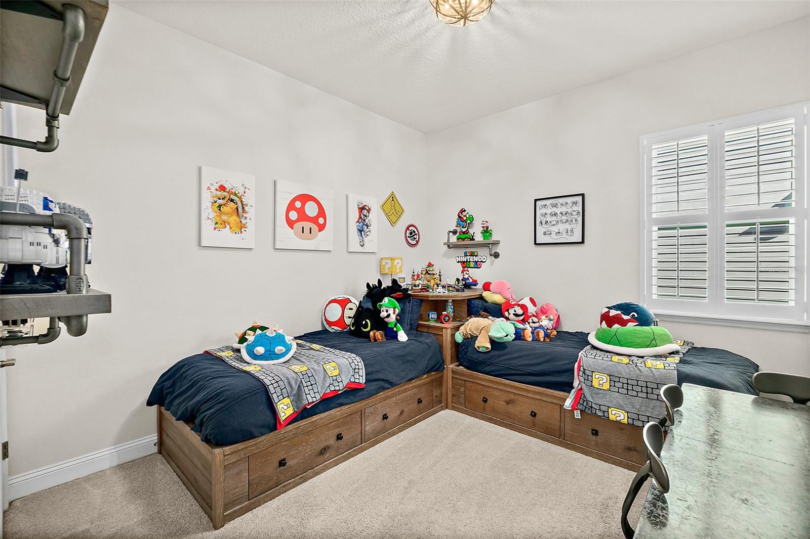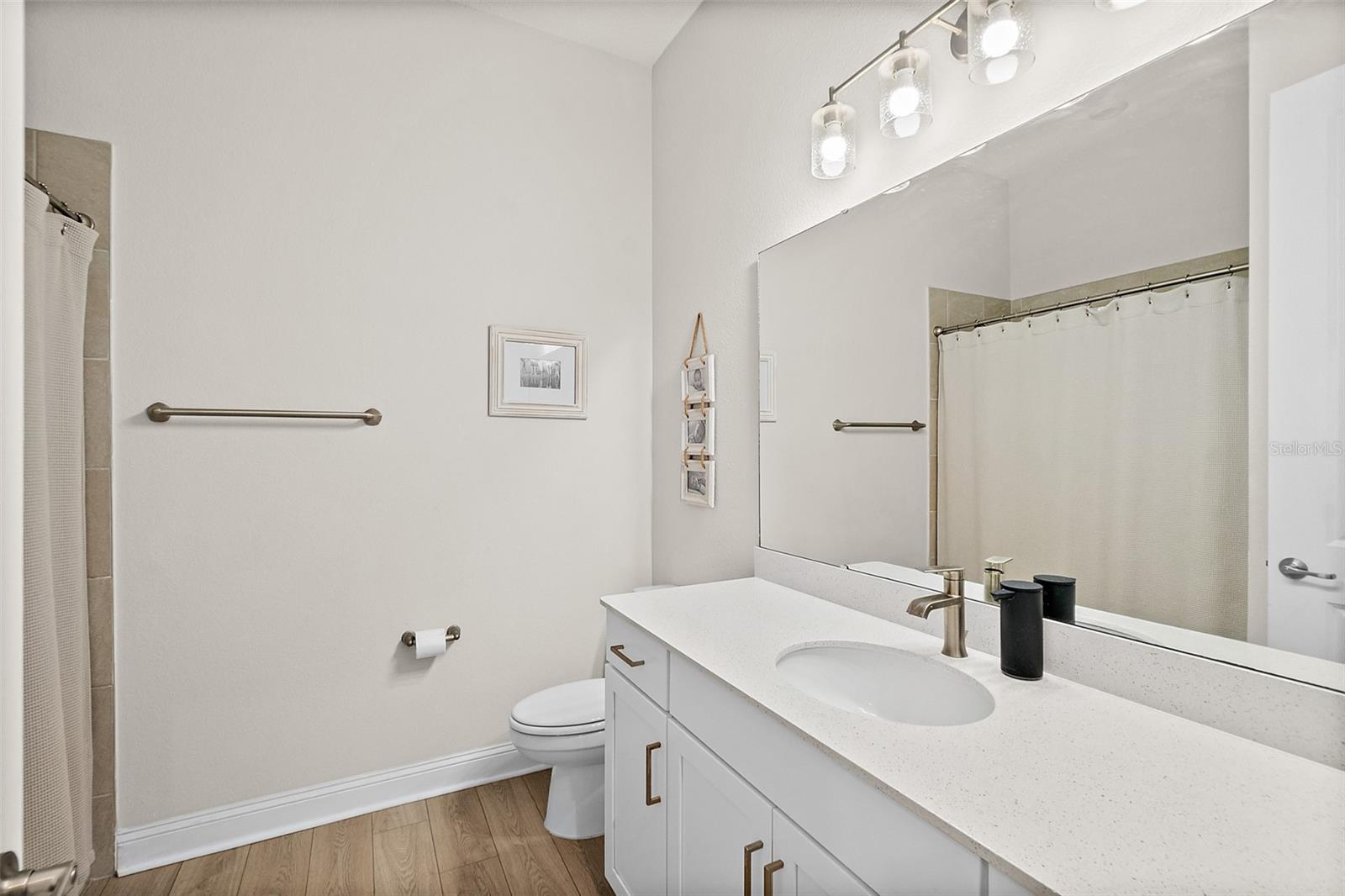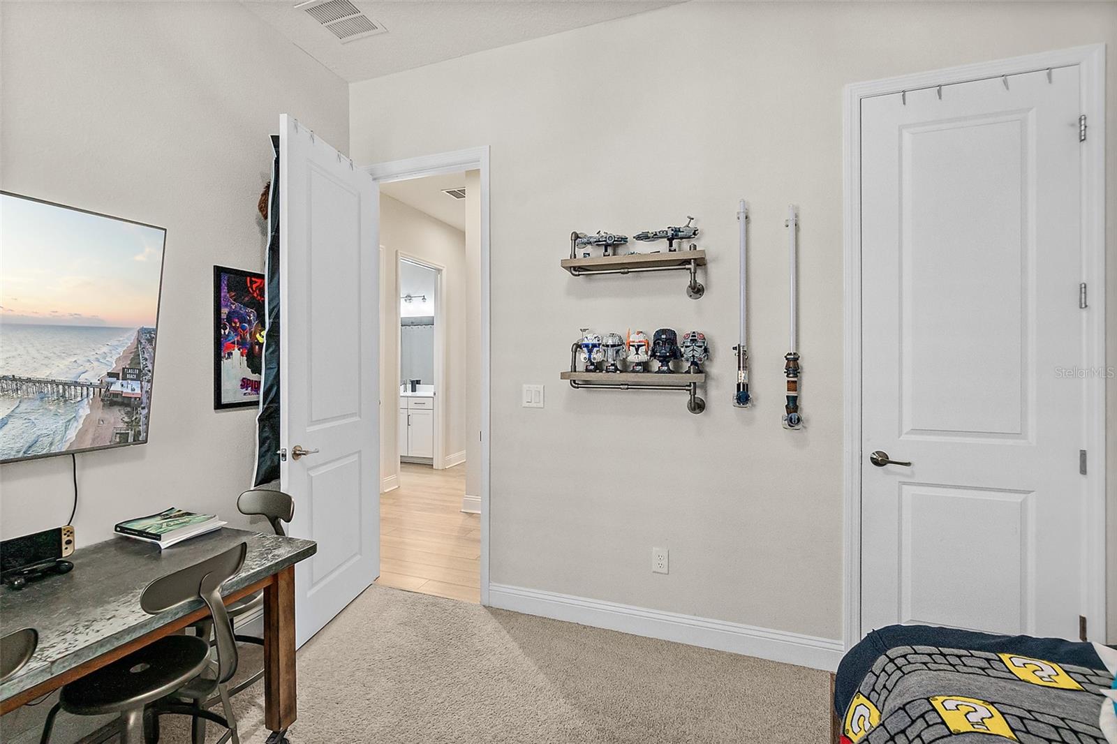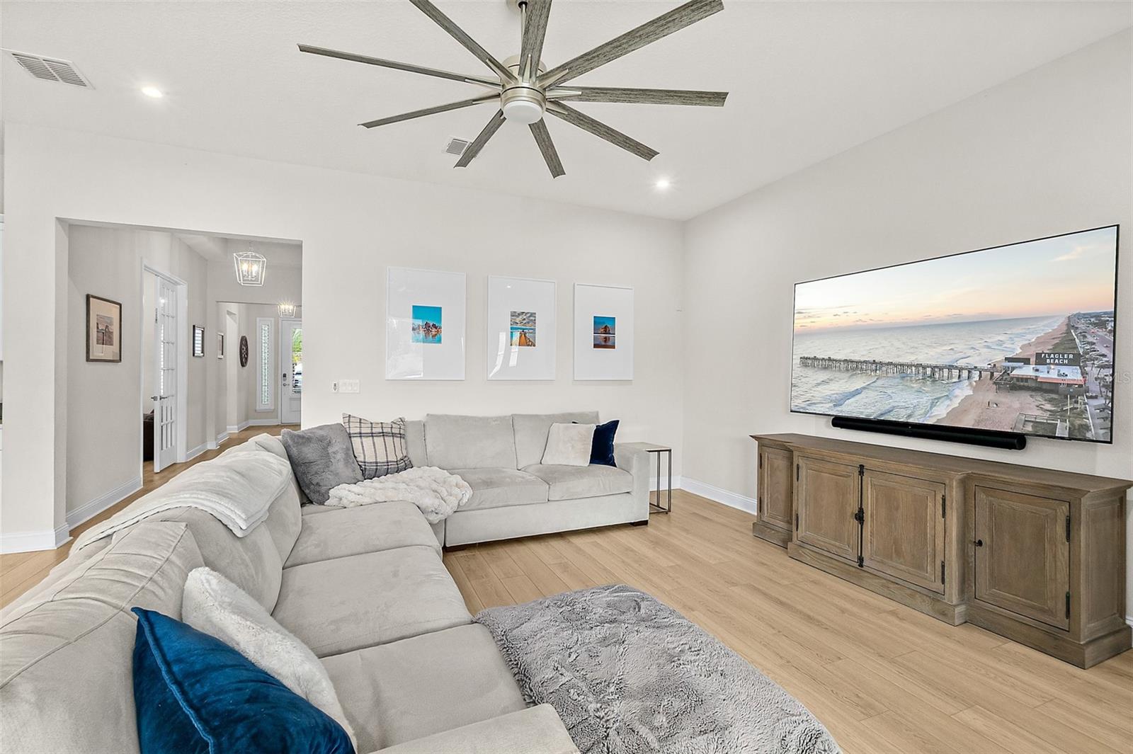 Owner pride truly shows in this Holton Farmhouse plan by Mattamy Homes in the Arbors at Rivertown. You will appreciate the upgraded features and enjoy living is this open concept single story home. The 8' doors, 5 1/4'' base molding, and luxury vinyl plank flooring are impressive. 4 bedrooms plus a study with french doors provide lots of family options. Beautiful ceiling fans, light fixtures, and plantation shutters throughout. Master suite features a tray ceiling, dual vanities, large walk-in shower and closet with storage organizers. These Boaxel organizers have been added throughout the storage areas and closets. Other great features include a water softener, EV charging outlet, electronic shade for sliding glass doors, extended lanai and paver patio, vinyl privacy fence, gutters & downspouts, and custom landscaping. Great location in the community close to the new Hallowes Cove Academy, Riverview Lodge, and all the outstanding amenities that Rivertown has to offer!