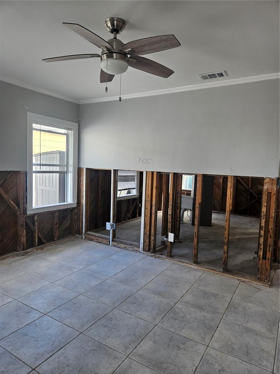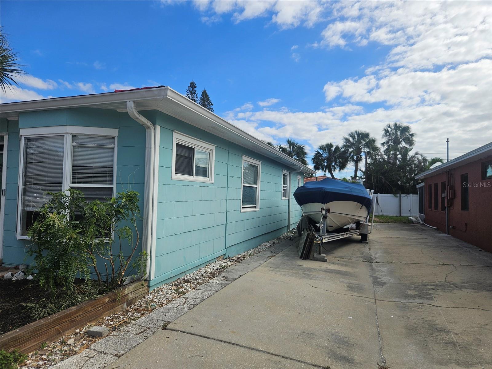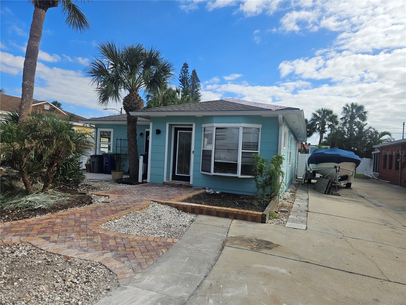 Welcome to your next coastal renovation opportunity! Once a charming tropical bungalow filled with warmth and character, this home is now ready for a new chapter following storm damage and flooding. Drywall has been removed, and the structure awaits restoration or potential elevation to meet today’s coastal living standards. Located just minutes from the beach—but tucked away from the traffic—this property still retains the beach lifestyle vibe that made it so desirable. Step into the backyard and discover a hidden gem: a detached living space complete with a bedroom area, full bath, kitchenette, and built-in desk. Perfect for a future home office, guest suite, or hobby studio. The lot is beautifully landscaped with crushed shell walkways, mature tropical trees including a banana tree and various fruit trees, and offers plenty of space to reimagine your Florida dream home. At the end of the street, enjoy a peaceful canal view and a quiet spot to take in the scenery.