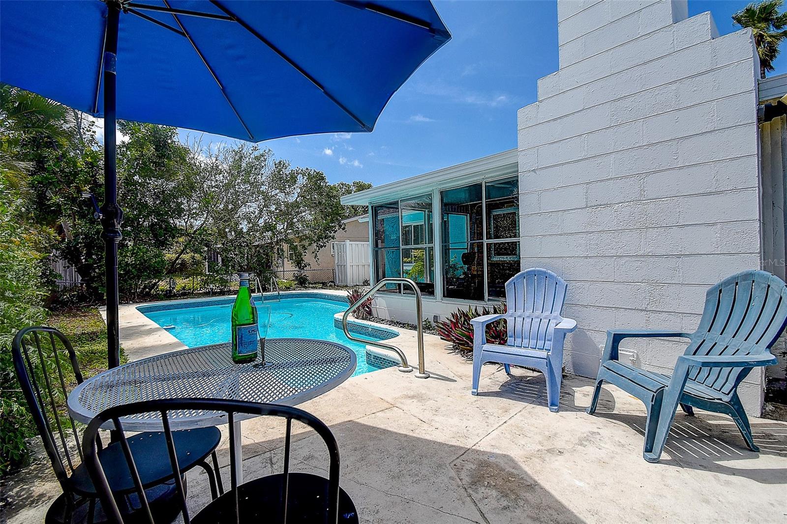 Under contract-accepting backup offers. $60,900 Recent Price Reduction! Don’t Miss This Parkside Paradise! Experience island living at its finest in this rarely available, coveted location—directly across from Vina Del Mar Park! With tennis and pickleball courts, a dog park, and a covered picnic pavilion right at your doorstep, an active, outdoor lifestyle awaits. This spacious 1,590 sq ft home features a split floor plan filled with natural light and includes a charming 218 sq ft enclosed sunroom (not included in heated sq ft) with a wood-burning fireplace—perfect for cozy evenings. Step out into your flower-filled backyard oasis where a sparkling pool and patio invite you to dine al fresco or just unwind. Love open-concept living? There’s great potential here: the non-load bearing walls provide an easy opportunity to create a flowing kitchen-dining-living space. Recent updates & features: Newer roof (2016), new hurricane impact office window (2025), hurricane shutters, updated bathrooms w/ subway tile, new tile flooring in master, five new Hampton Bay ceiling fans, dining area skylights, updated irrigation system, optional generator, 2-Car garage with epoxy flooring, oversized driveway (fits 3+ vehicles), ample storage: Master walk-in closet, hall closet, kitchen pantry, and freshly painted sunroom floor. This walkable, golf cart-friendly community offers social activities and is just minutes from historic Pass-A-Grille Beach, plus convenient access to local shops, dining, Pinellas Bayway, and I-275—making trips to Tampa, St. Petersburg, or Sarasota a breeze. Start your mornings with coffee and courtside views of neighborhood tennis games, and embrace the laid-back luxury of this warm, beachy retreat. Schedule your private showing today—before this gem slips away!