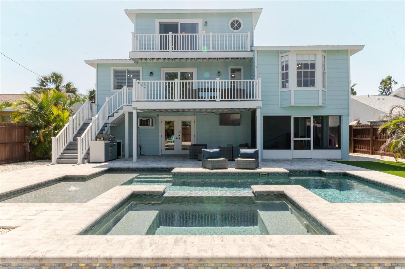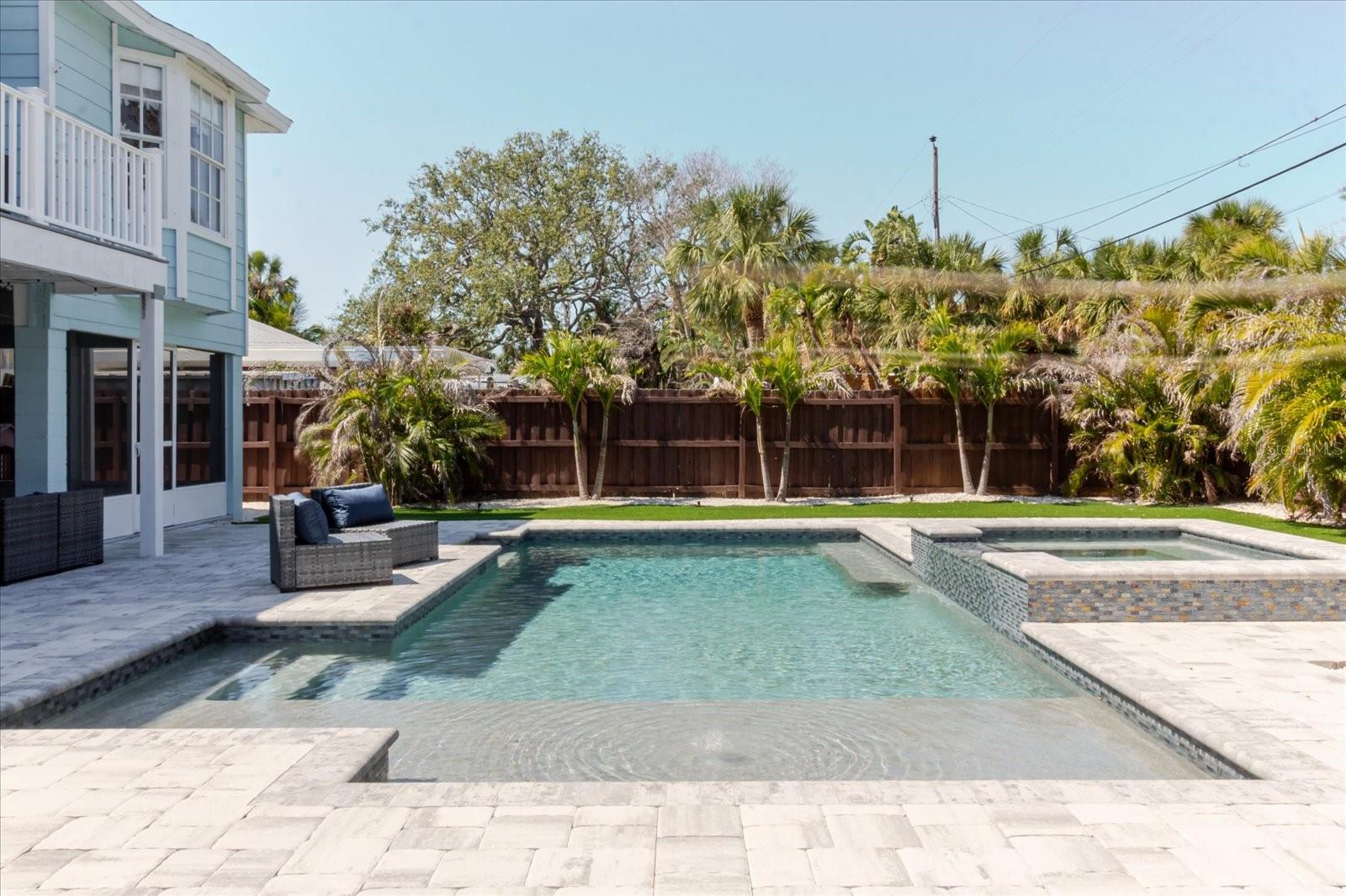 A St Pete Beach Gem that is a must see. Belle Vista neighborhood. If you are looking for a completely remodeled home and the beach life, this is it !!! This 4 Bedroom 3 Bath residence is without a doubt completely move in ready. As you enter the home you are welcomed with a very open floor plan that offers a magnificent kitchen that is completely updated with Quartz countertops, All Stainlees Steel Appliances, Contrasting lower blue cabinets and upper wht cabinets that look amazing.The Pot filler and Wine Fridge are a bonus. Nothing has been spared in this kitchen. The feel of the home is light and bright as you walk thru to the main family area that overlooks your beautiful in ground swimming pool (2021). Great views from the living space. You will have 3 nice size bedrooms on the main floor and 2 Renovated Full bathrooms. Separate Updated laundry room on main level. Wait until you move up to the 3rd Level Main Suite that has spectacular views with its own private deck to enjoy. The Main Bedroom is very spaciuos with a full size walk in closet and the Bathroom is to die for completeley updated. Dual sinks and walk in shower. Light and Bright with great finishing touches. The bottom floor offers an oversized 2 car car garage and very large 800 Square Foot Bonus Room that has been completely updated. This space can be used in many ways. Game Room, Work Out Room, use your imagination !!! Bonus room leads out to a covered porch and then into the back yard Oasis. Bark yard and Pool Area is spectacular with a pavered deck around the Heated Pool and Spa. Artificial grass that gives this Oasis such a clean feel and low maintenance to boot. Either way you can hang out all weekend in your back yard or walk 1 Block to the Beach. St Pete Beach has so much to do with endless Restaurants and Entertainment close by. Boating, Fishings, Watersports. Located close to all major Airports and easy access to Tampa and Sarasota. Features include - Roof 2016 50 Year lifespan, Impact Doors and Sliders 2019, New Trex Decking rear decks, New Pool 2021, Pool Pump and Heater 2024, AC 2014, Tankless Water Heater 2015, Bonus Room AC 2024, Low Flood Insurance $750 a year, Hurricane Shutters, EV Charger in Garage, Whole house water filtration system SCHEDULE YOUR SHOWING TODAY - THIS HOME WILL GO QUICKLY