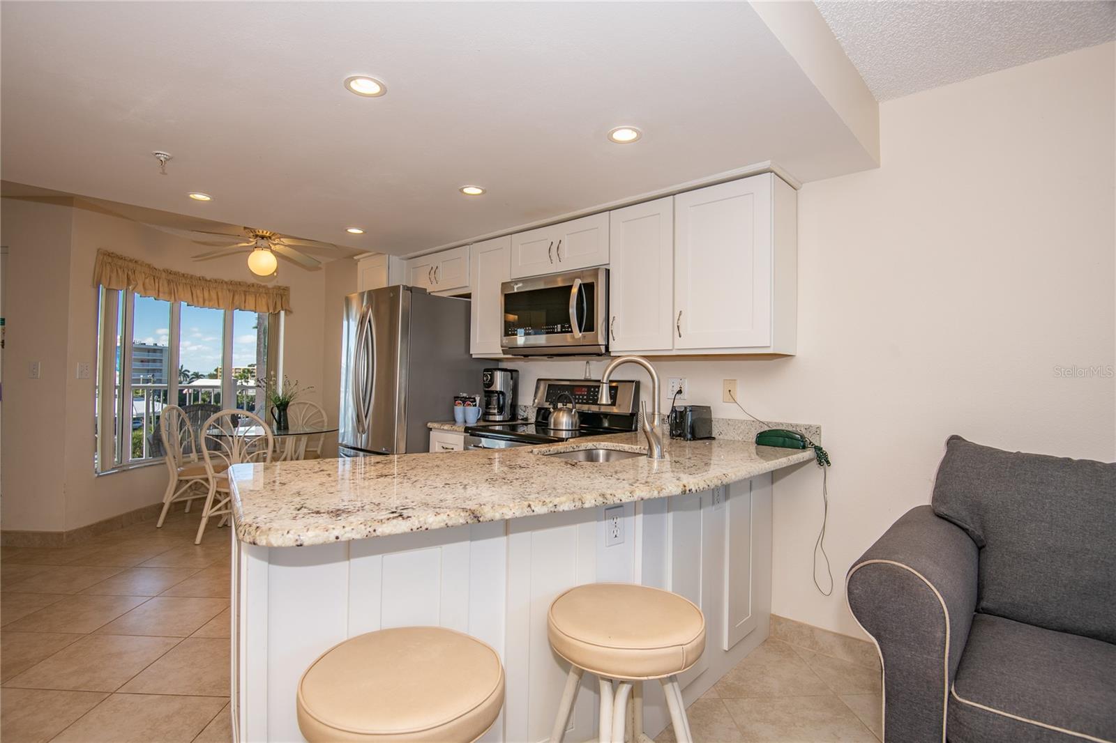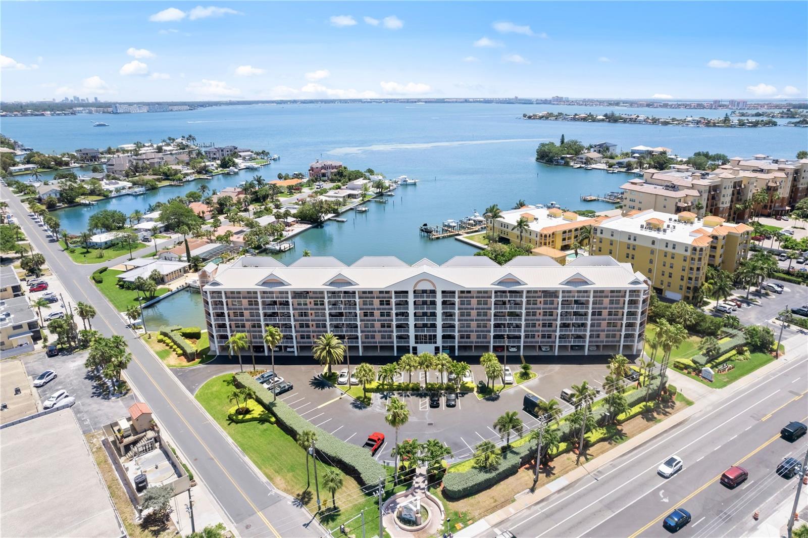Sunrise units are RARELY available for sale! In fact, only four have sold in the last three years! This is your chance to own a 5th floor unit with a coveted and hard-to-come by under-building parking space! At ‘The Sunrise’ you are nestled between the beach and the bay and surrounded by water and a host of things to do! As such, the Resort is a favorite spot for visitors who want more than just a hotel room! At Sunrise, they get MUCH MORE! That is why the property enjoys so many return visitors and the resulting great income! For the first four months of 2025, this unit earned $30,700 in rental income, with an average nightly rate of $304! For 2024, the current Owner enjoyed just over $60K in rental income! Sunrise Resort is a LEGAL & LUCRATIVE 3-night minimum vacation rental property located on the Intracoastal side of the island with lovely views of Boca Ciega Bay looking out toward the Intracoastal Waterway. It is also directly across the street from the powdery sands of St. Pete Beach, which has been consistently voted in the top five beaches in the United States AND #1 in the USA for 2021! For those of us familiar with it, this is no wonder. The sand is startling white and soft; the Gulf waters are warm; and the sun shines almost every day. What's not to love! At six stories, Sunrise is a mid-rise building with only 58 units in total, all of which have water views. From the ample balcony, you have a view of the bay where you will LOVE the sunrise sky, as it explodes in a cascade of colors across the horizon! This tranquil spot is perfect for spying families of manatees who frequent the warm waters of our bay while you enjoy your morning tea/coffee or evening al fresco meals and cocktails. But the fabulous views to the east are not the only show in town! The views from the front windows and breezeway across Gulf Blvd to the west, gaze to the horizon and offer a window to world class sunsets! Indeed, there are many world-class perks to enjoy on this lovely island, from great restaurants to fun beach bar venues and other fabulous offerings, such as the Spa Oceana at the world-famous Don CeSar Resort. The Sunrise amenities include a lighted tennis/pickle ball court, fishing dock, BBQ area, shuffleboard and beautiful resort-style heated pool and spa. There is so much to do here besides the beach. However, the beach IS THE MAIN ATTRACTION! When you are in need of the sensation of that pristine, white sand between your toes, you need only to walk across the street at the lighted crosswalk and enjoy a short stroll to the beach. Soak up the sun. Frolic in the water. Rent a jet ski! Or take advantage of the many fabulous local hotels where you can dine, enjoy the perfect beach cocktail or listen to live music! Rent a cabana and chill on the beach or go crazy and try parasailing! And, after a hard day at the beach, or poolside, your Sunrise Condominium will welcome you and yours home. Unit 505 has enjoyed a significant remodel. The kitchen and baths feature white, shaker-style cabinetry with 3cm granite countertops. The home comes fully furnished as a lucrative turnkey vacation rental. Come see what all the fuss is about. Perhaps it is time you joined the Sunrise family!
