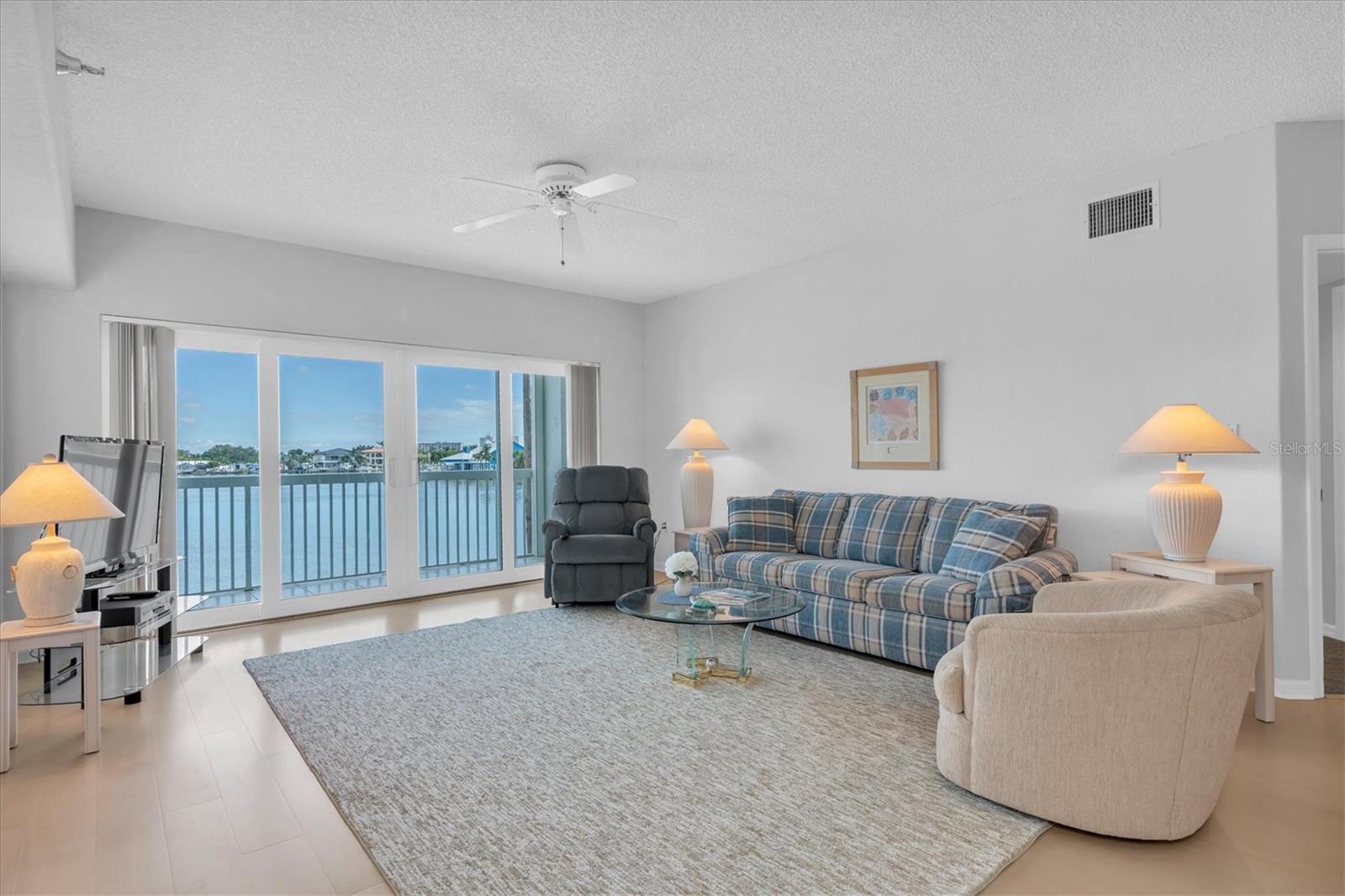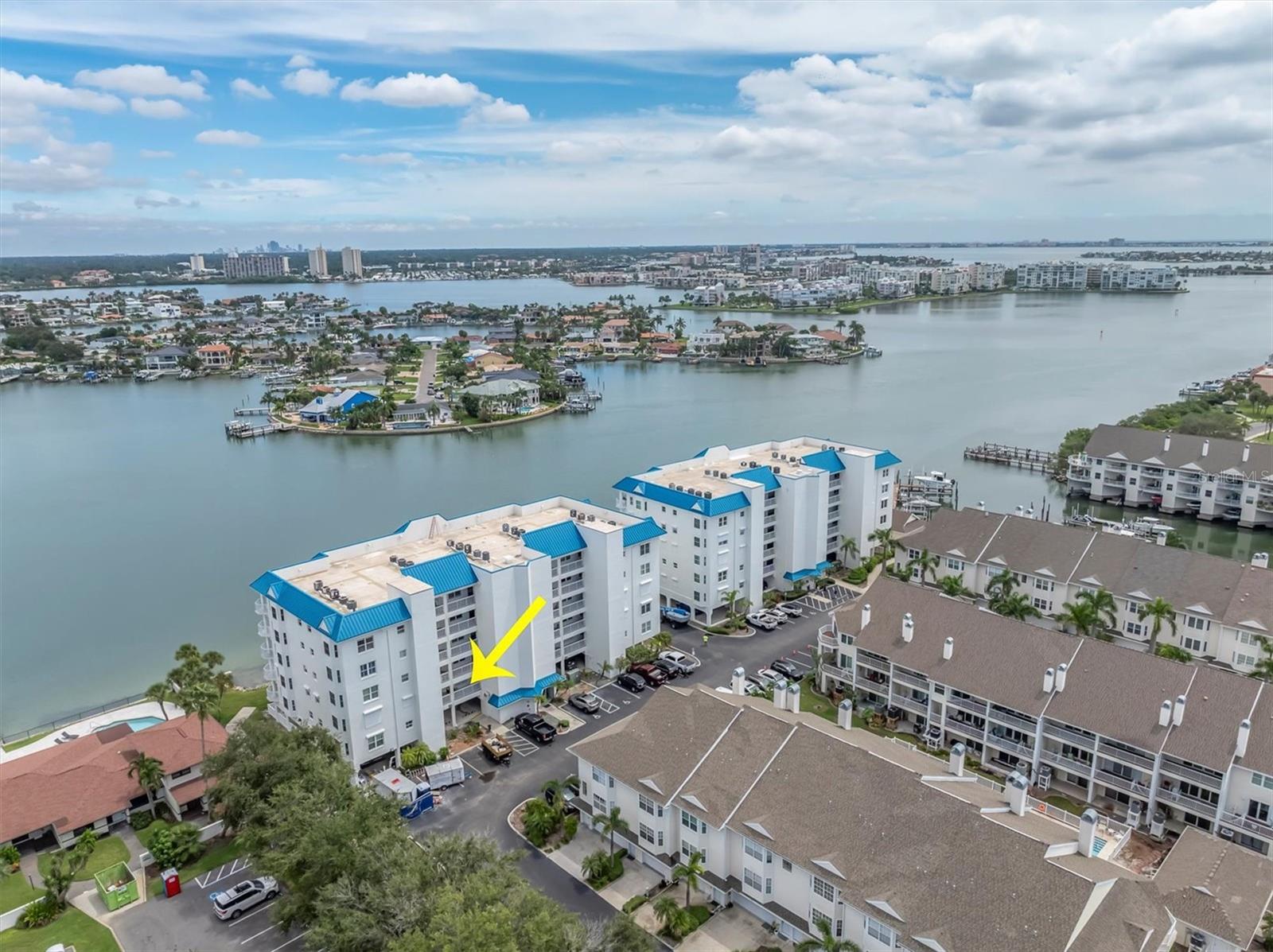 Waterfront condo with boat slip. Enjoy panoramic views of the Intracoastal Waterway from your oversize balcony at Captiva Cay Condominiums. Includes a 32’x15’ deeded boat slip with 12,000 lb lift in the sheltered private marina. This condo features 2 bedrooms, 2 baths, plus a den that could easily serve as a third bedroom. The primary suite has bay windows overlooking the water with a door to the balcony, and a walk-in closet. Captiva Cay amenities include a waterfront clubhouse, well-equipped gym, two heated pools (25-yard lap pool) spa, fishing dock, private beach ideal for kayaking and paddle boarding, and beautiful landscaping throughout. Nearby is Sunset Beach, restaurants, bars, parks, including a dog park, and tennis courts. Includes assigned parking under the building and storage unit. The first floor of this building is approx. 17' above sea level. The milestone inspection has been completed and the association is in compliance with the law’s requirements.