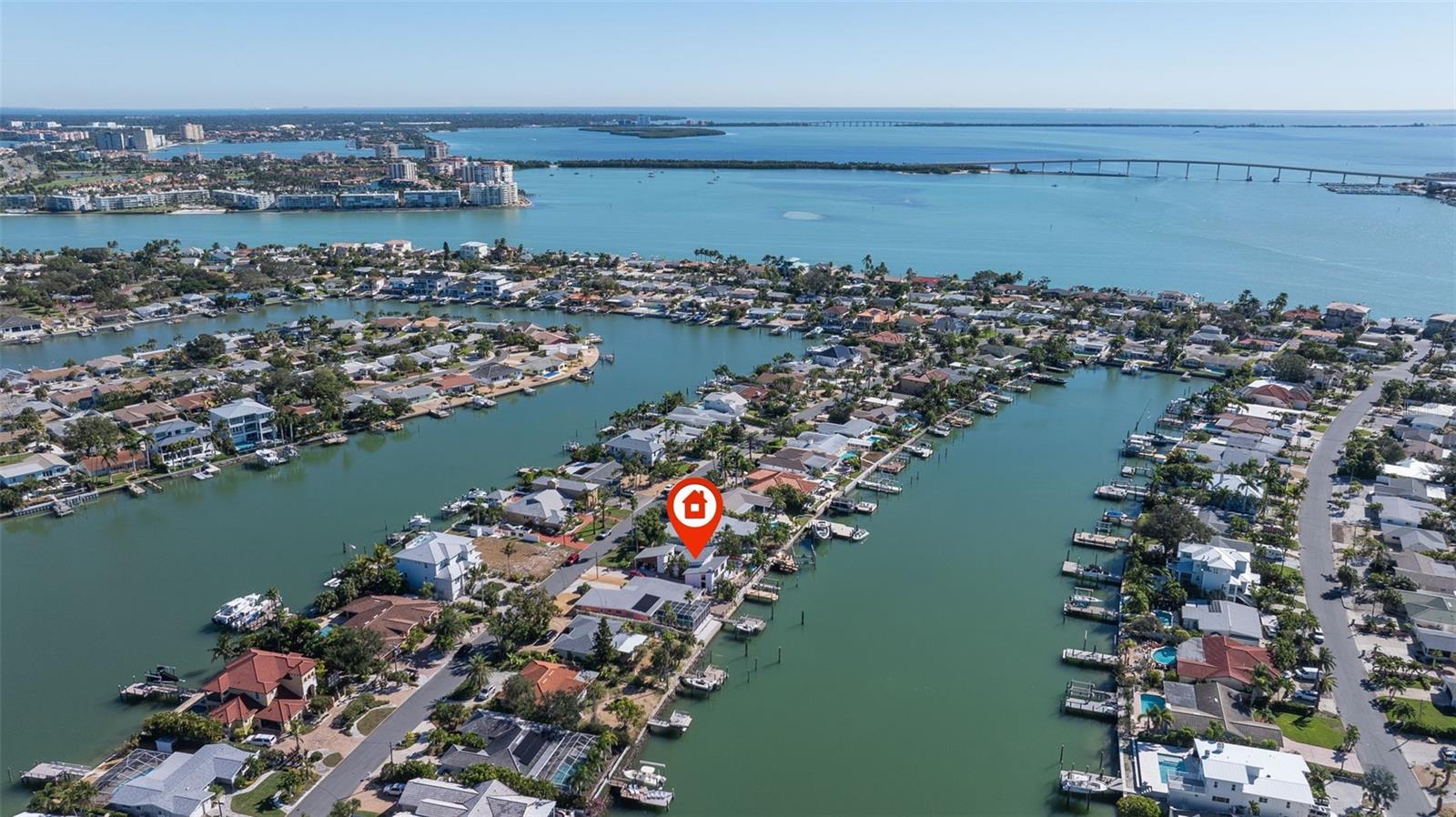 Welcome to this 3-bedroom, 2-bath, 2-car garage home perfectly situated on Hermosita Drive, one of Vina Del Mar’s most sought-after addresses. Known as the "Street of Dreams", this peaceful waterfront enclave combines timeless charm with some of the best boating access in St. Pete Beach. The home features soaring vaulted ceilings, exposed beams, abundant natural light, and panoramic views of the Intracoastal Waterway. With its unique architectural design and open layout, this property offers the perfect foundation to create your dream waterfront retreat. The home features rare worm wood paneling, celebrated for it's natural character markings and driftwood-like texture, bringing a warm coastal, and a truly one-of-kind aesthetic to the place. The new dock and no fixed bridges provide direct Gulf access, ideal for boaters and water lovers. Vina Del Mar is known not only for its beauty and walkability but also for its higher elevation, offering peace of mind and added protection along the coast. Just a short walk or bike ride to Pass-a-Grille Beach, you’re also close to historic 8th Avenue’s restaurants, shops, and beachside cafés, plus a neighborhood park and tennis courts right down the street. This is a rare opportunity to own in one of the area’s most desirable island communities — where the location, lifestyle, and endless possibilities come together beautifully.
